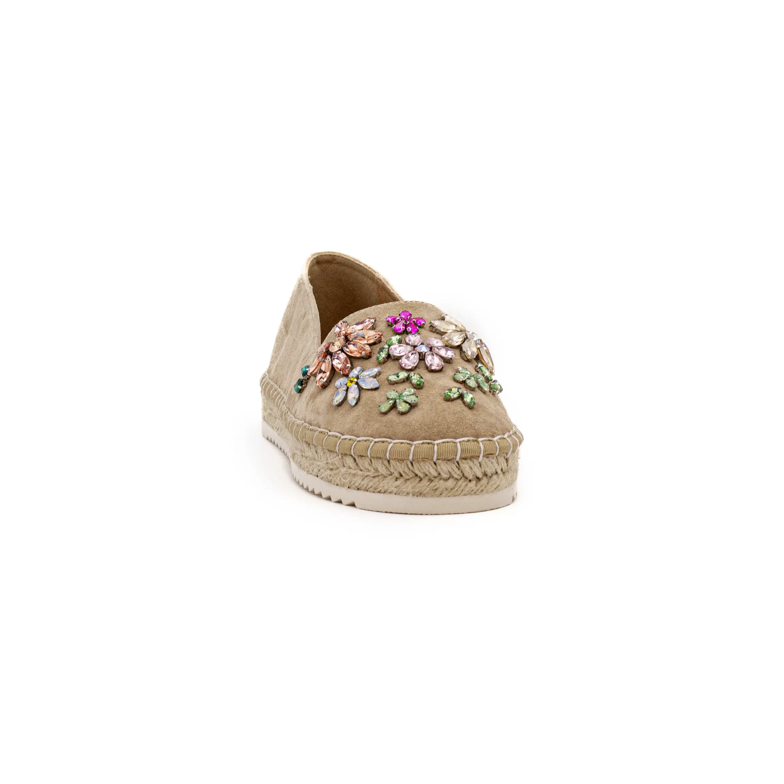 - Várias aplicações em formato floral e coloridas na parte superior da alpercata;