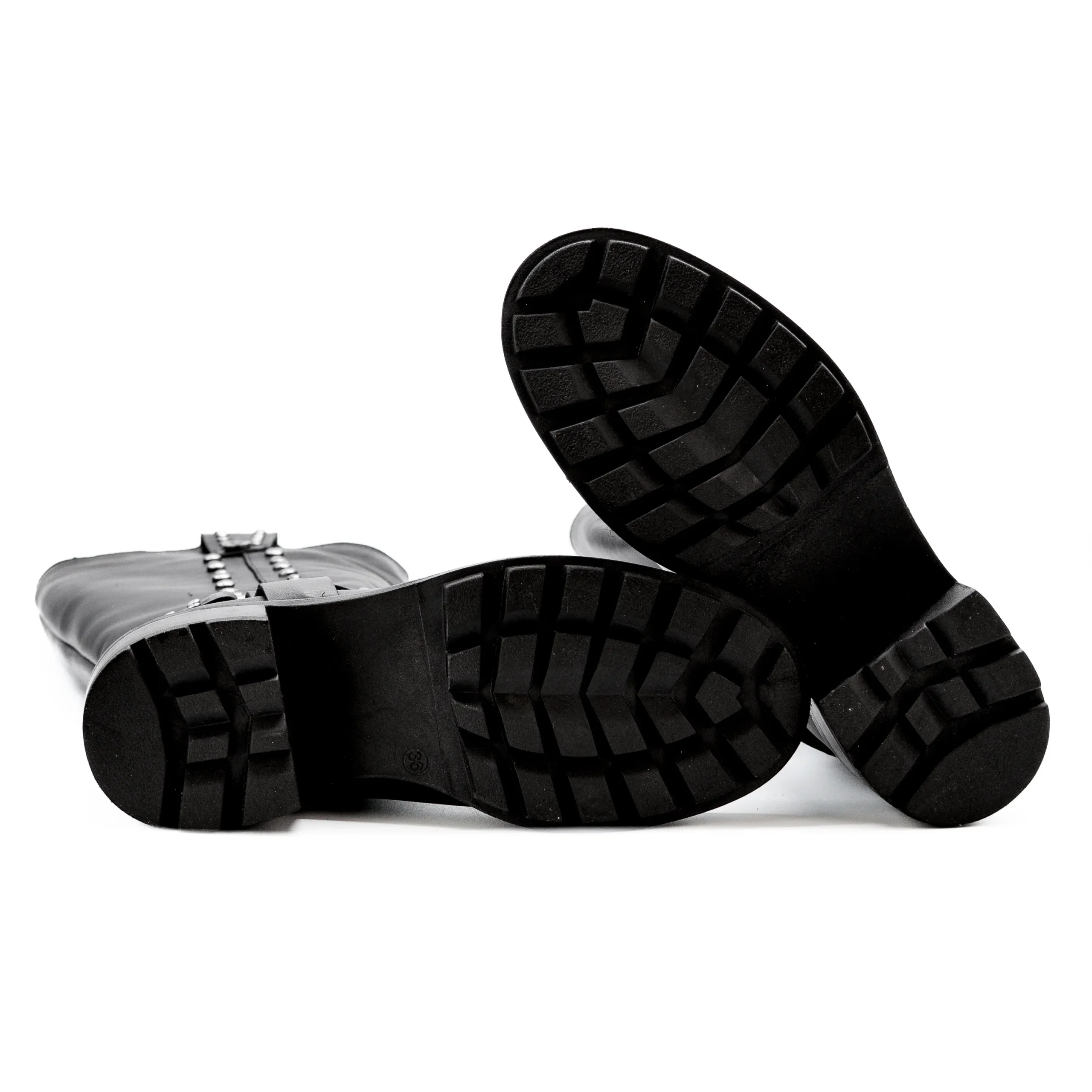 A limpeza da sola desta bota feminina, pode ser efetuada com maior frequência e com facilidade, com um pano humedecido.