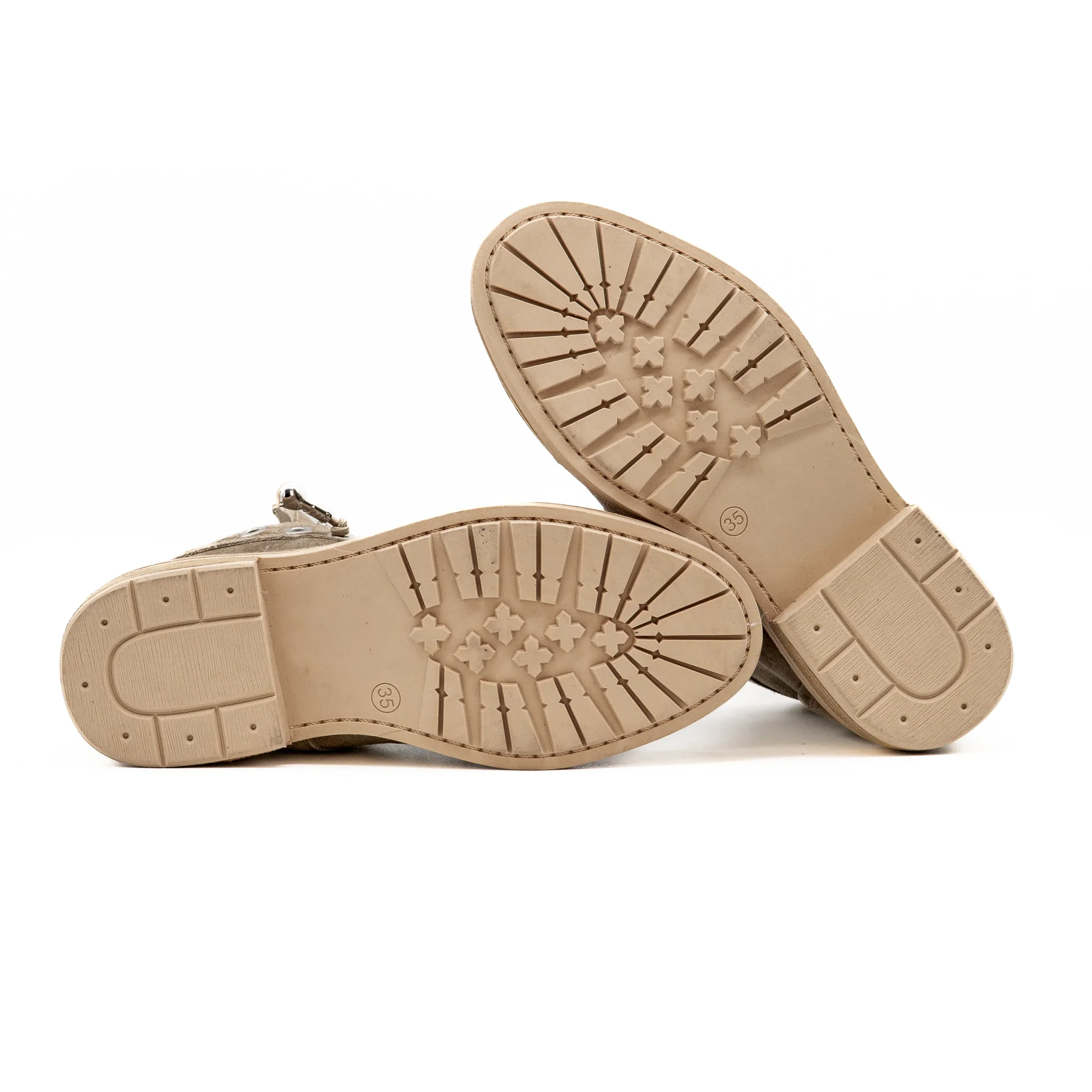 Esta bota de mulher, tem o exterior em pele , complementada com aplicações que lhe conferem máxima elegância.