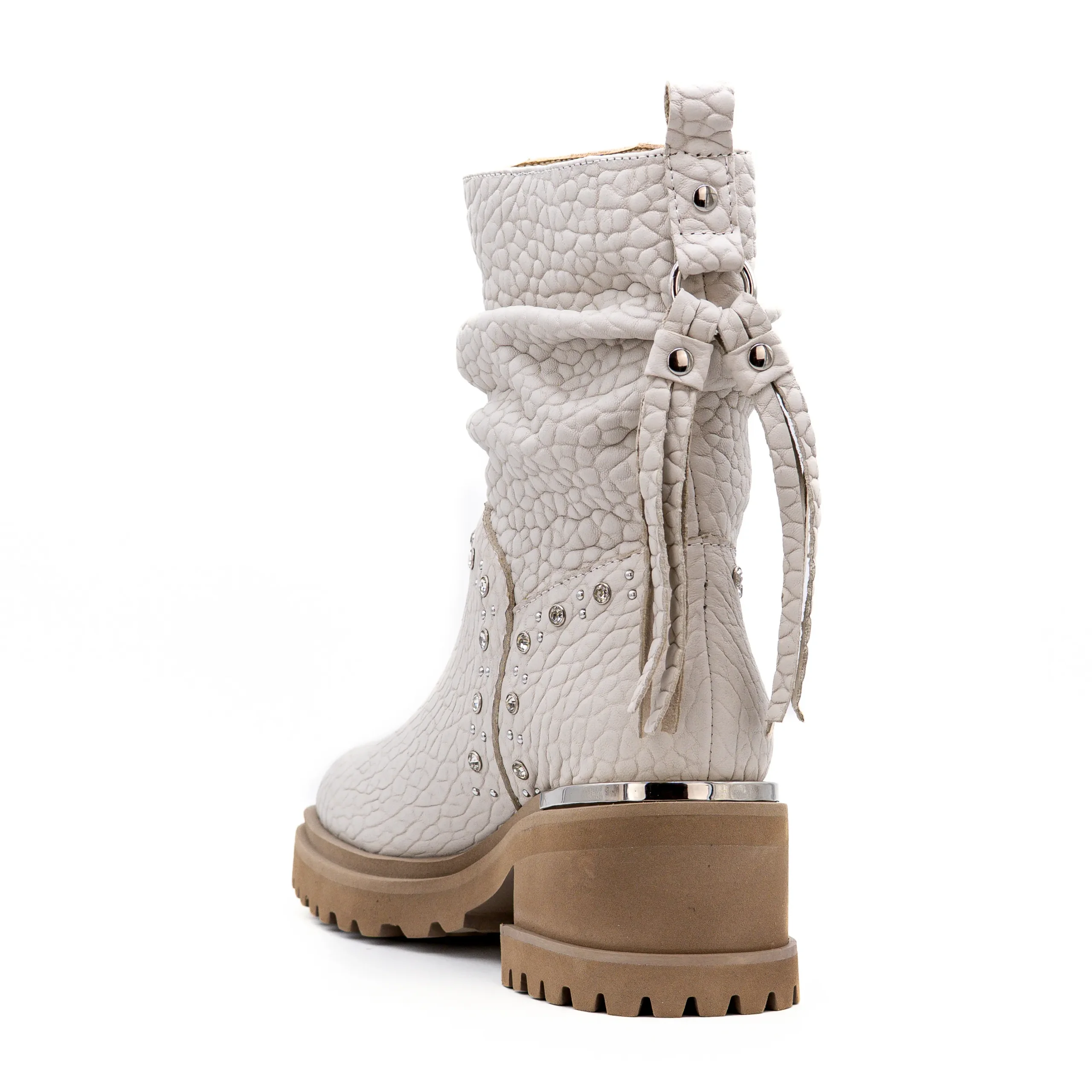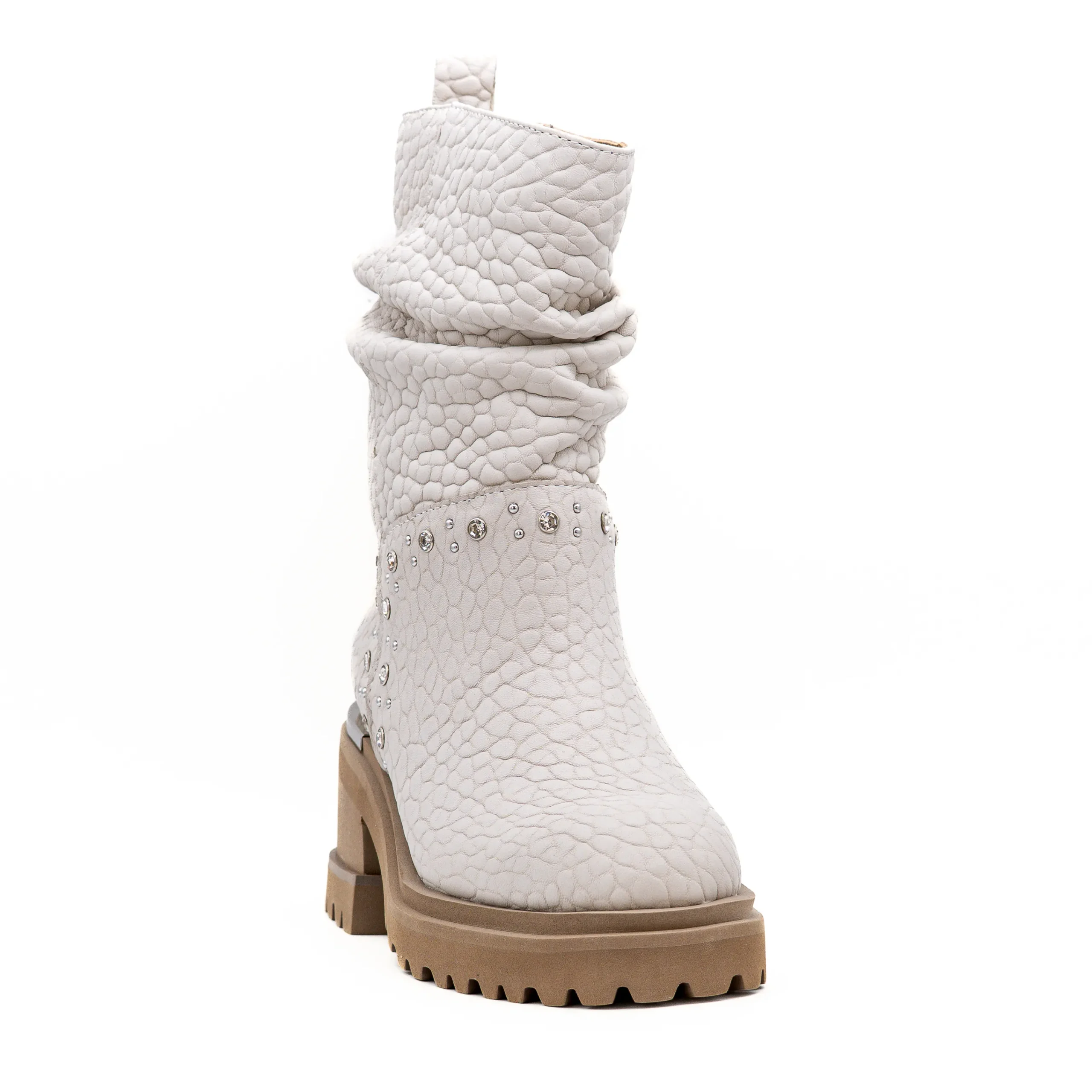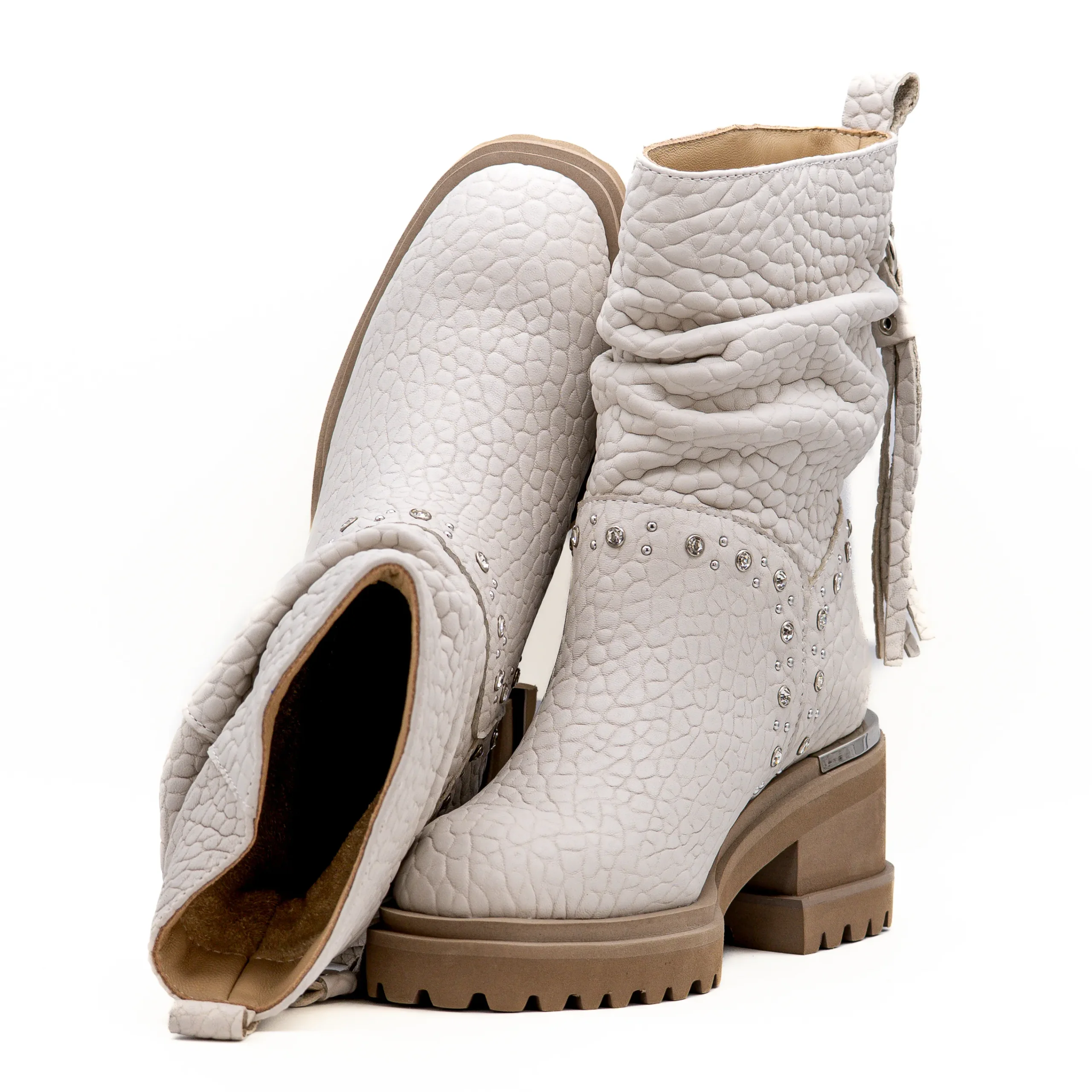 O design desta bota facilita colocá-la e retirá-la rapidamente, sendo uma opção prática para o dia a dia.