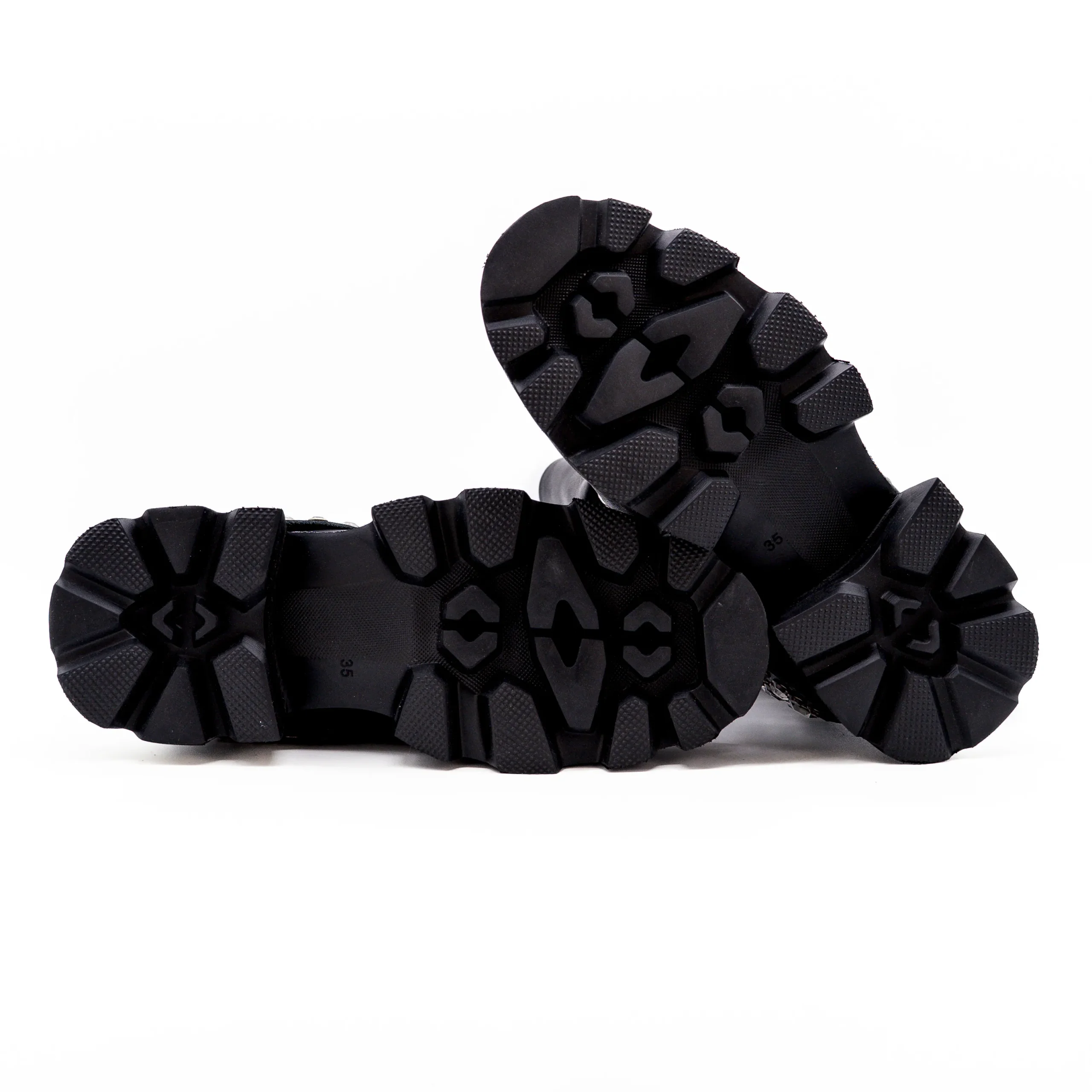 A sola desta bota tem uma inclinação pouco acentuada, que garante o apoio perfeito no pé ao caminhar.
