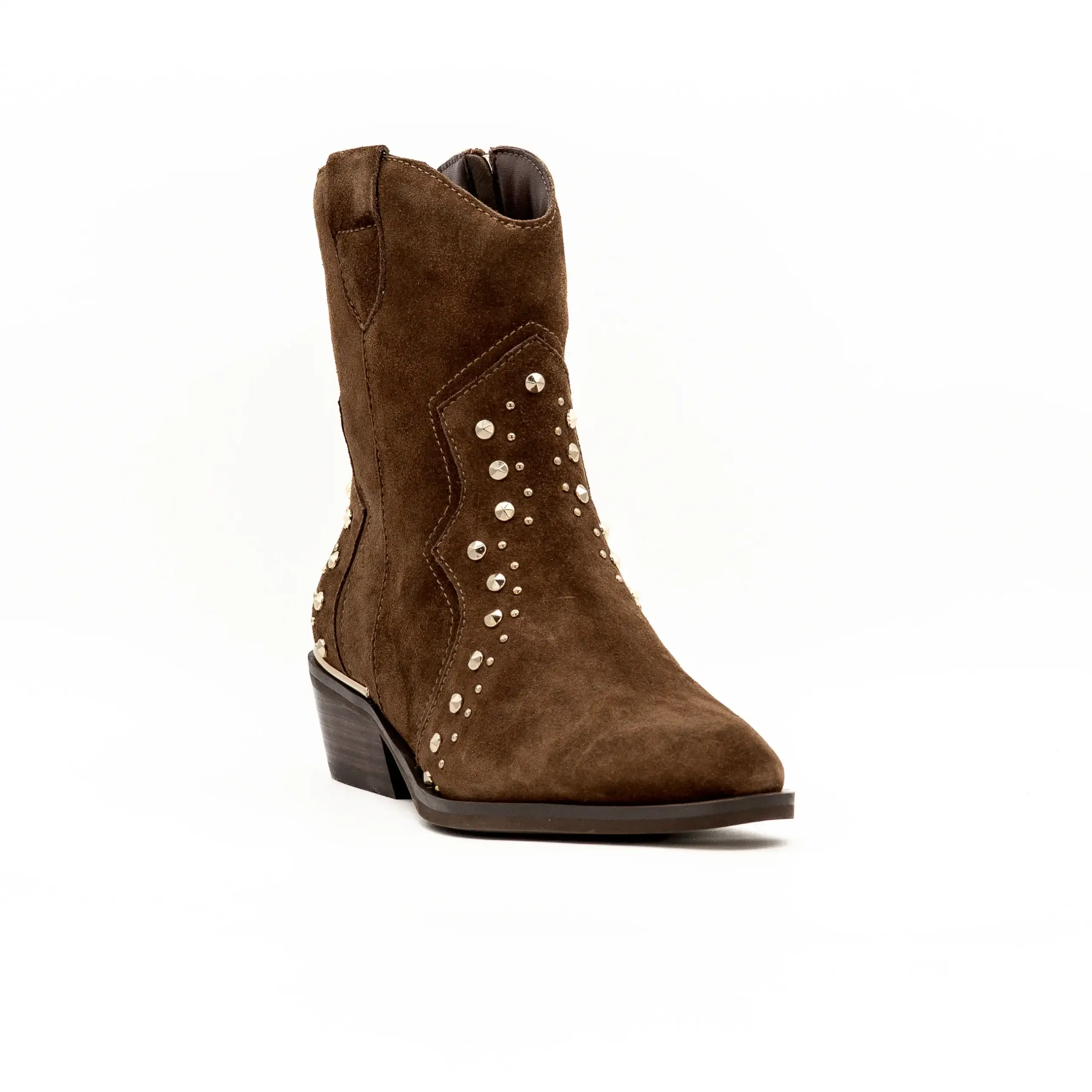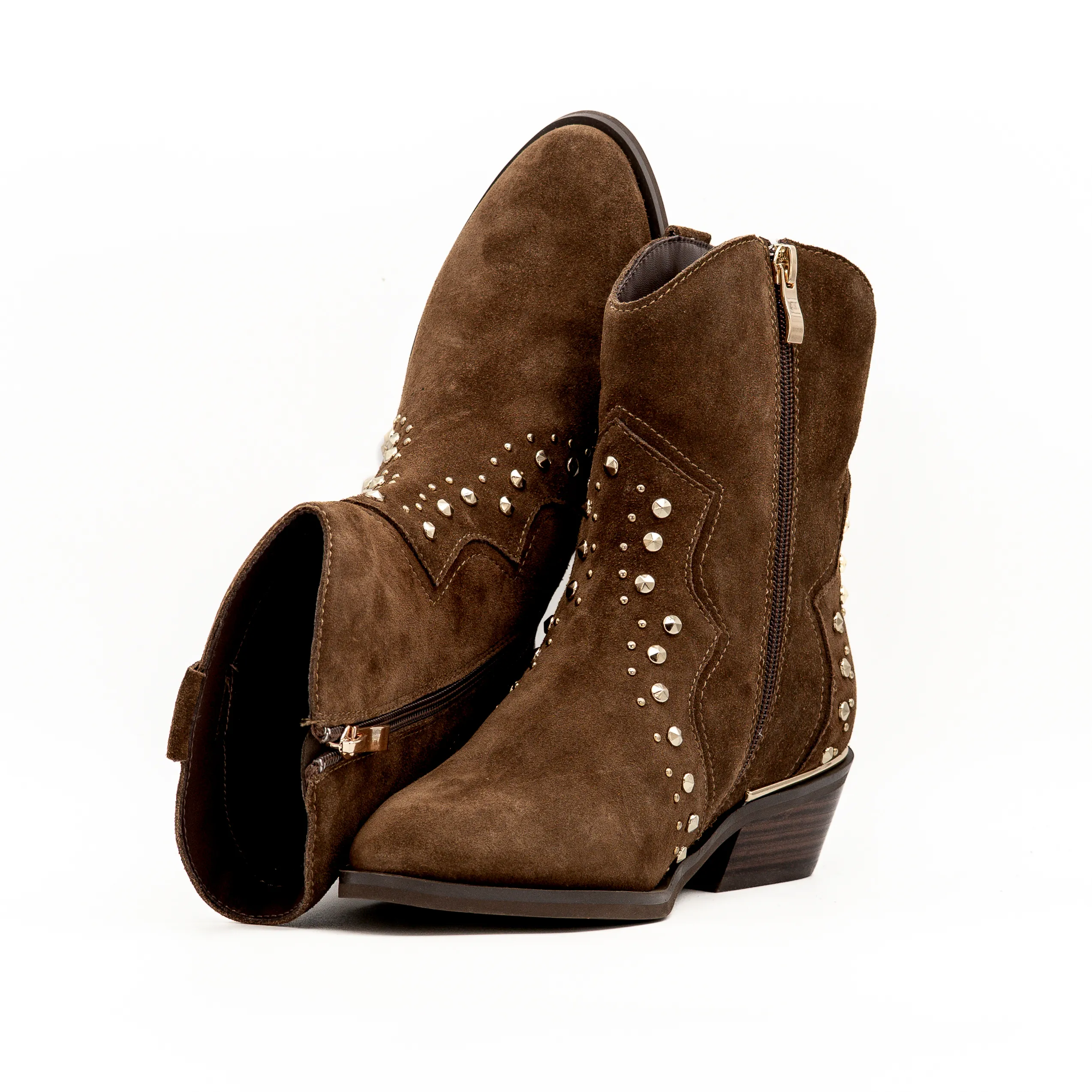 Em camurça castanha com tachas são o equilíbrio perfeito entre elegância e ousadia.