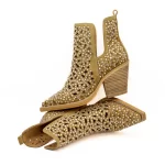 Esta bota feminina é complementada com tachas e aberturas nas laterais que lhe conferem máxima elegância.
