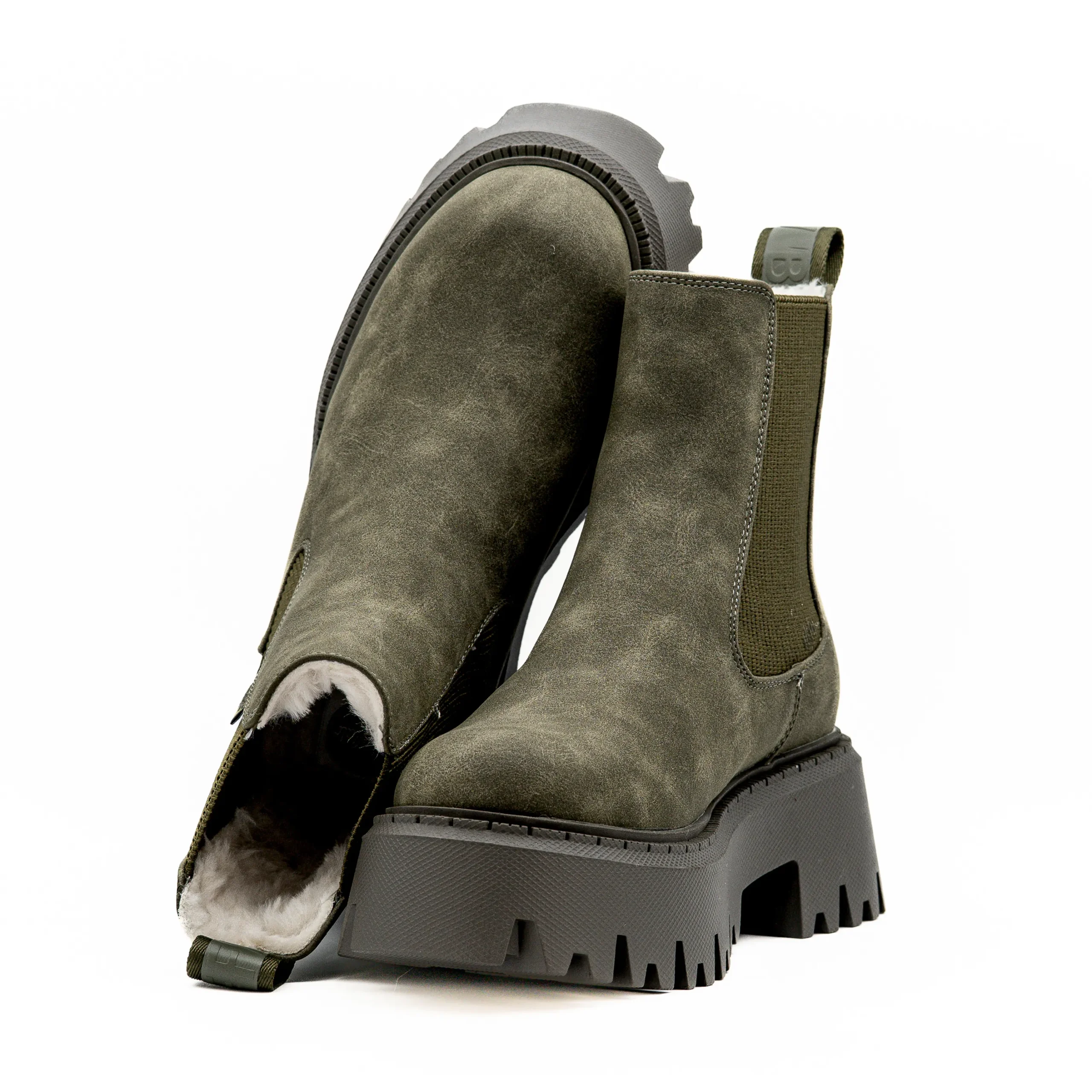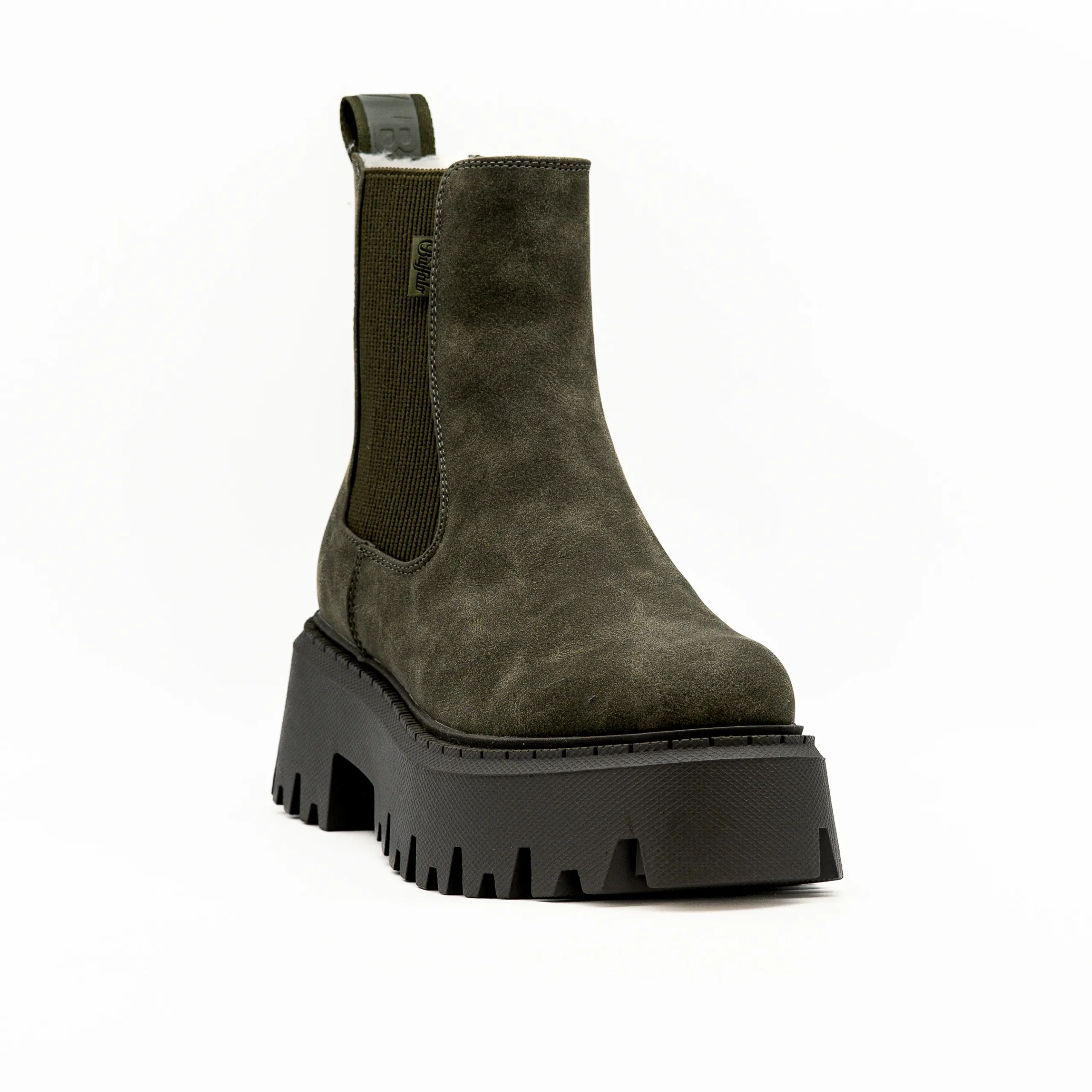 O acabamento em camurça verde e o solado tratorado criam um visual moderno, perfeito para quem adora um toque urbano e descontraído.