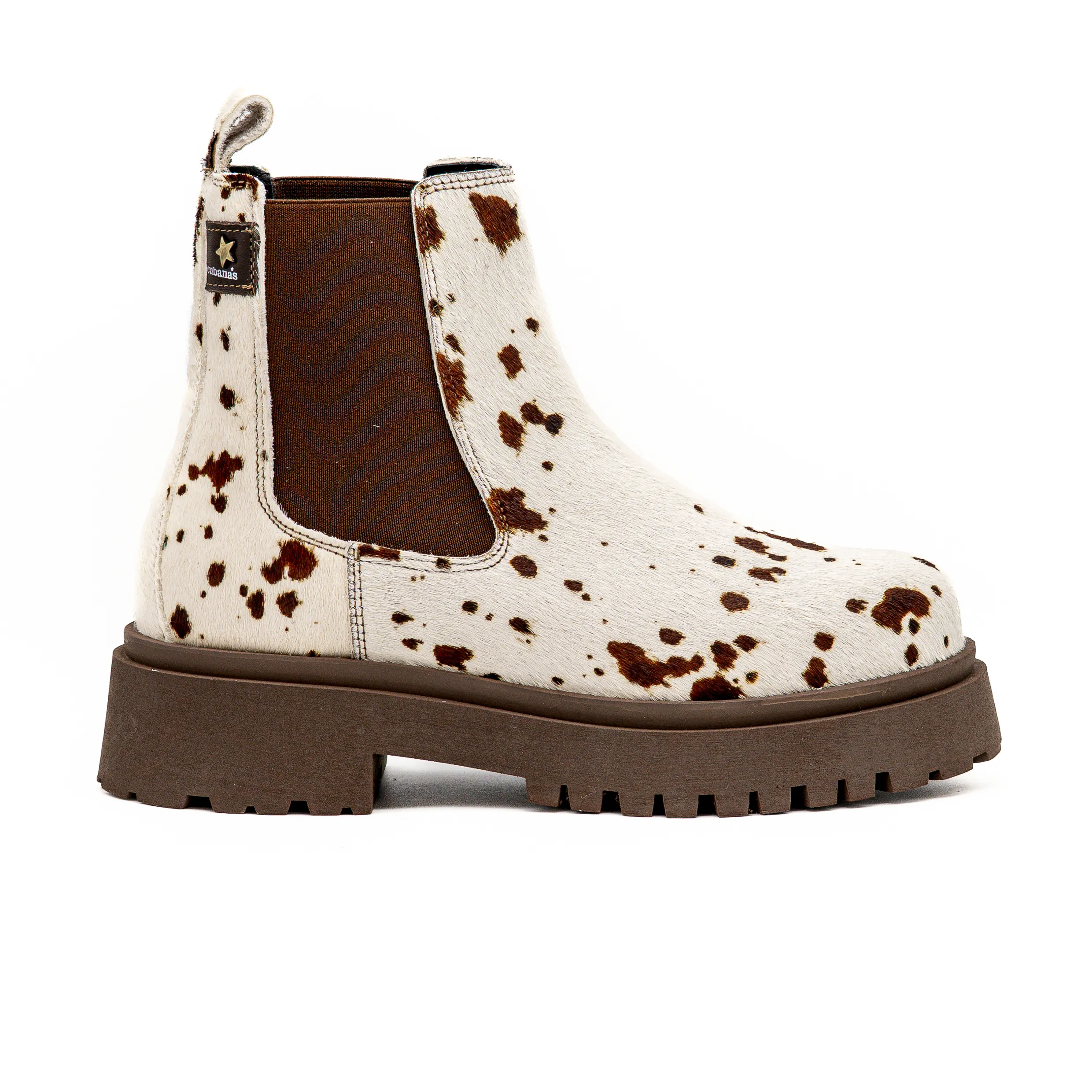 Esta bota com um padrão animal print é definição de ousadia e elegância.