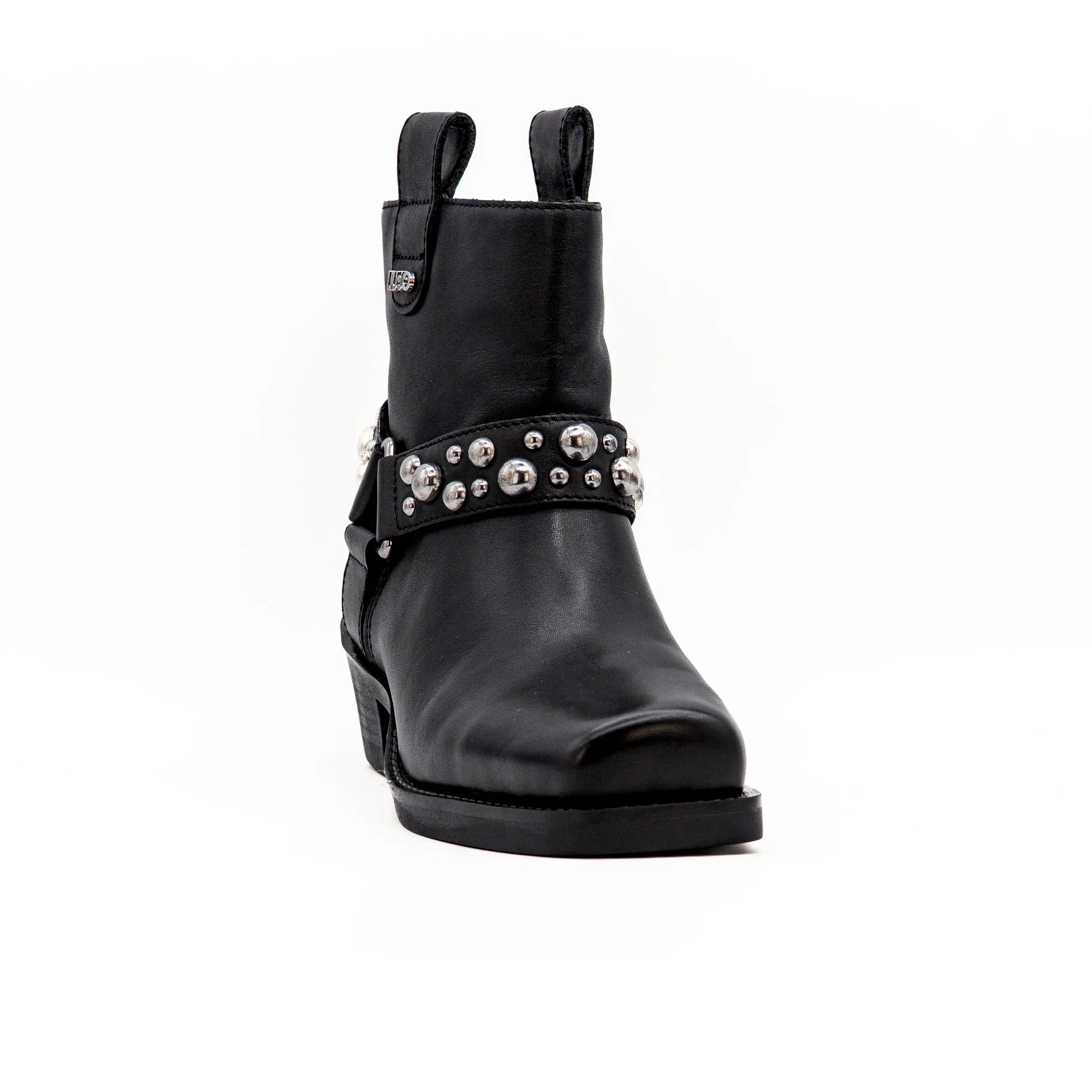 O detalhe das aplicações metálicas traz aquele toque rebelde que eleva qualquer outfit e o equilíbrio perfeito entre conforto e personalidade.