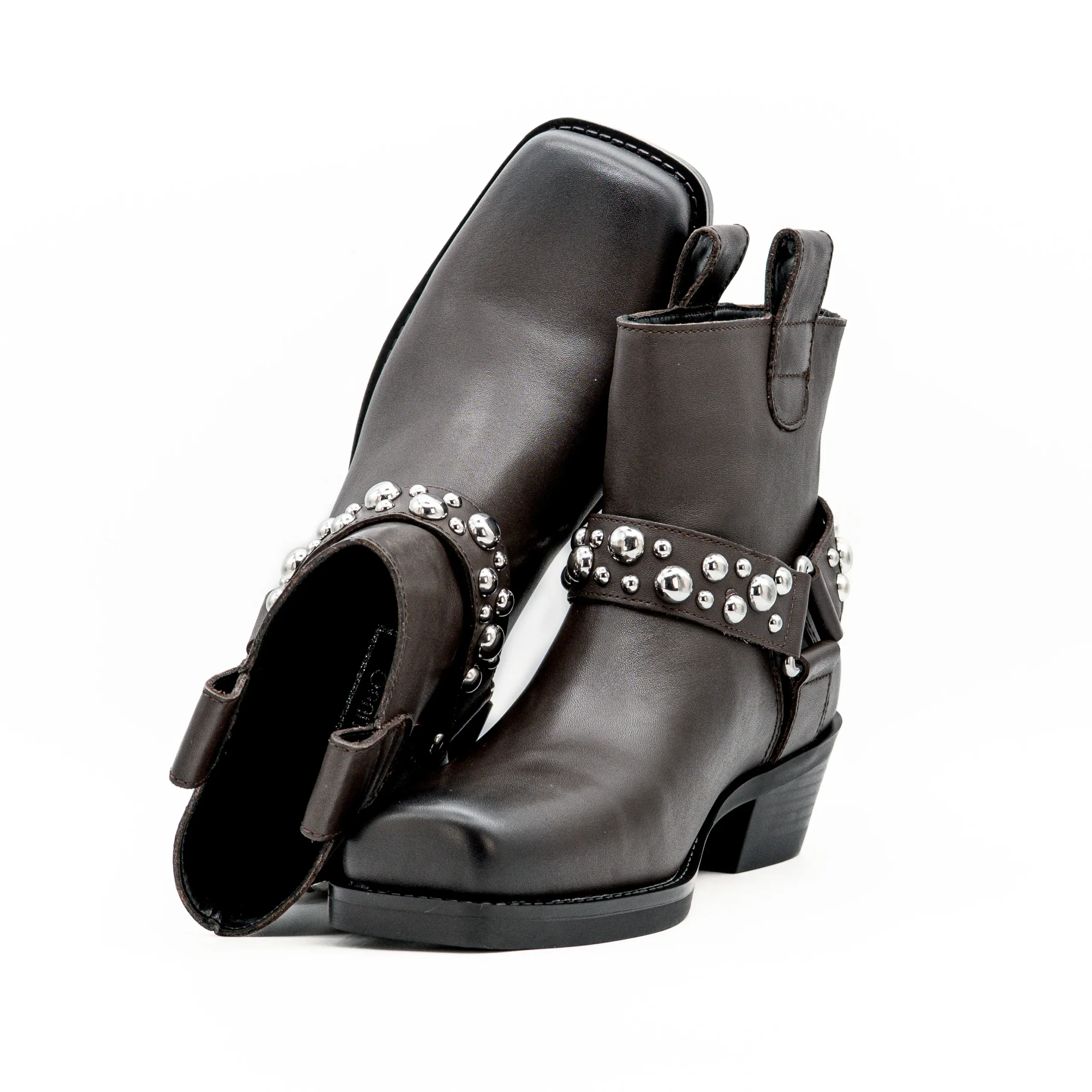 O detalhe das aplicações metálicas traz aquele toque rebelde que eleva qualquer outfit e o equilíbrio perfeito entre conforto e personalidade.
