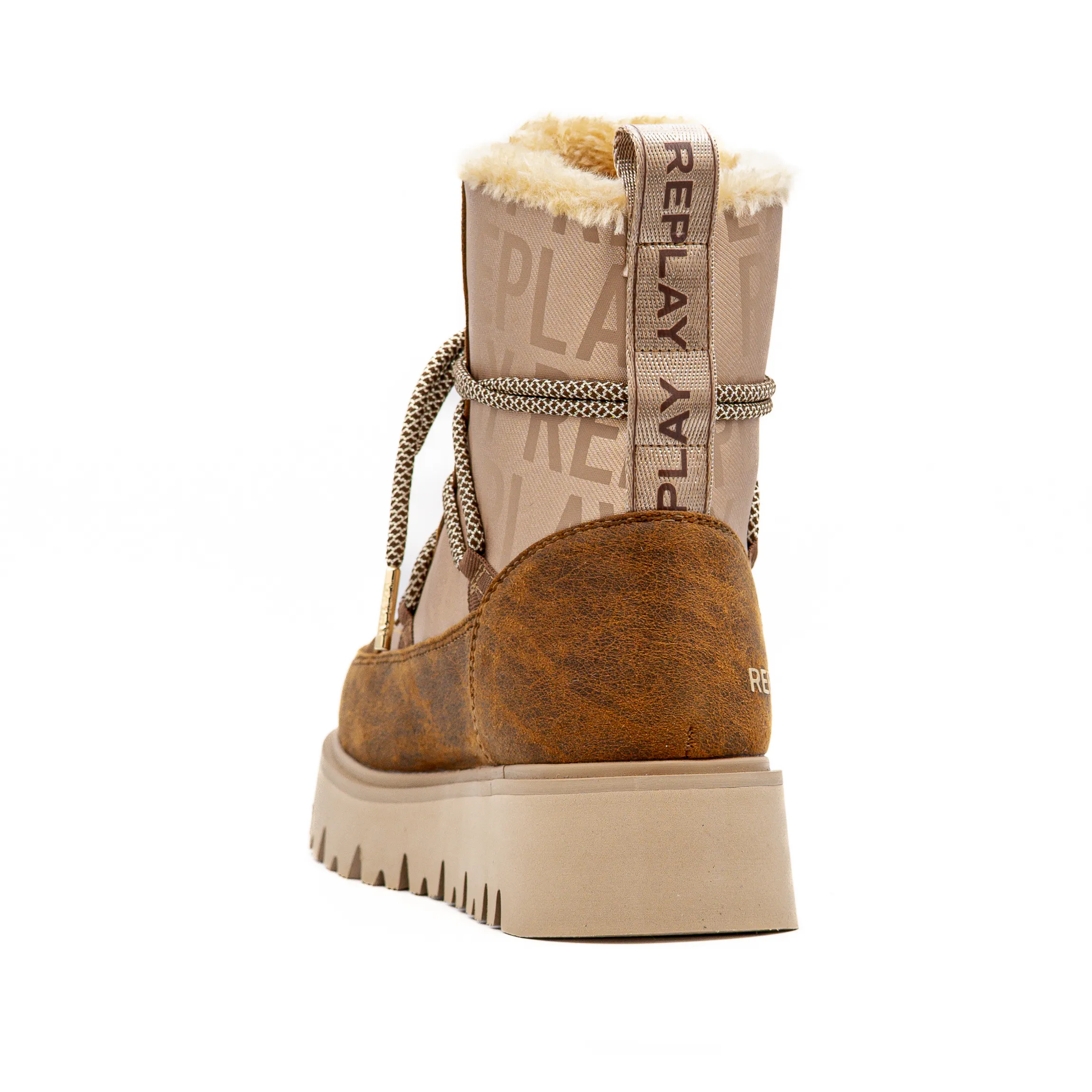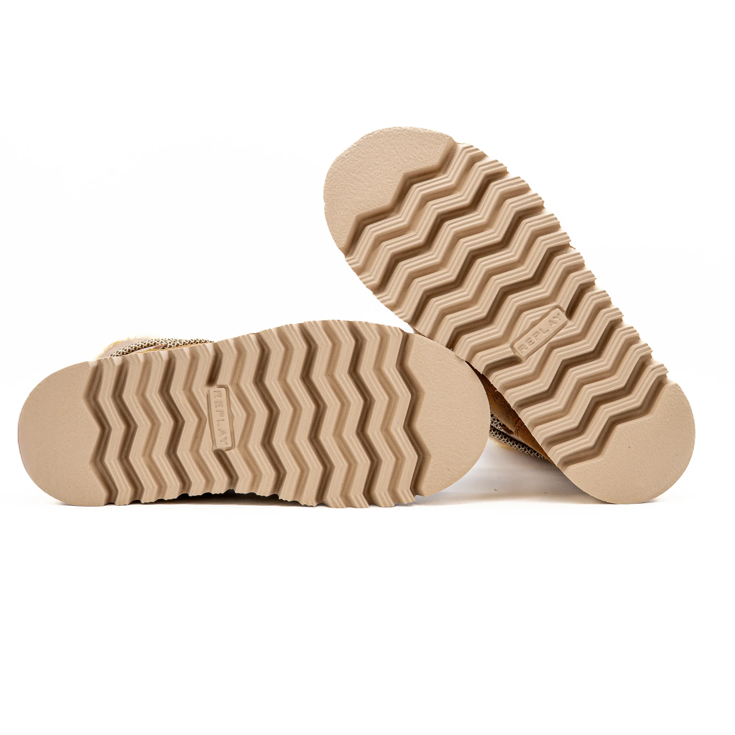 A parte superior apresenta o icónico logótipo Replay em destaque e um acolchoado com efeito “puffer”, forrado no interior em pelo macio, que envolve o pé num conforto irresistível.