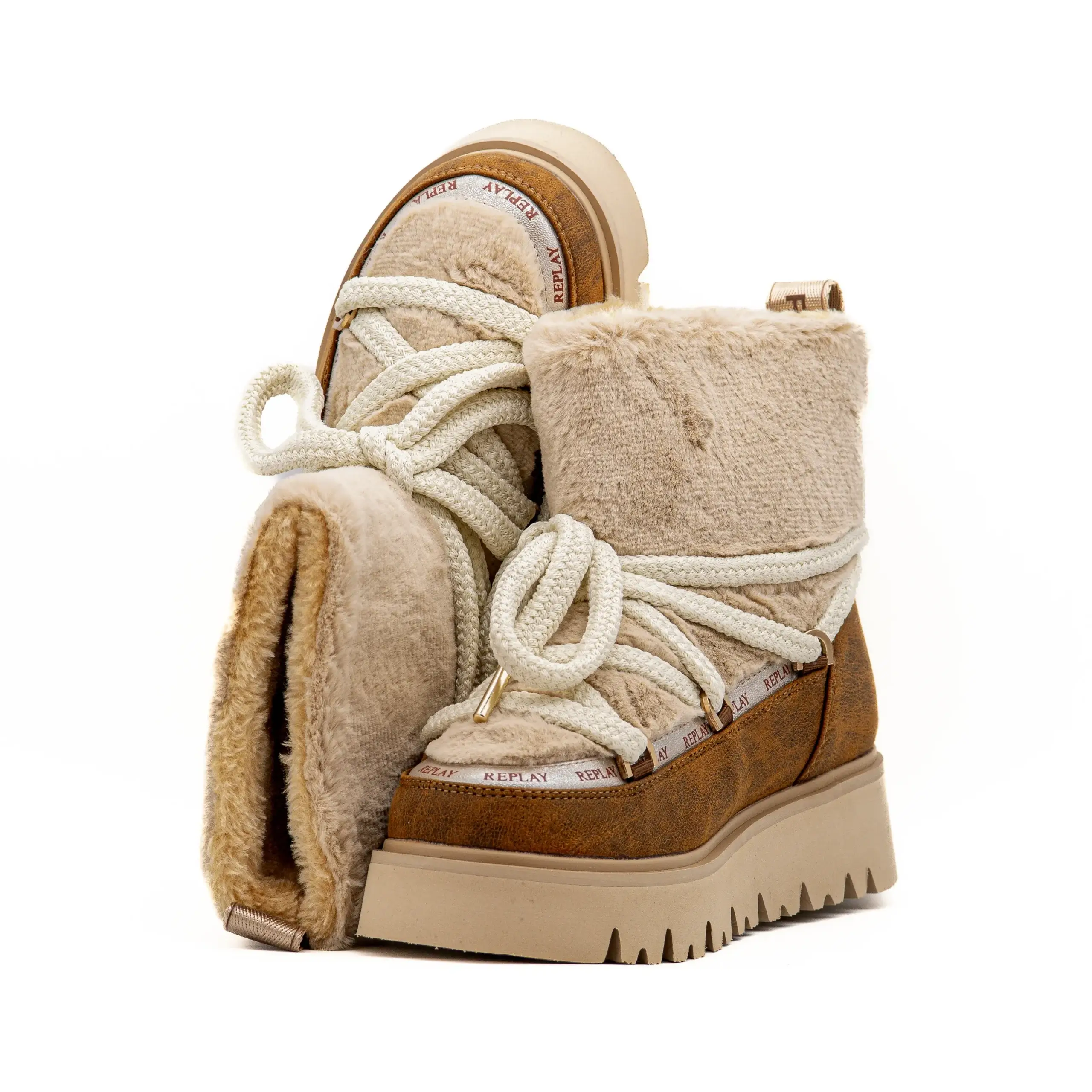 A parte superior apresenta o icónico logótipo Replay em destaque e um acolchoado com efeito “puffer”, forrado no interior em pelo macio, que envolve o pé num conforto irresistível.