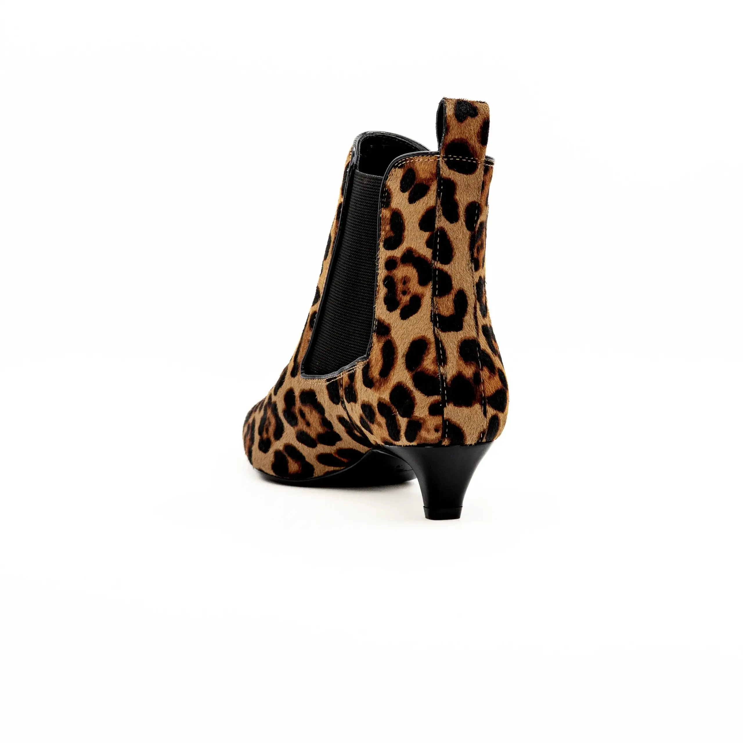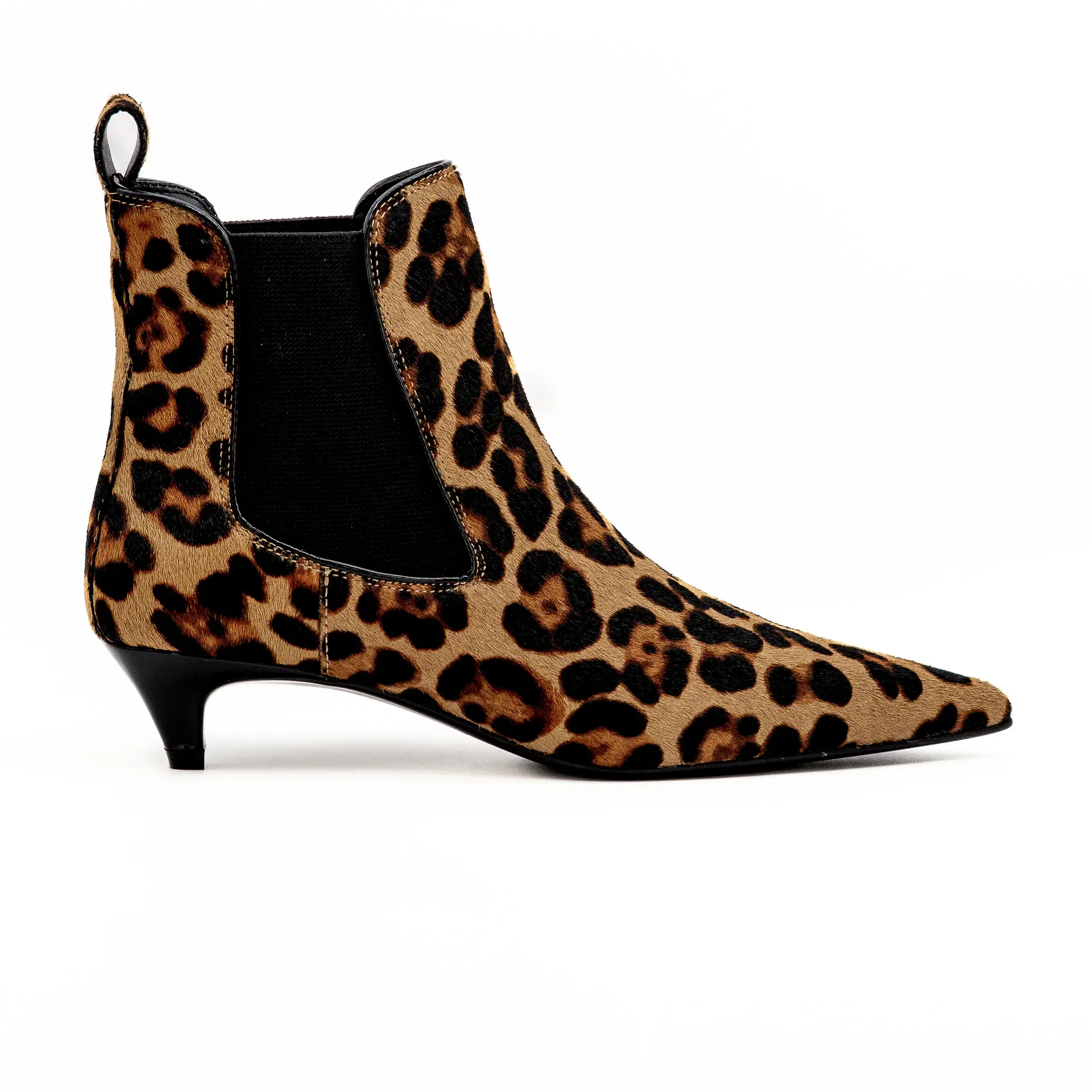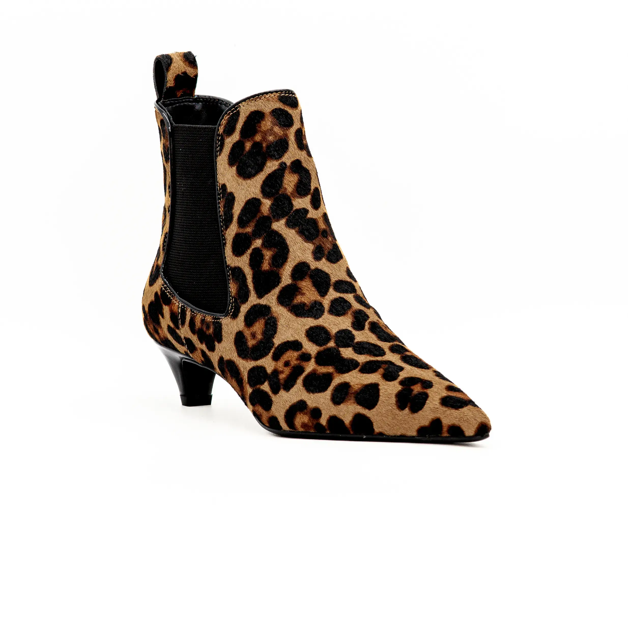 Com um equilíbrio perfeito entre o clássico e o moderno, esta bota distingue-se pela sua elegância subtil através do padrão de animal print e conforto excecional.
