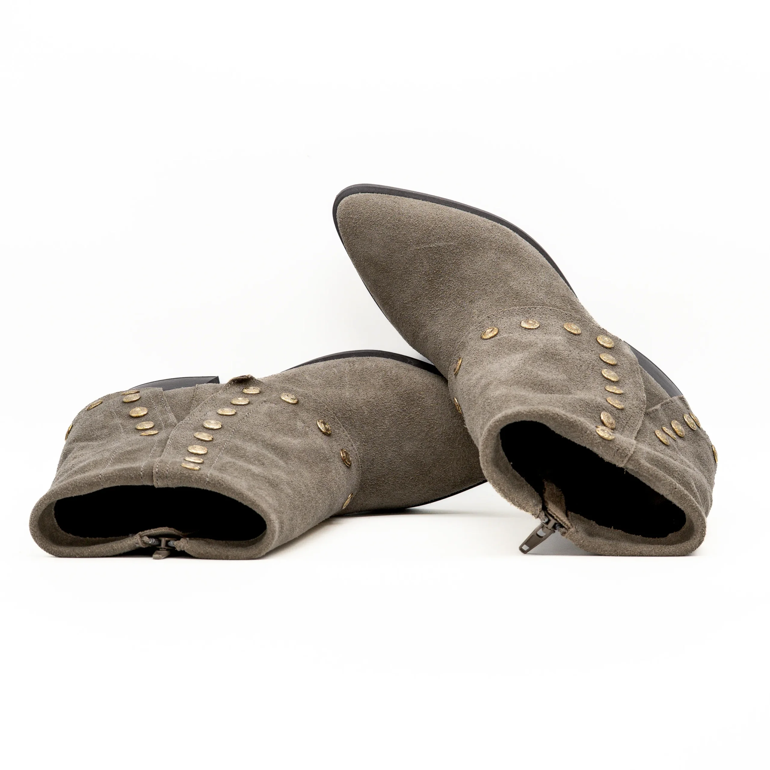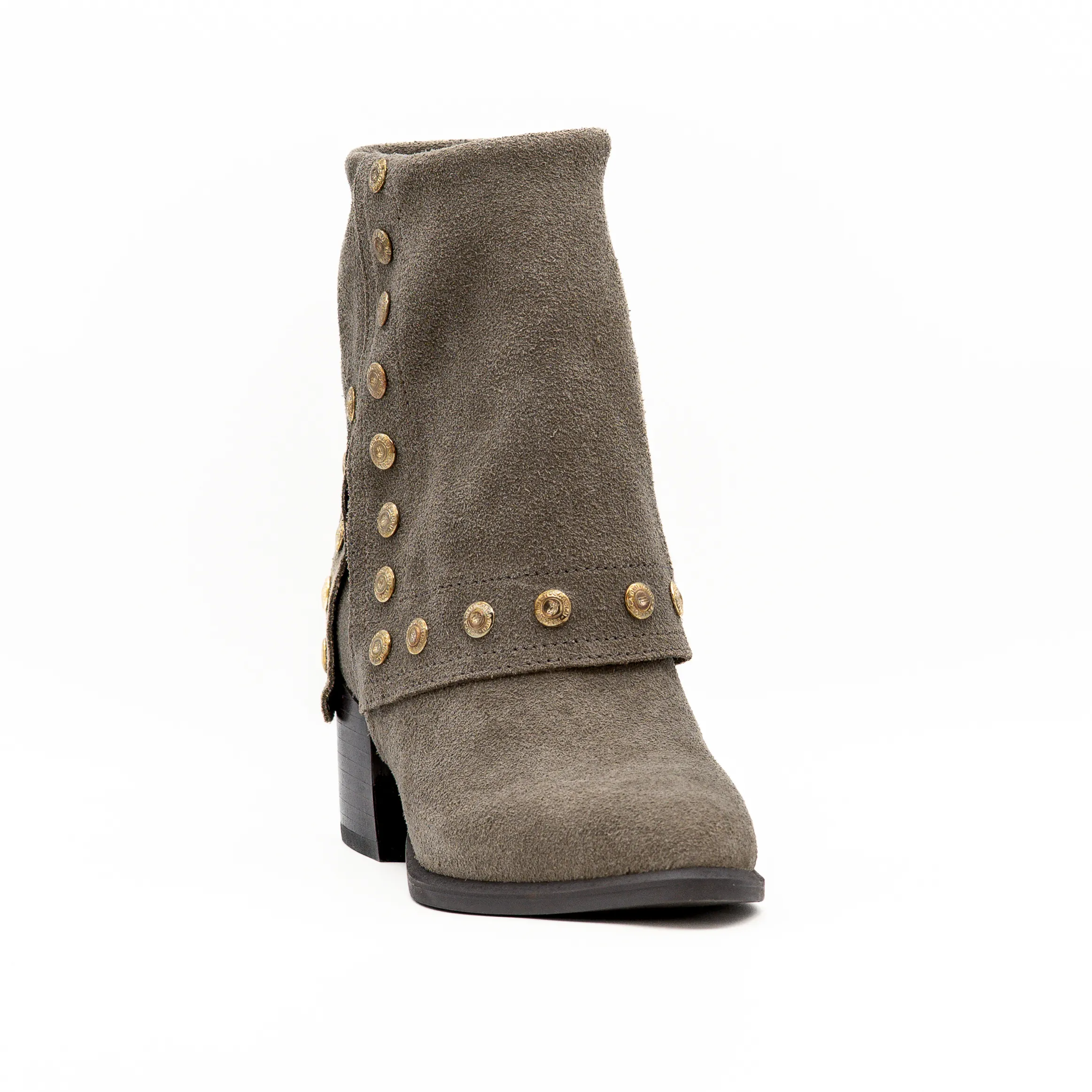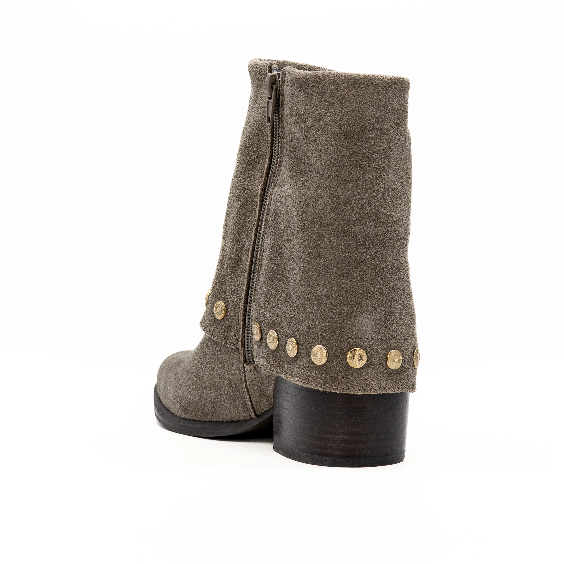 Esta bota é o equilíbrio perfeito entre elegância e irreverência! Este modelo da Tosca Blu é complementado com camurça , tachas douradas e um salto médio que levanta qualquer outfit sem sacrificar o conforto.