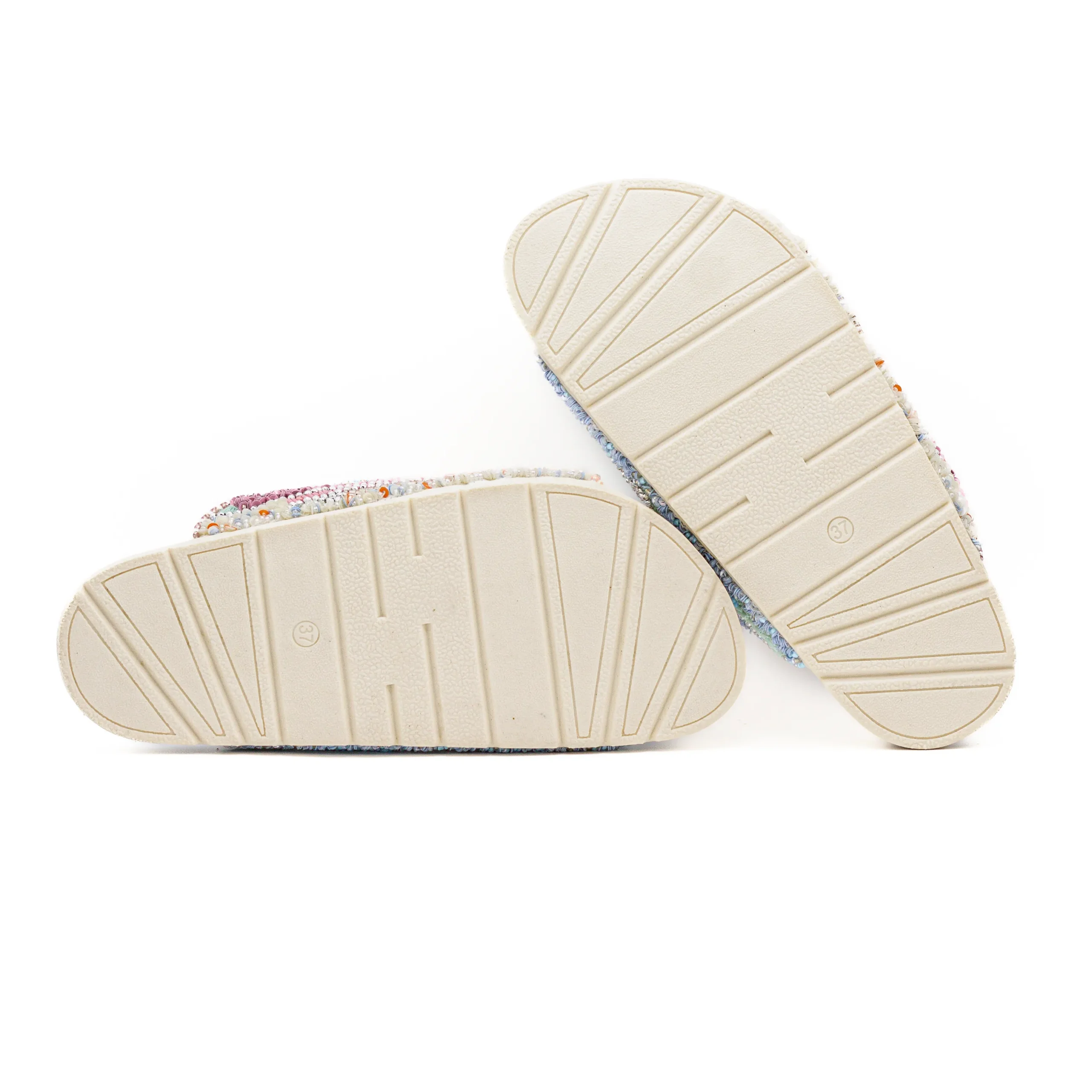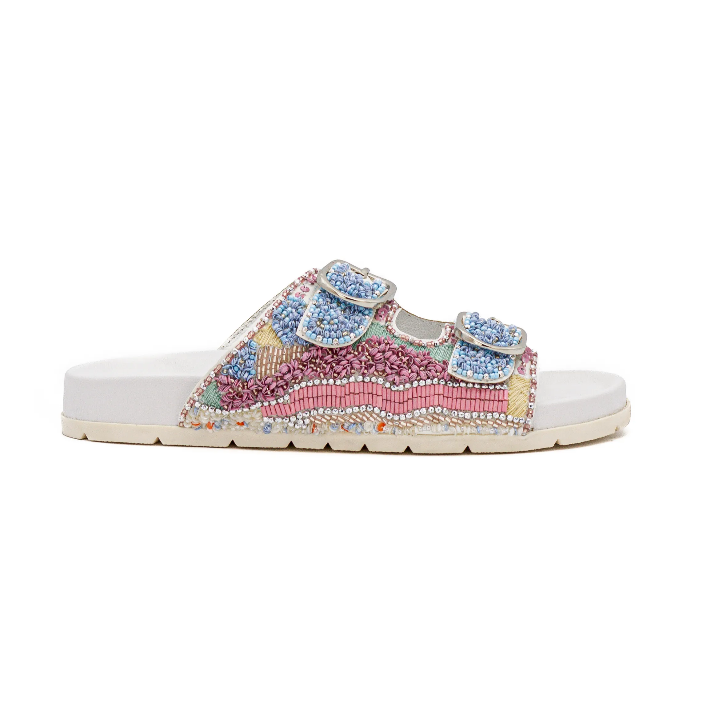 Complementado com um design perfeito, aberta na frente, com tiras largas laterais, que suportam o pé.