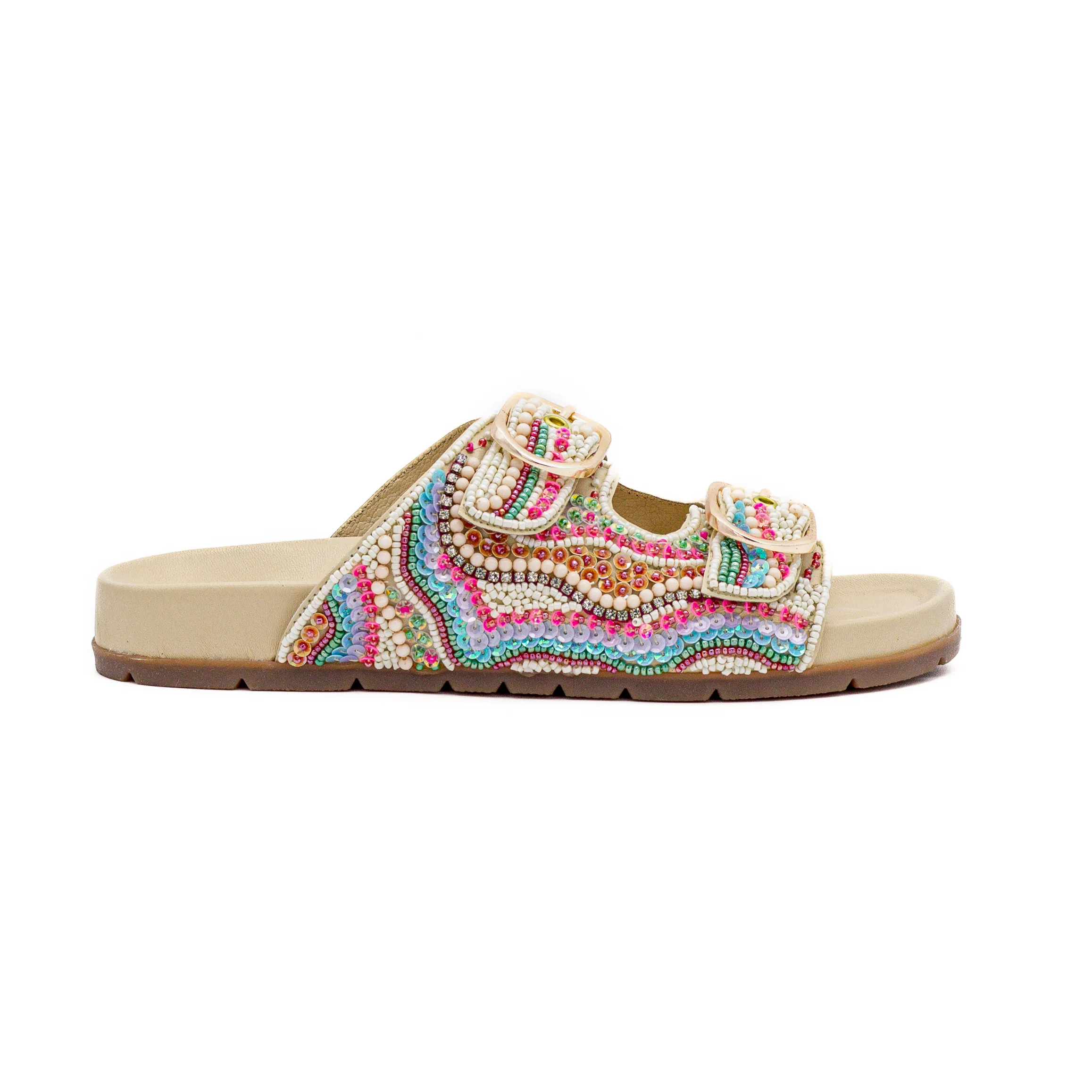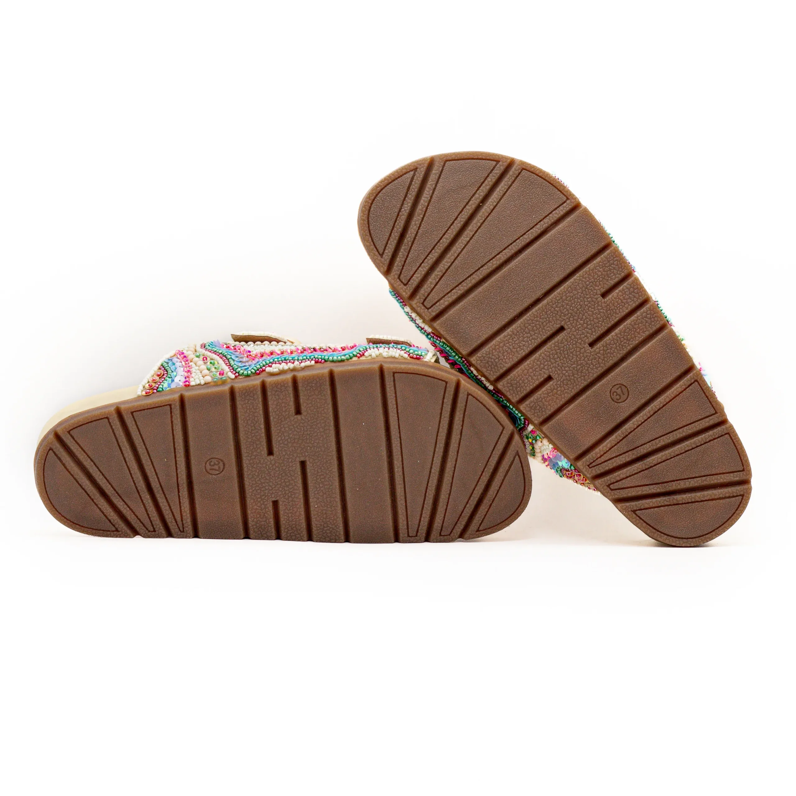 Complementado com um design perfeito, aberta na frente, com tiras largas laterais, que suportam o pé.
