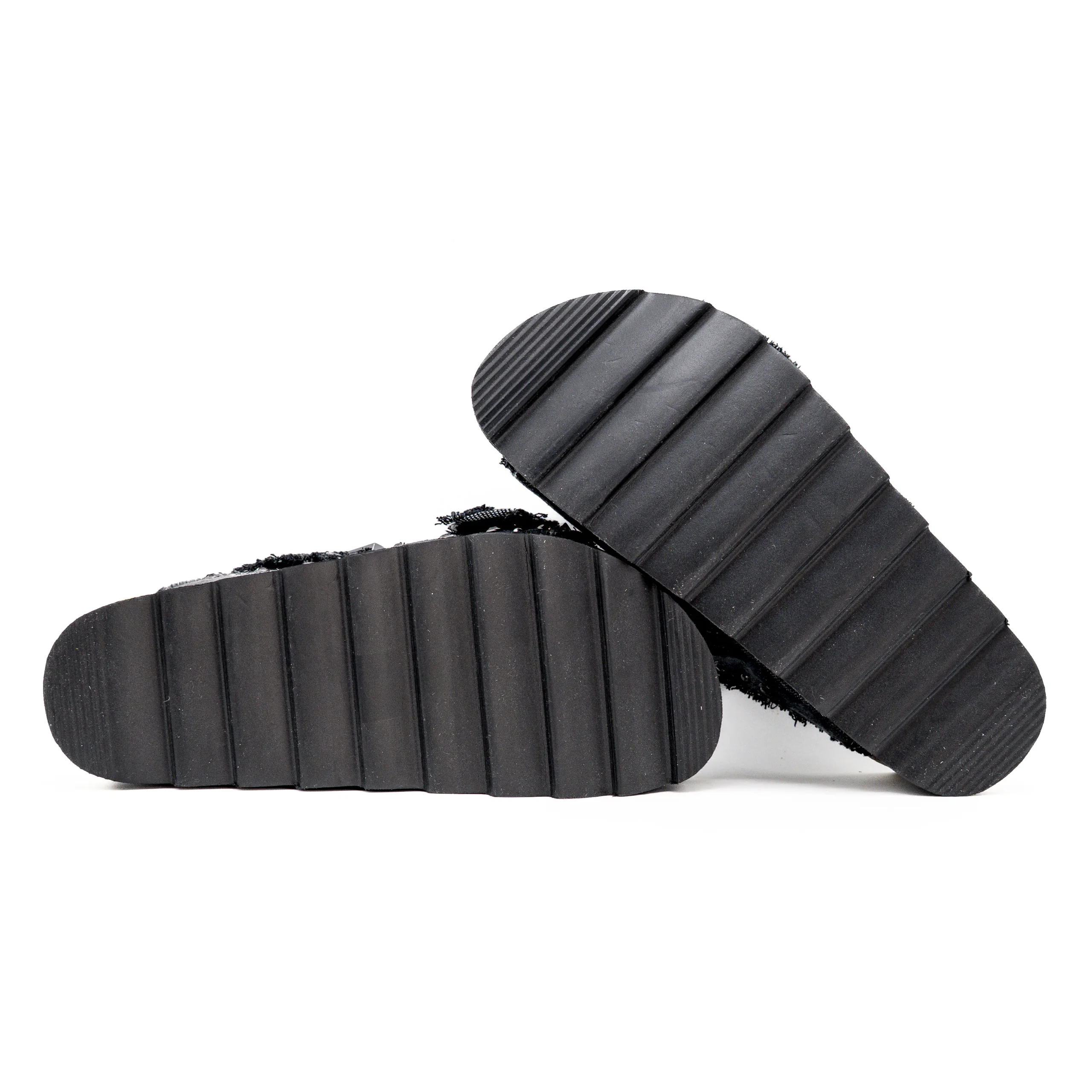 A sola robusta em plataforma preta cria um efeito statement, ideal para elevar qualquer look casual com personalidade e estilo.
