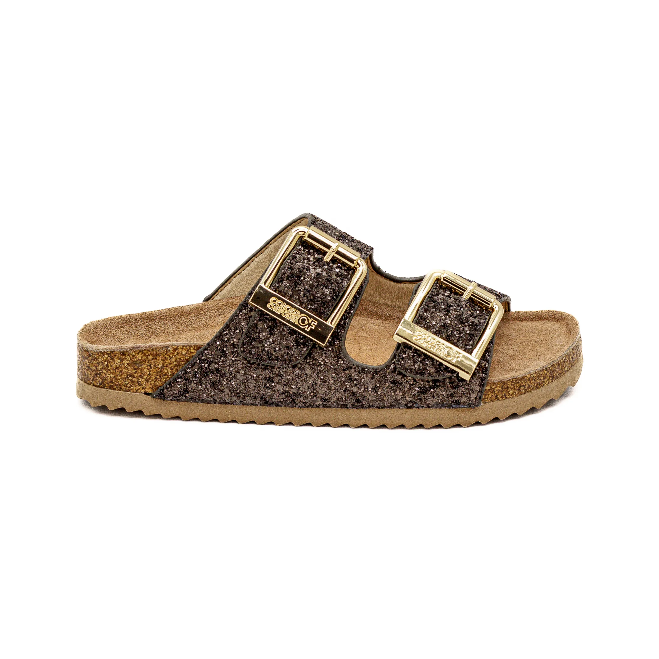 Revestido de glitters e monocromático este chinelo é uma tendência para esta estação!
