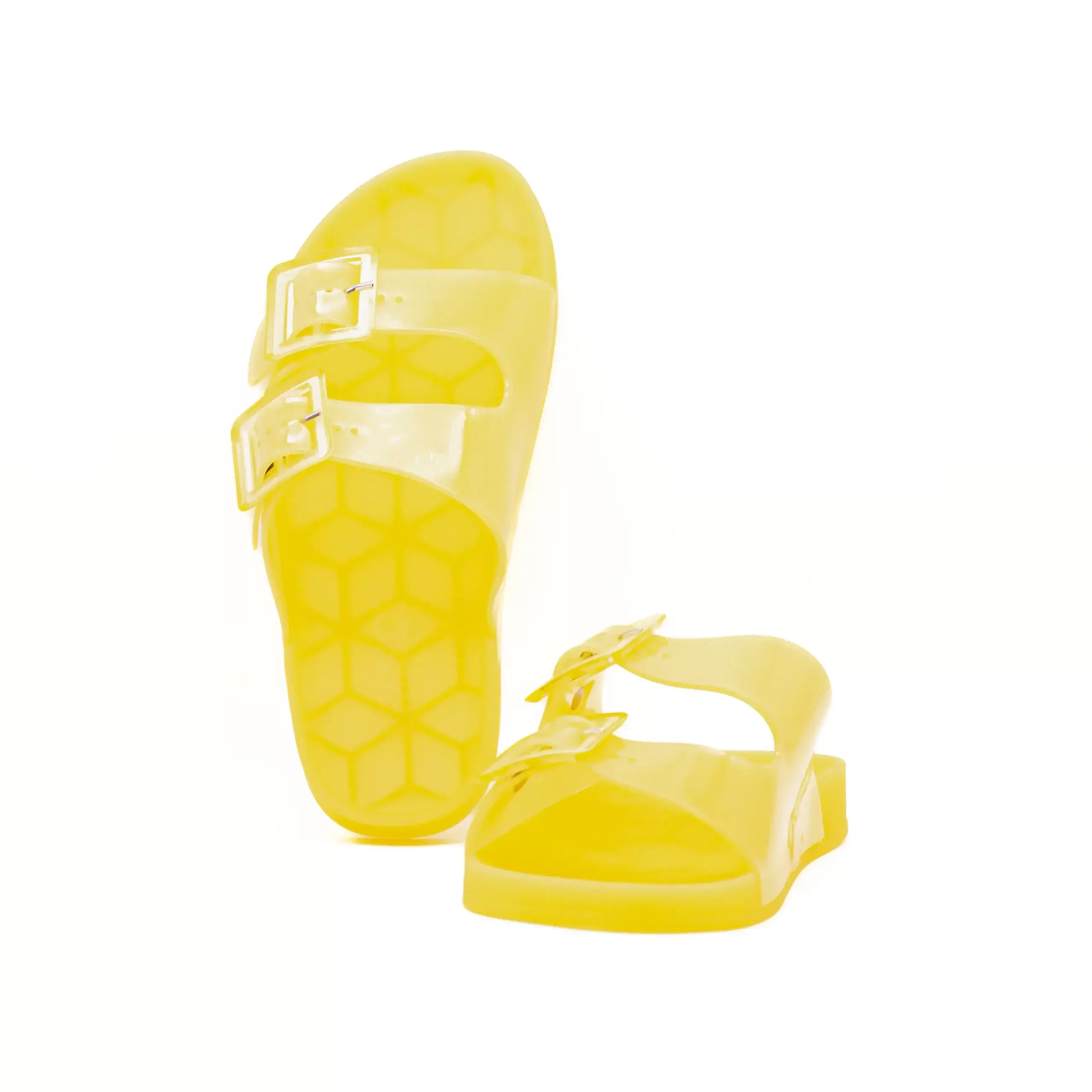 Este chinelo é produzido em PVC, tem um ajuste com fivelas e é uma ótima e prática opção para esta estação.