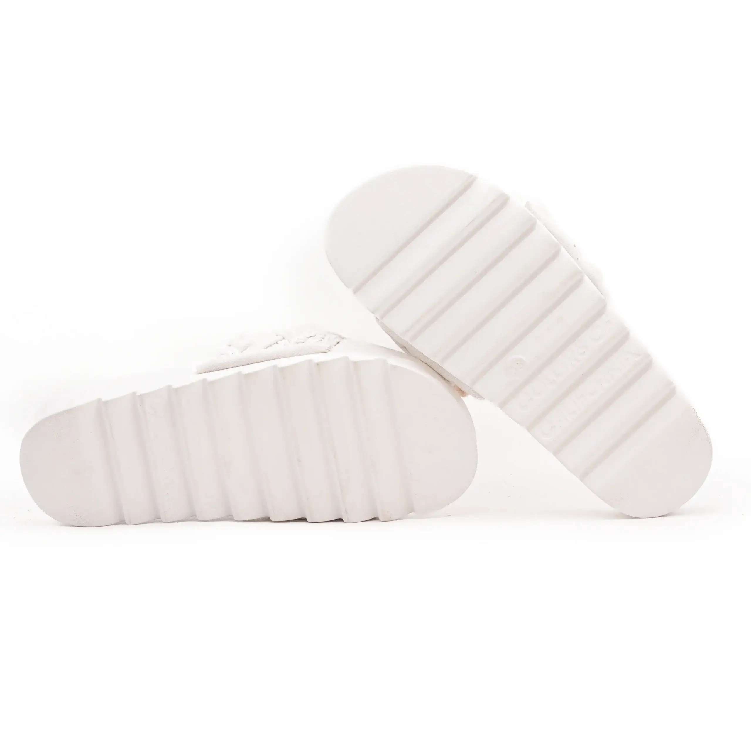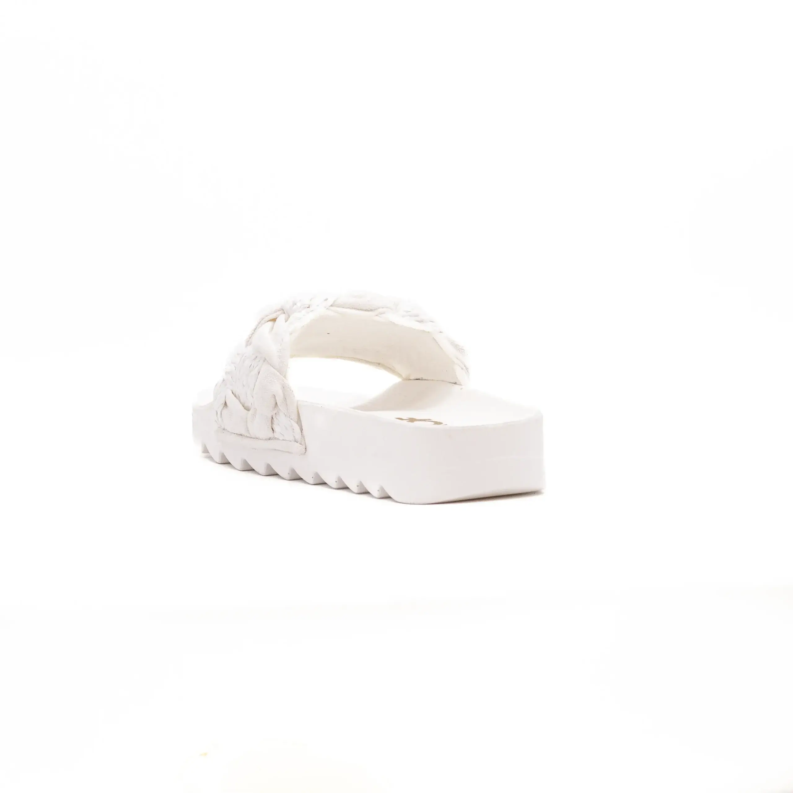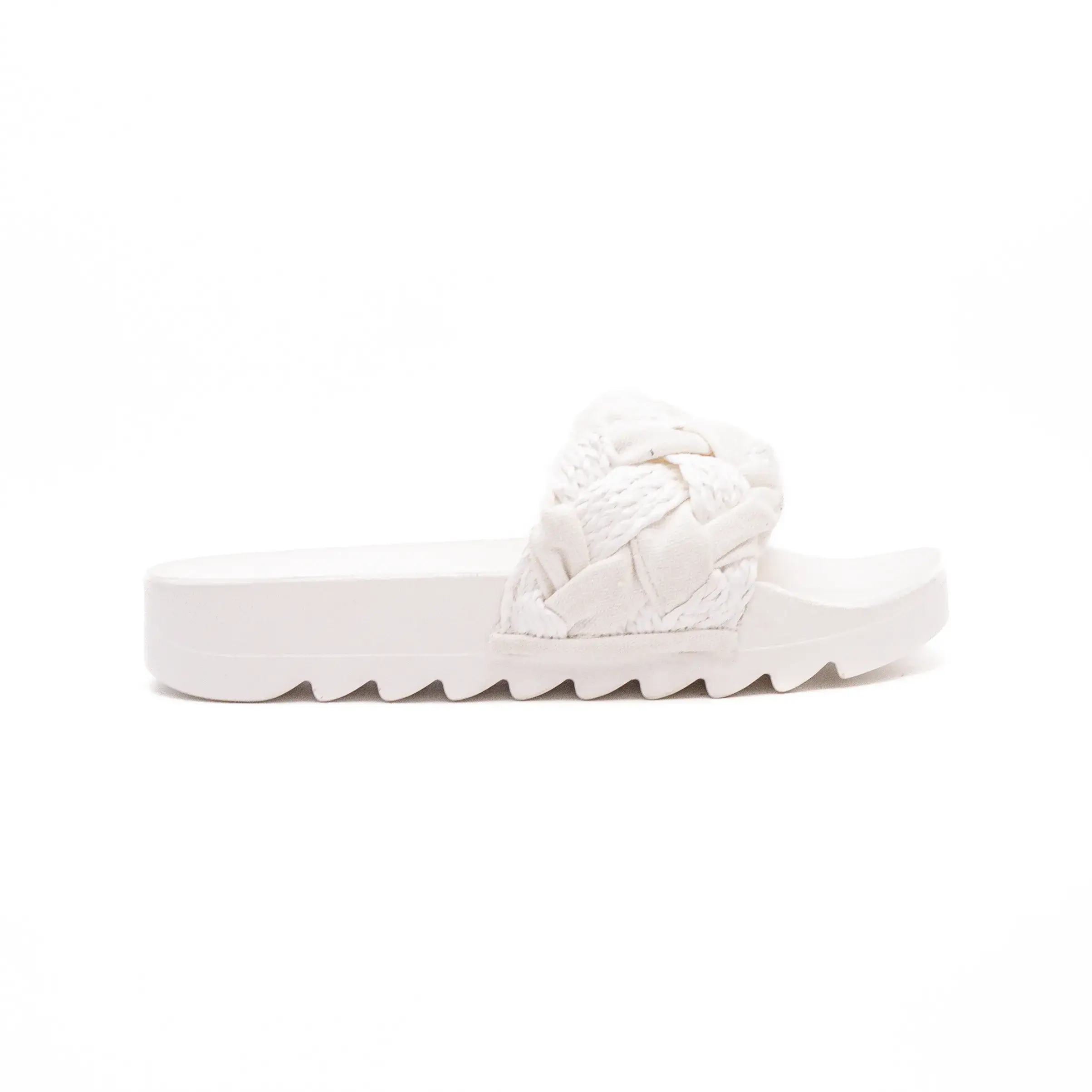 Revestido com um material entrançado e monocromático este chinelo é uma tendência para esta estação!