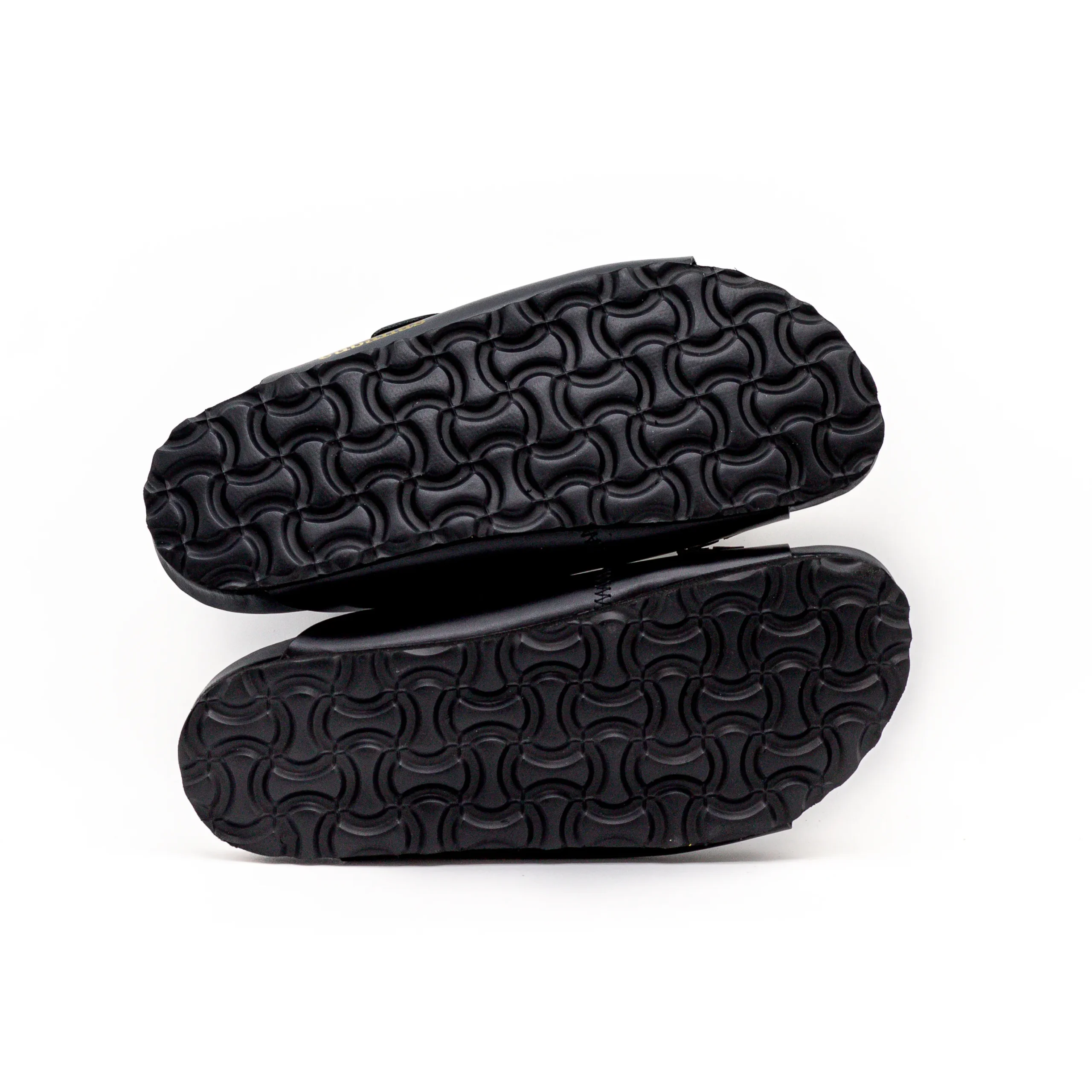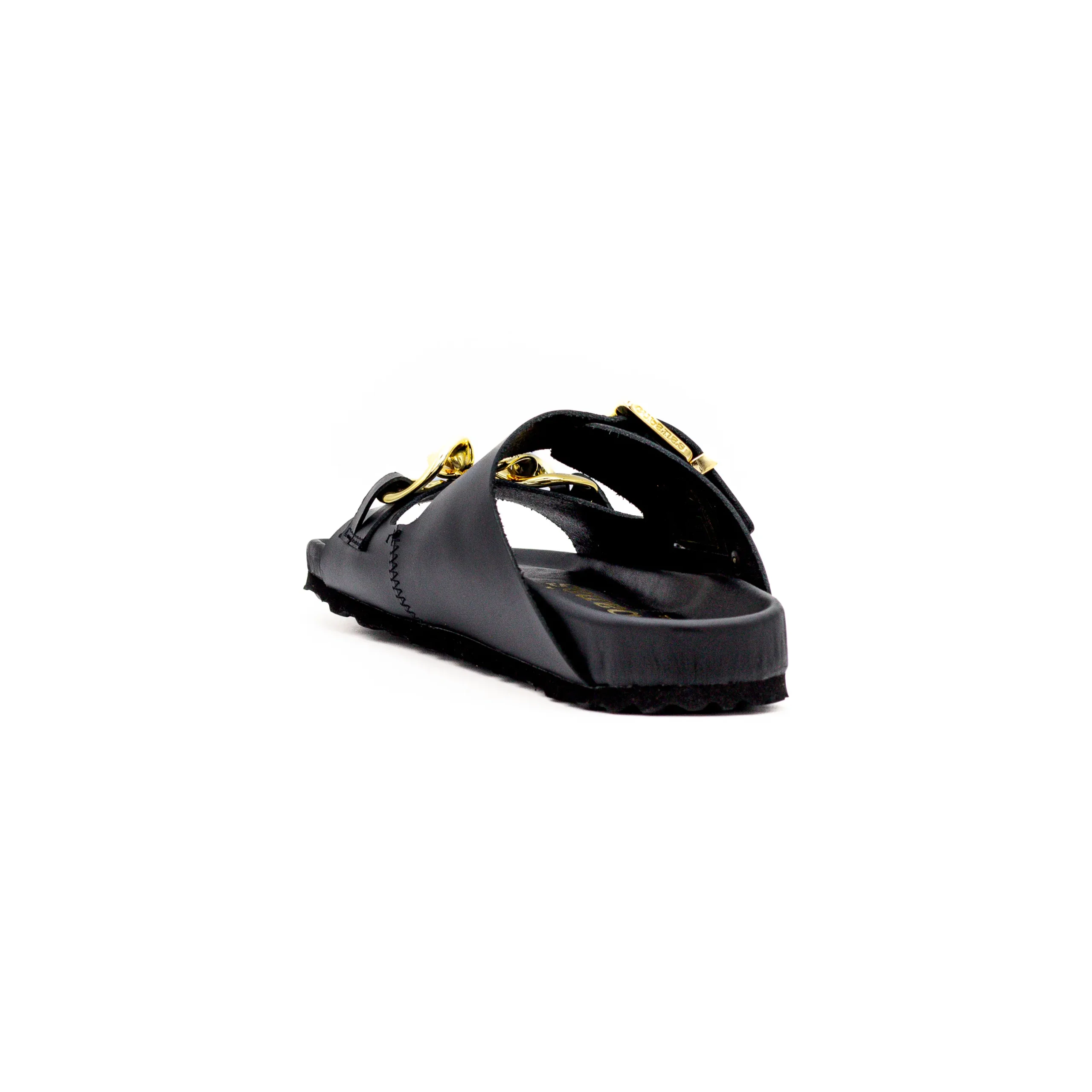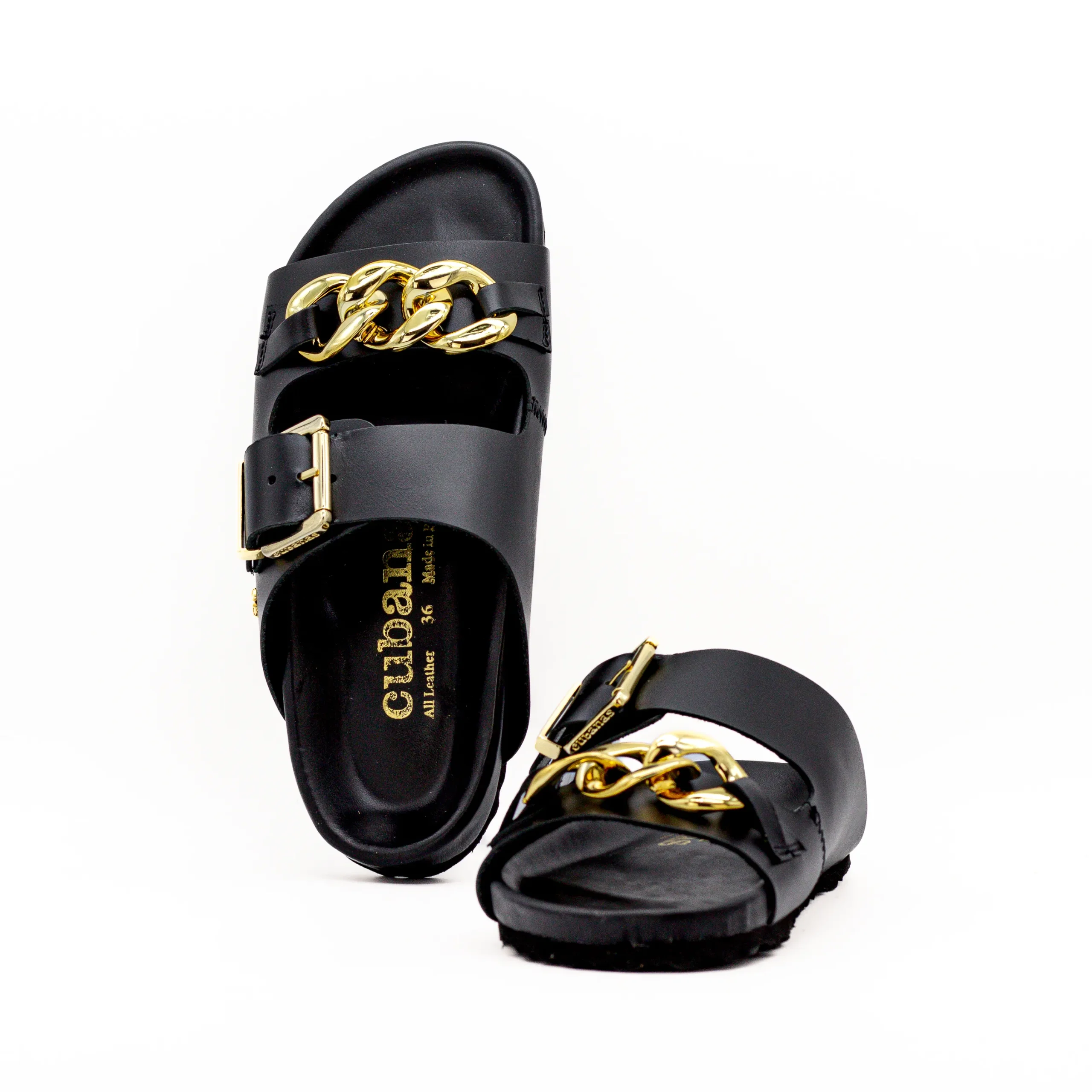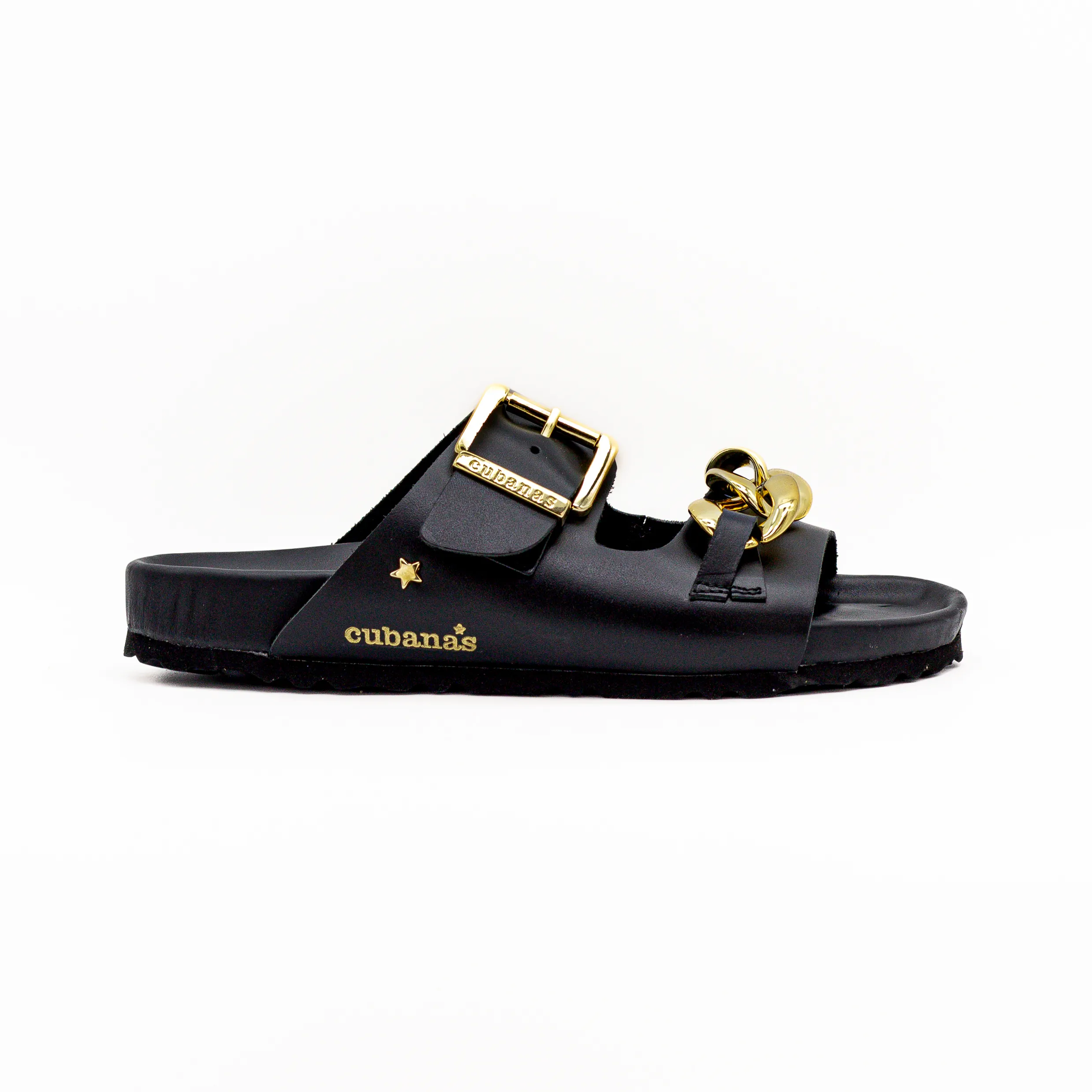 Um chinelo monocromático, requintado com os detalhes em corrente que vão dar o toque de estilo que precisas!