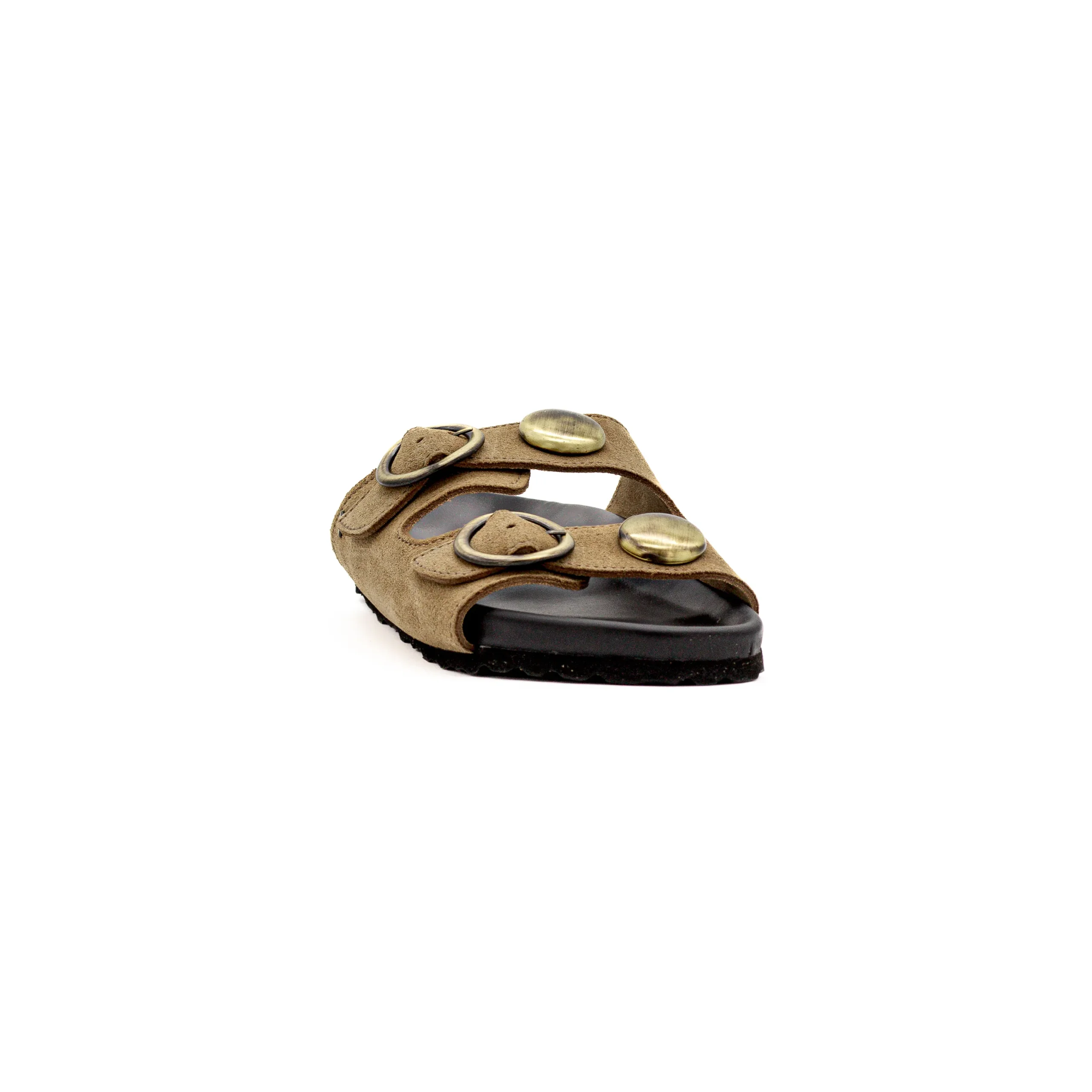 O fecho com fivela permite o ajuste perfeito do modelo ao pé.
