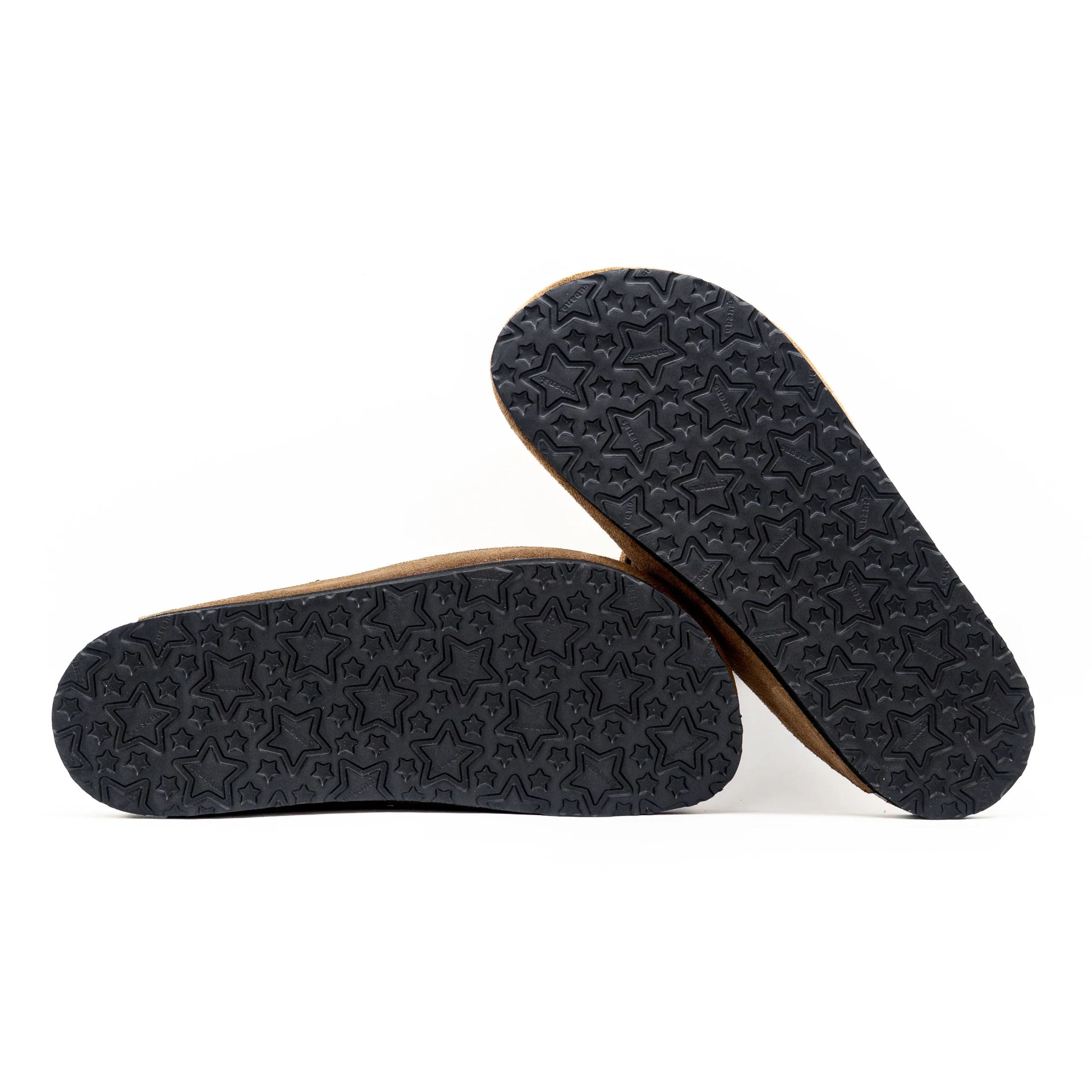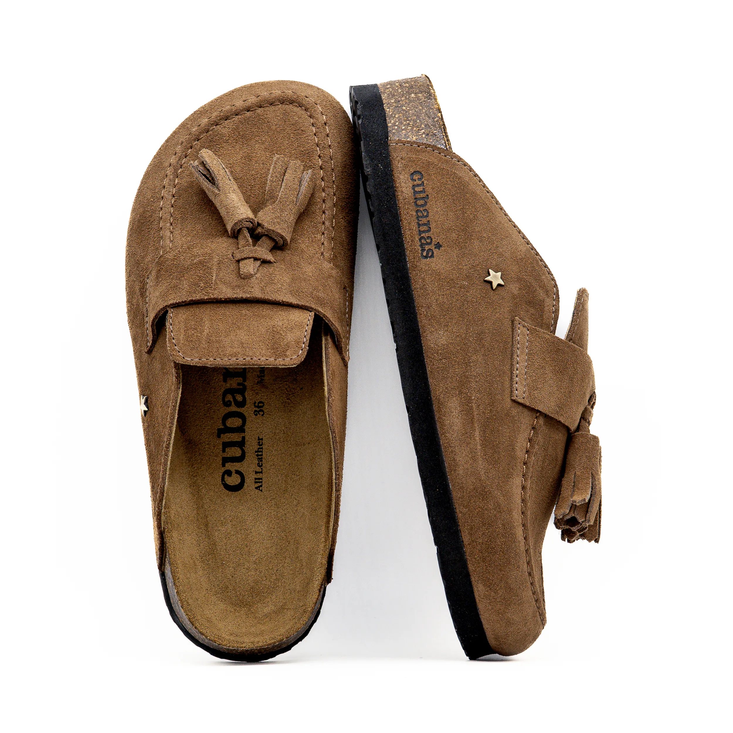 O chinelo Maria 751 camurça castanha apresenta um design clássico , perfeito para um estilo casual e moderno.