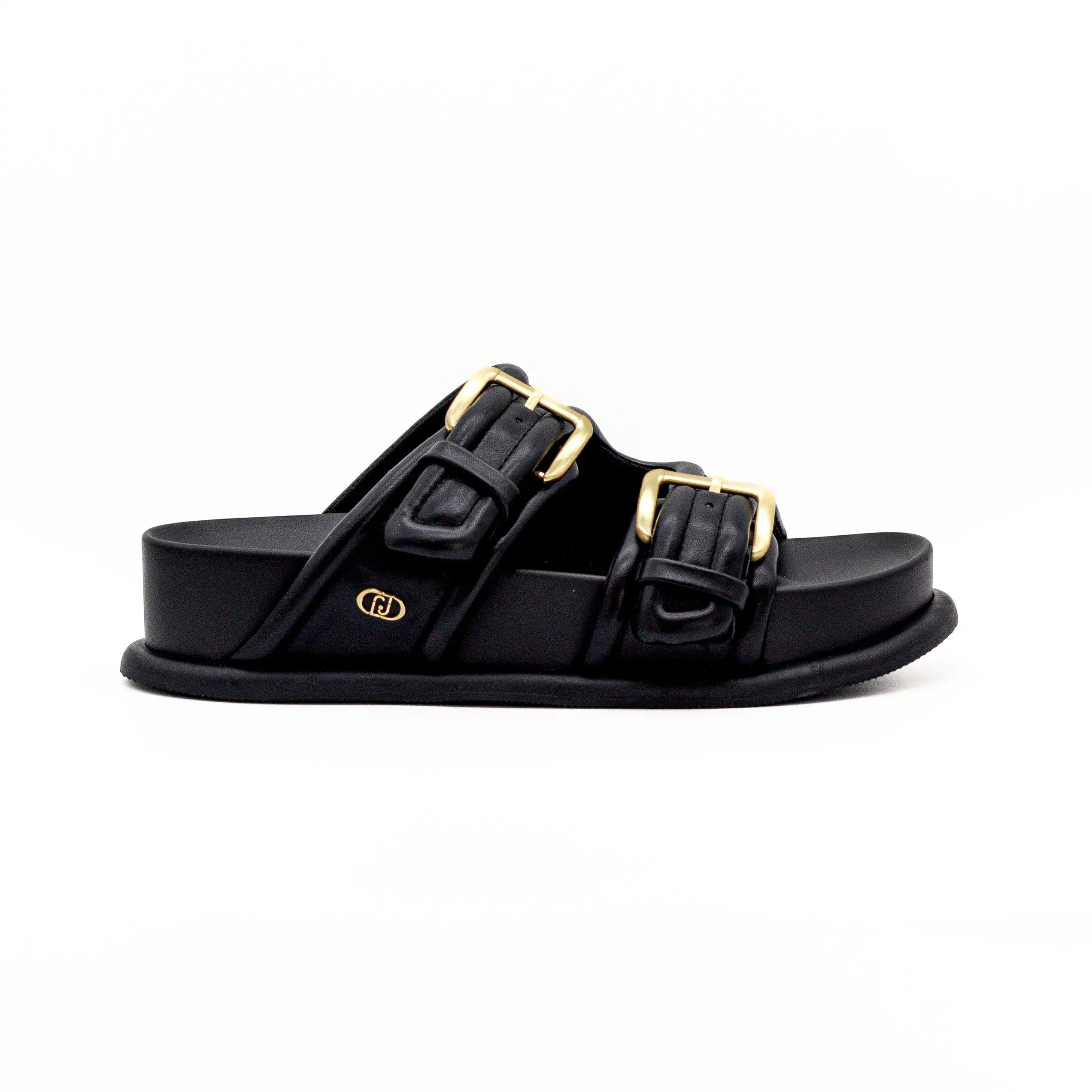 Complementado com um design perfeito, aberta na frente, com tiras largas laterais, que suportam o pé.