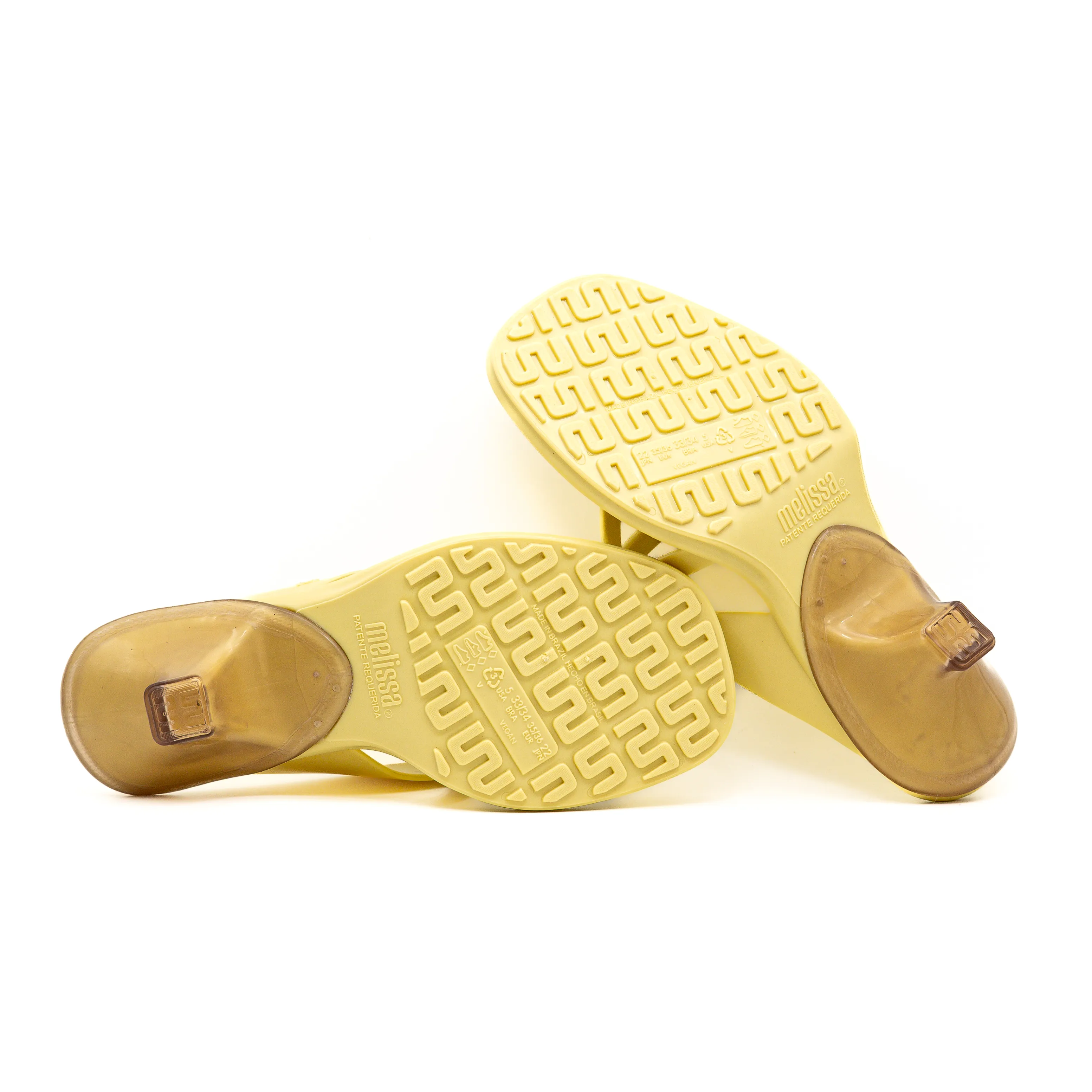 Este chinelo tem um cheirinho delicioso, e é produzido em Melflex (PVC, próprio da Melissa), 100% reciclável e que proporciona mais flexibilidade, resistência e conforto aos pés.