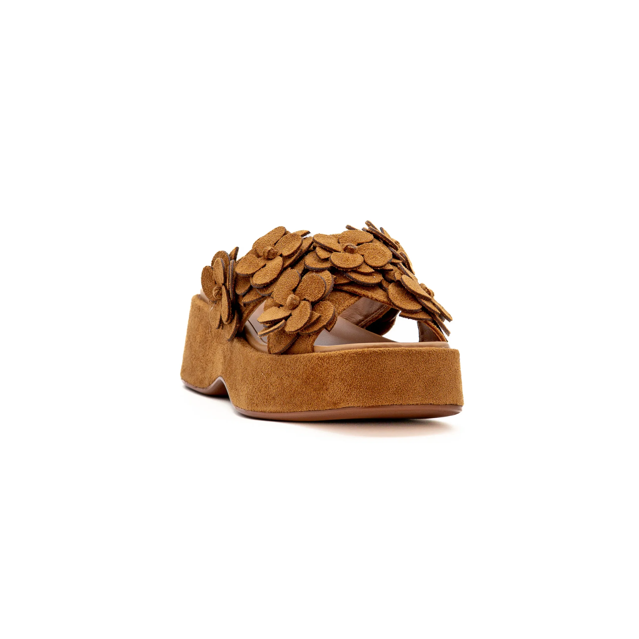 A sua plataforma de aproximadamente 4,5 cm proporciona uma ligeira elevação que valoriza a silhueta e garante maior conforto ao caminhar, tornando-o ideal para usar durante todo o dia. Os detalhes florais acrescentam um toque romântico e sofisticado, perfeito para dar vida a looks de verão, desde vestidos leves a conjuntos mais descontraídos.