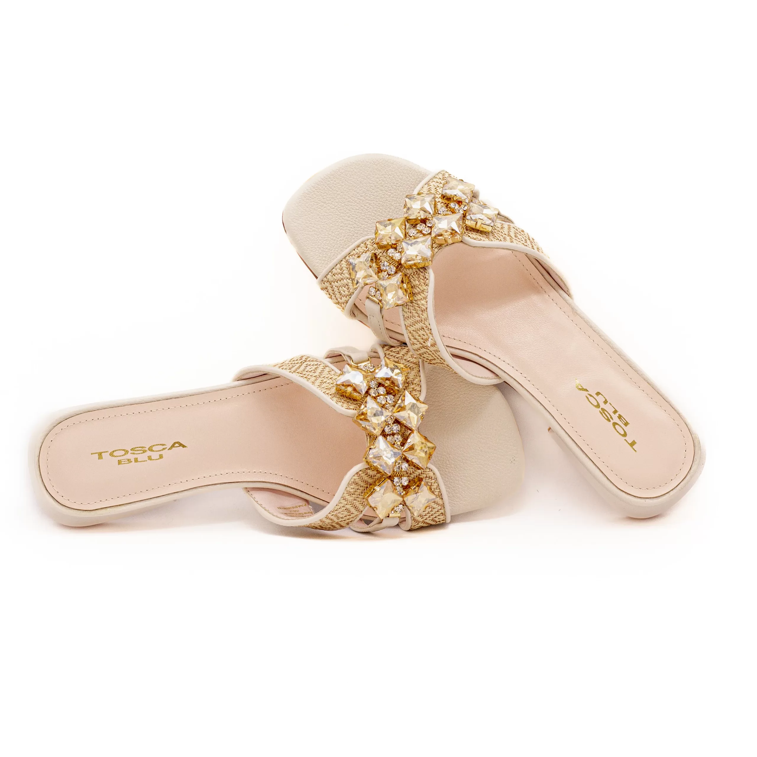 Estes chinelos brilhantes com detalhes em cristais vão realçar o seu estilo de verão