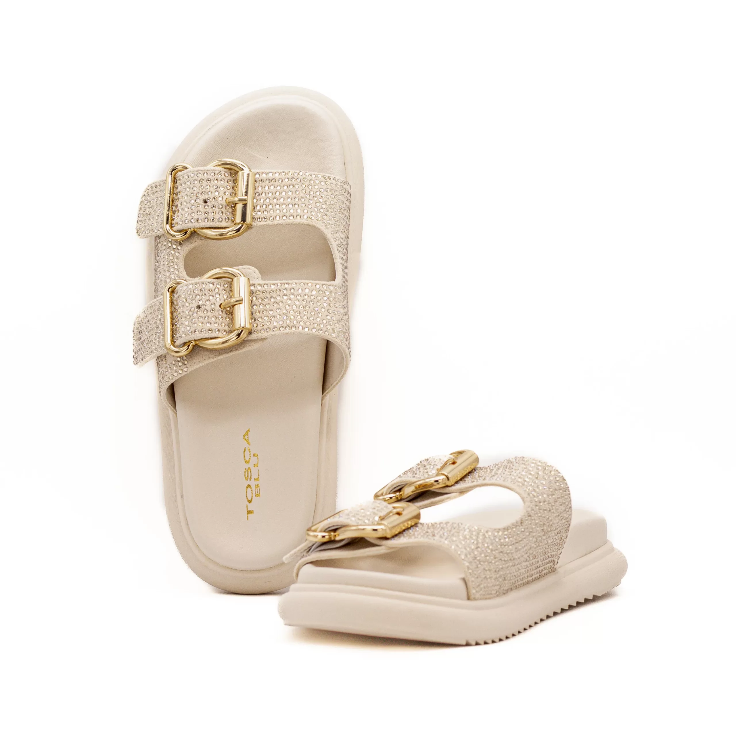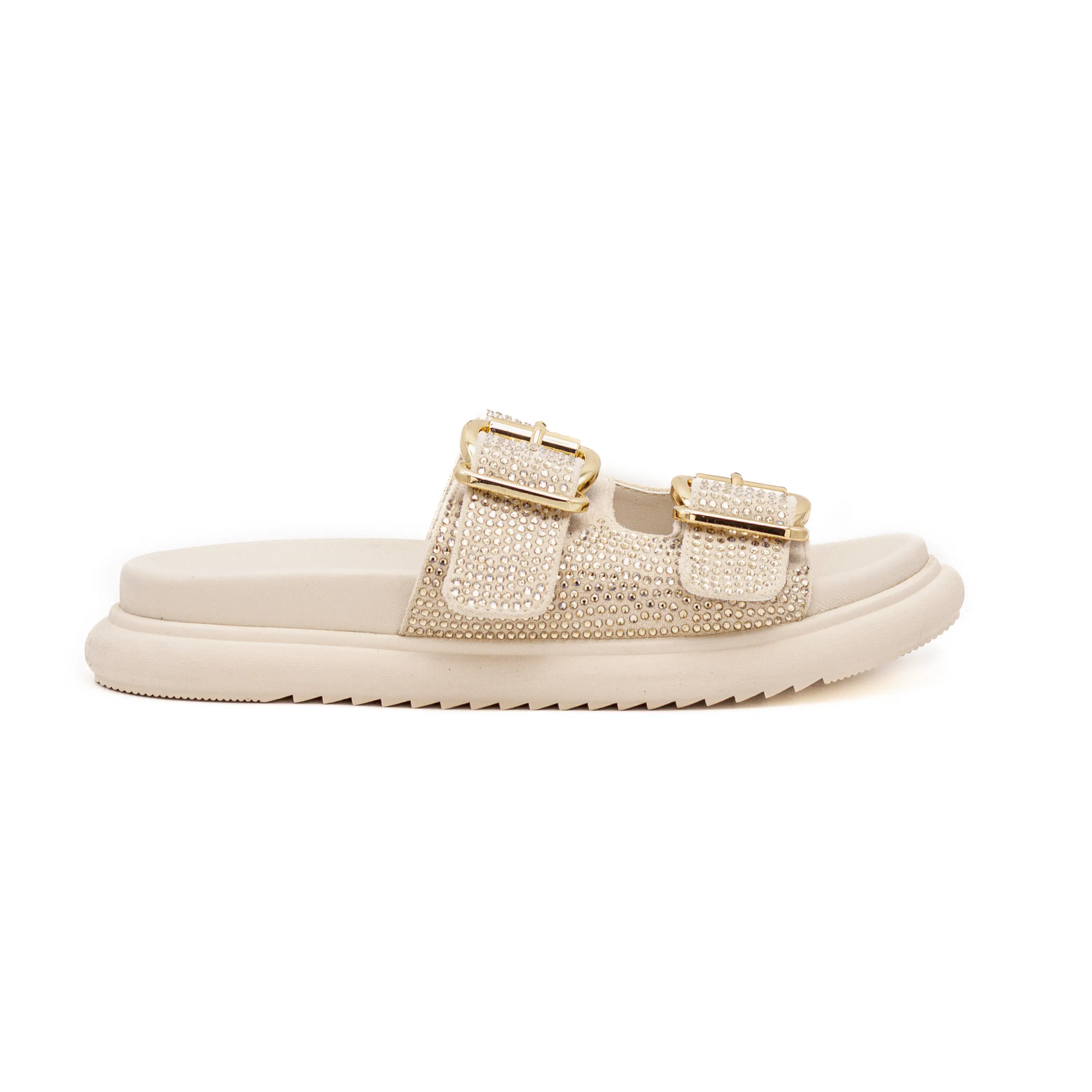 Complementado com um design perfeito, aberta na frente, com tiras largas laterais, que suportam o pé.
