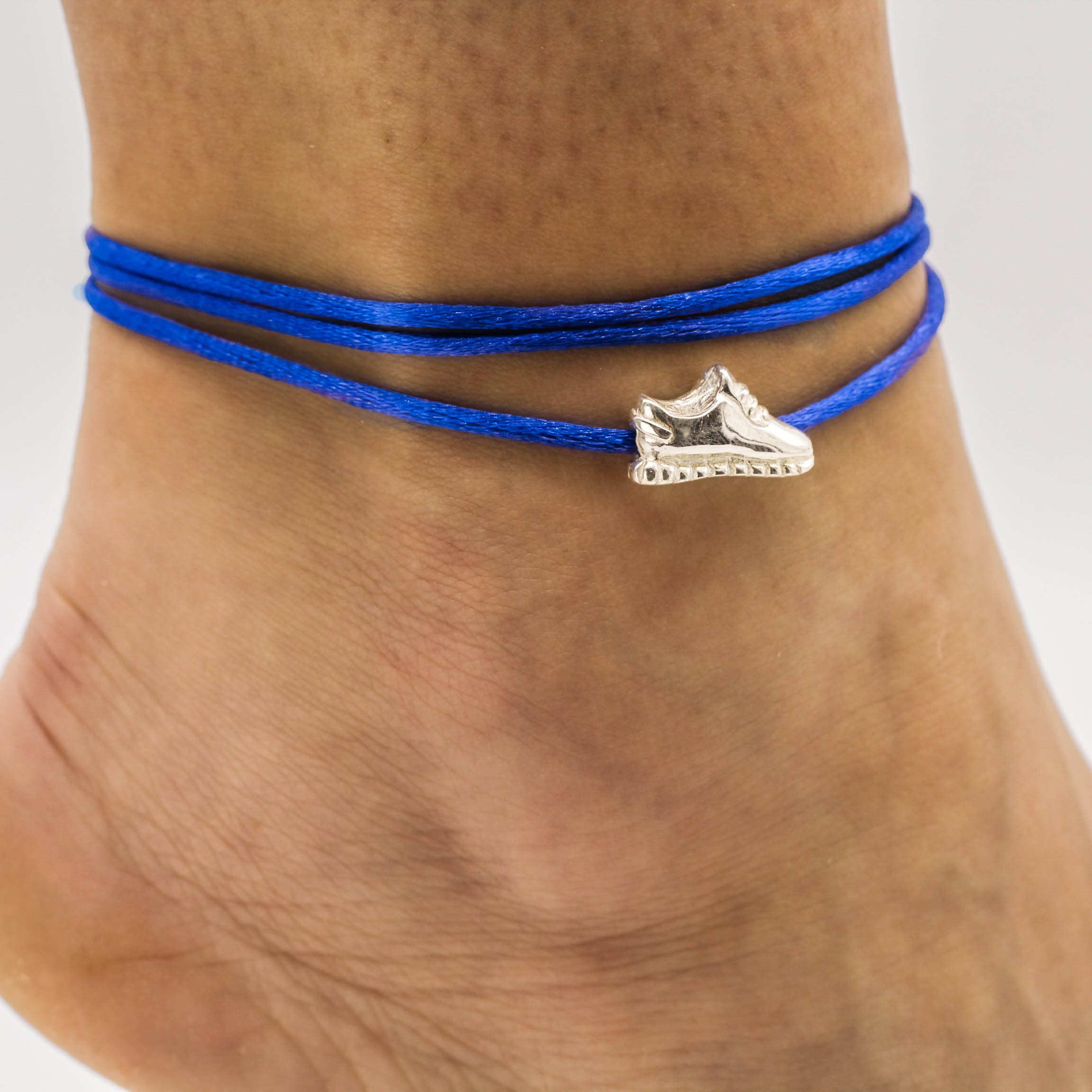 Dogma Blue Anklet. Versátil cordão com cerca de 30 cm para usar como pulseira, tornozeleira ou colar. Possui aplique em