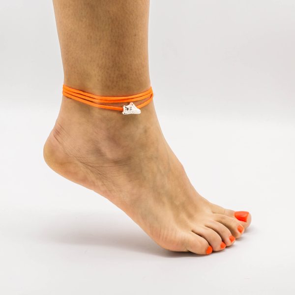 Dogma Orange Anklet. Versátil cordão com cerca de 30 cm para usar como pulseira, tornozeleira ou colar. Possui aplique em