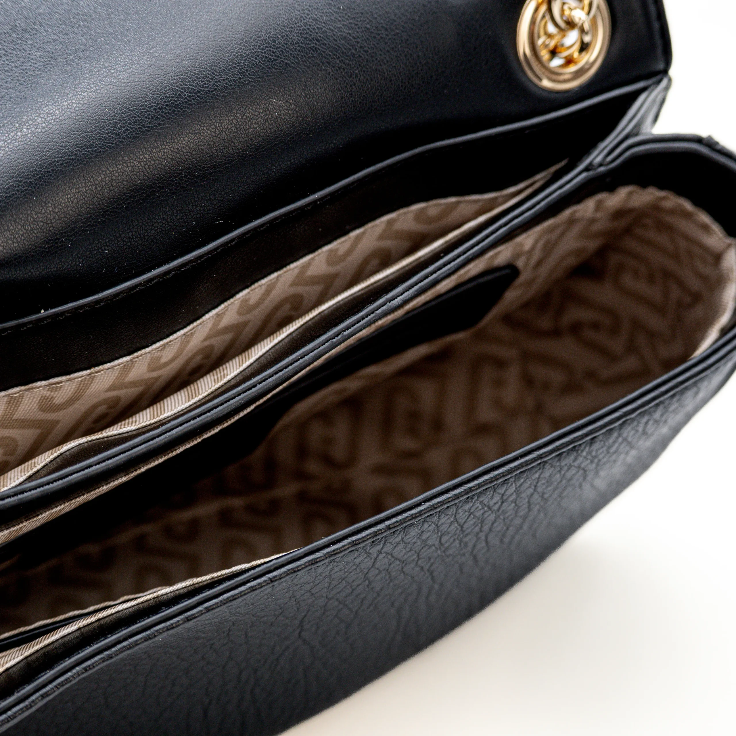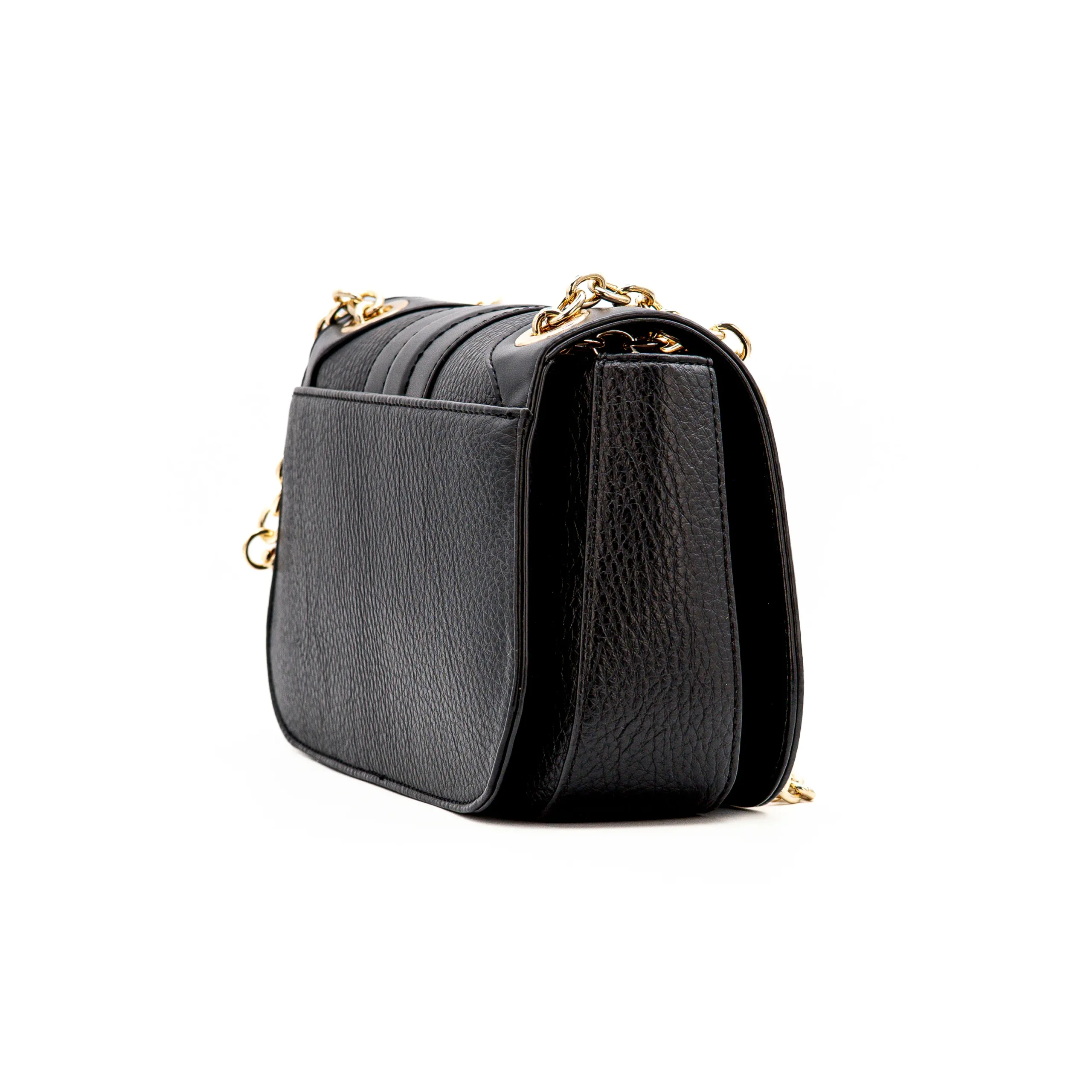 A corrente metálica dourada acrescenta um apontamento luxuoso e permite usar a mala ao ombro ou a tiracolo, adaptando-se facilmente a diferentes ocasiões.