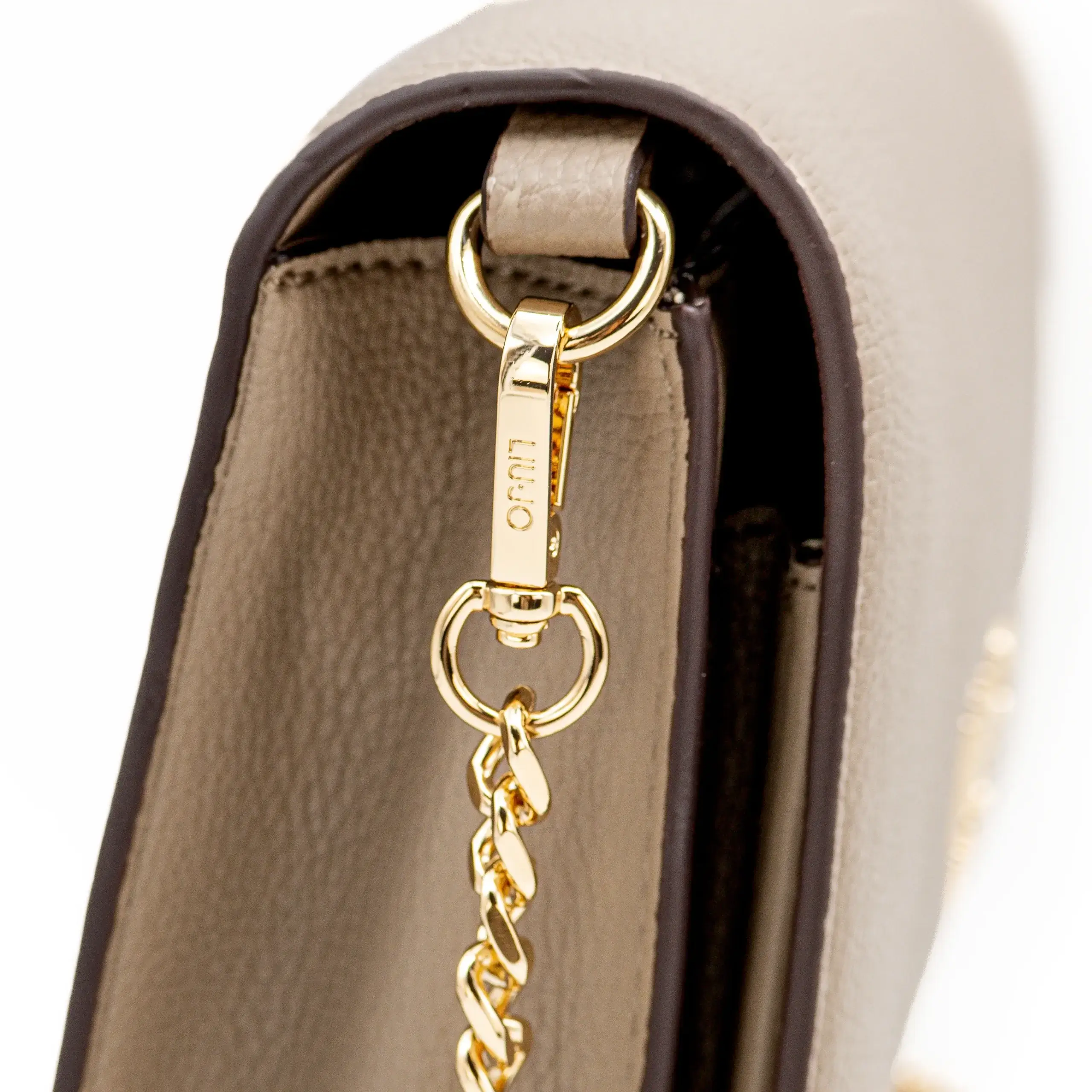 Um modelo elegante, com uma alça em corrente que confere um toque luxuoso.