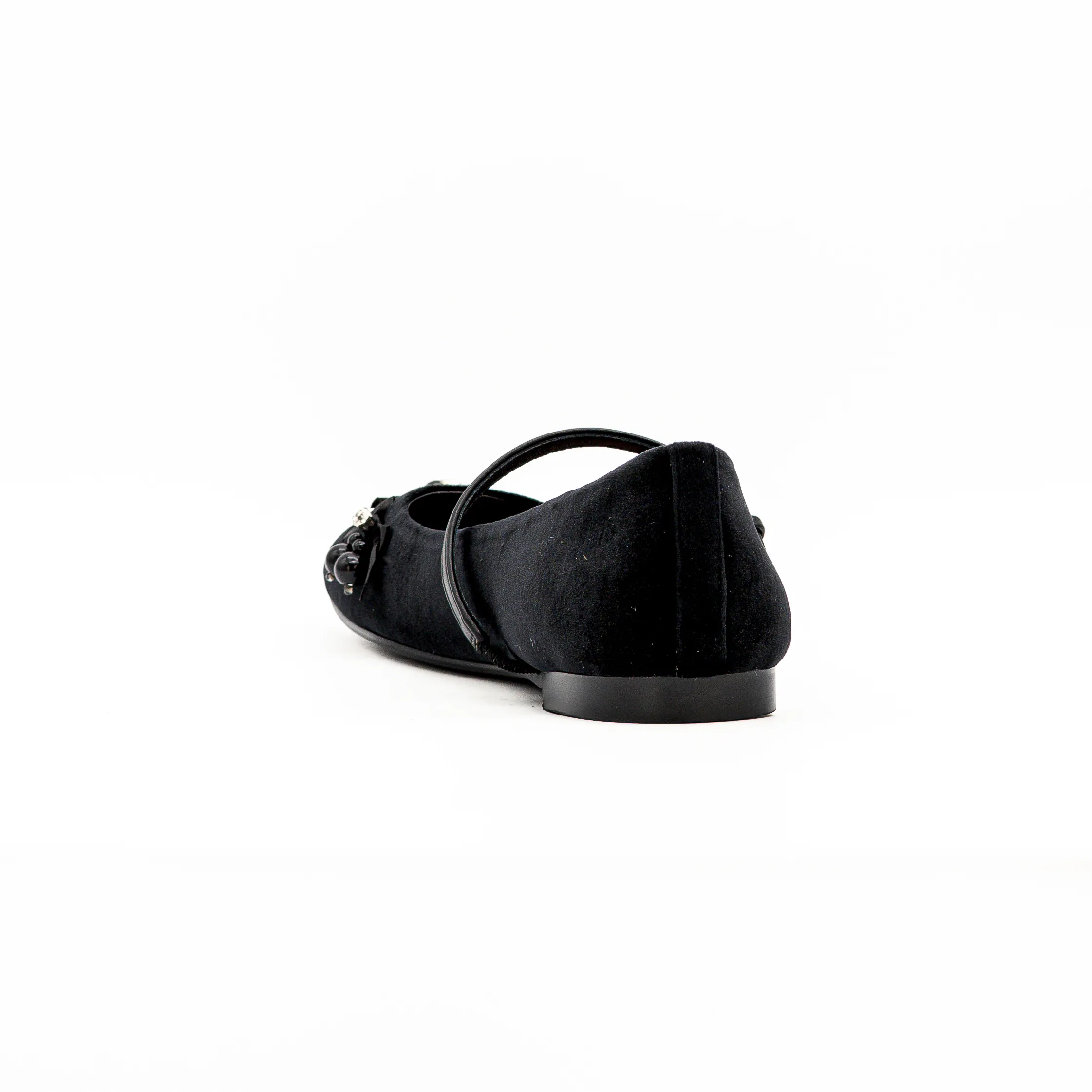 Este modelo é revestido com aplicações e tem um fecho em fivela ajustável.