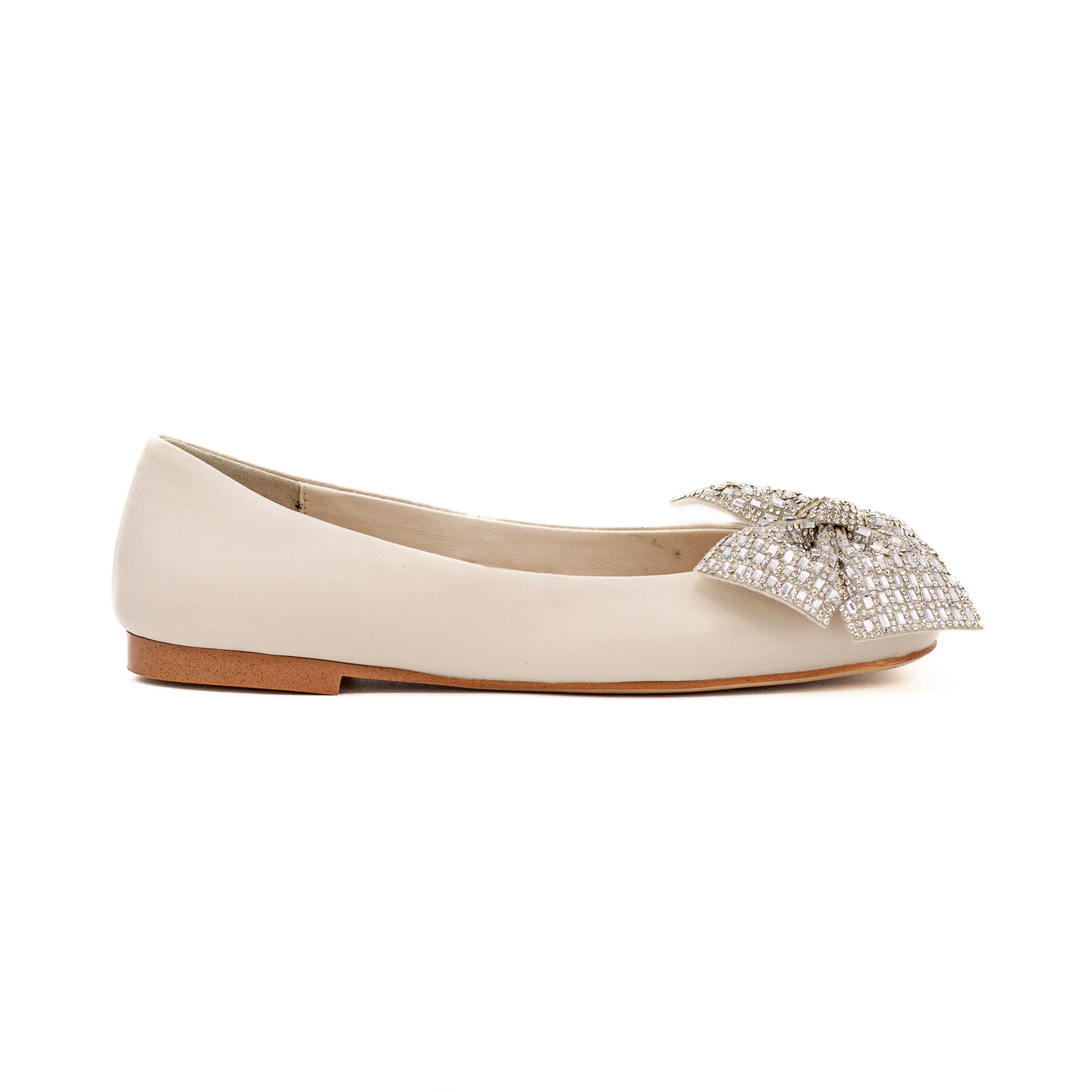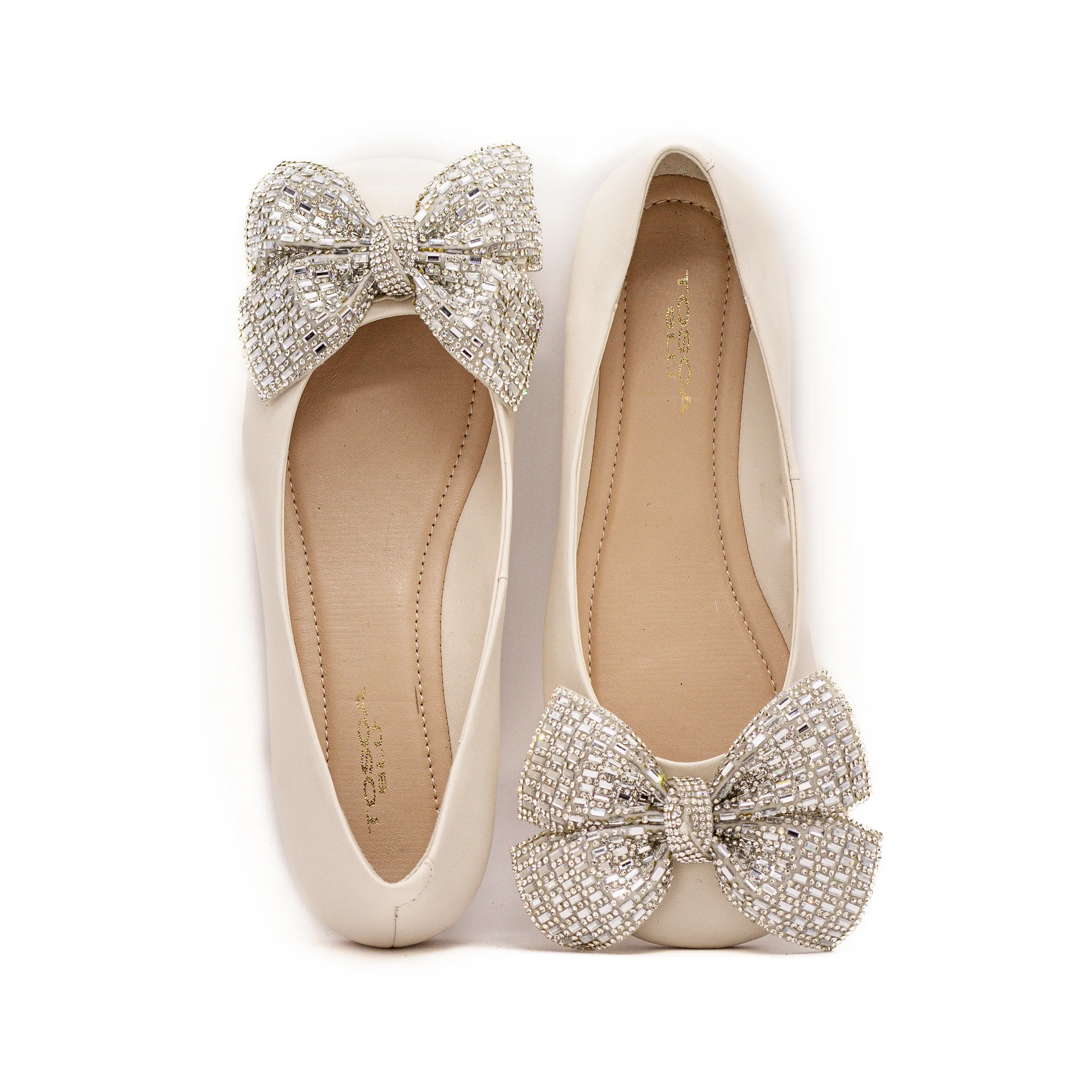 Com uma base monocromática, esta sabrina distingue-se pelo laço decorativo em brilhantes que possui.