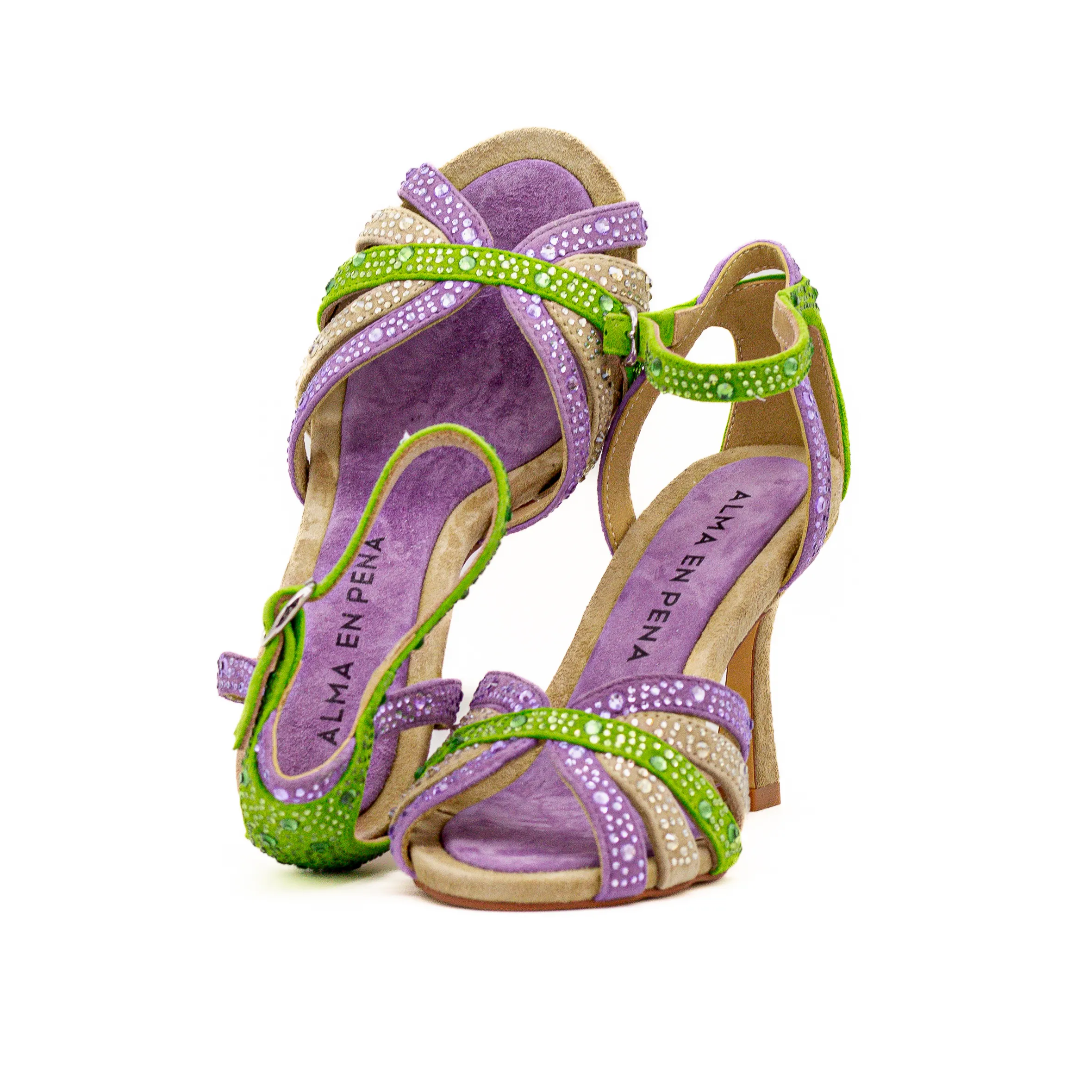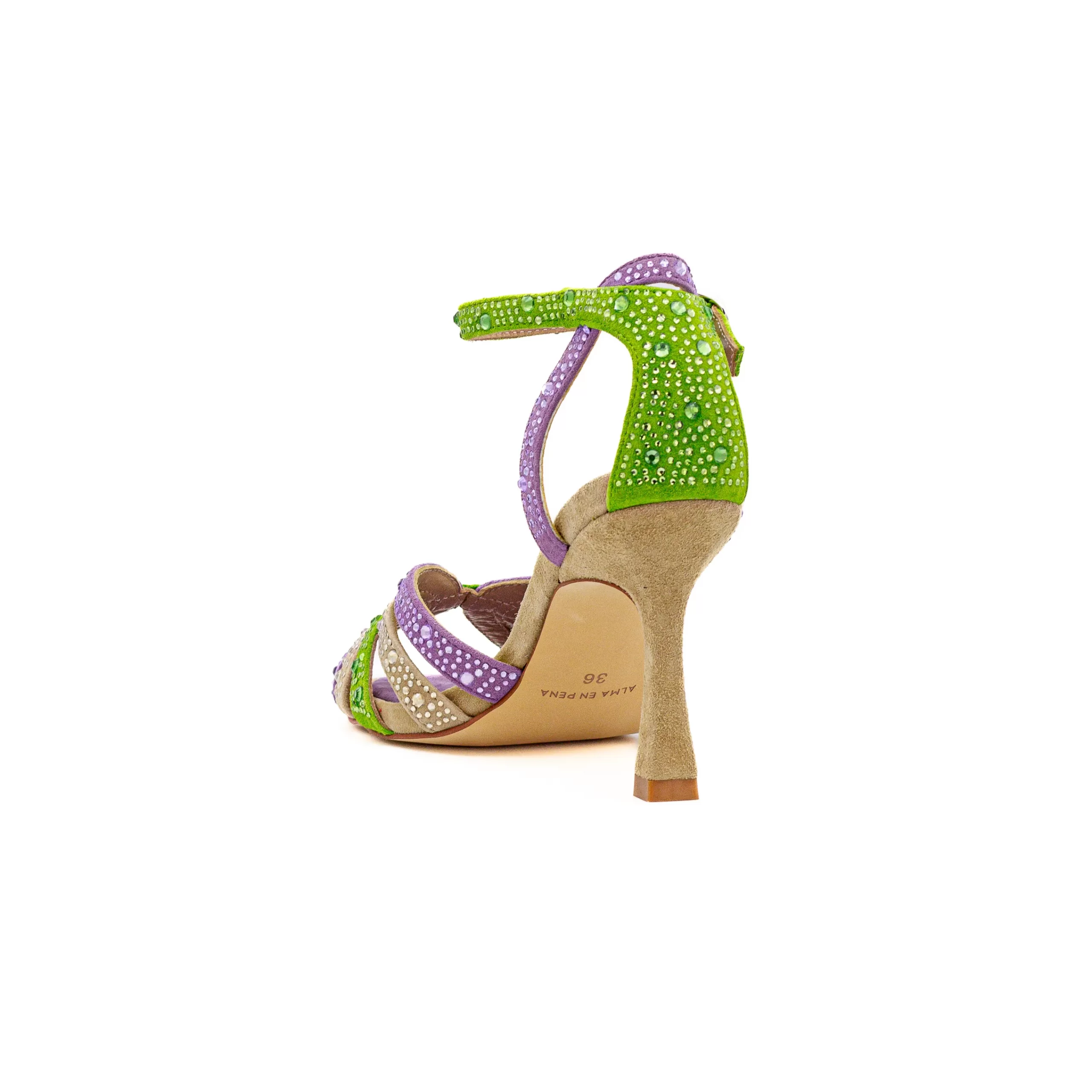 Esta sandália da Alma en Pena visa pelas cores, pelo salto confortável e pelos detalhes em strass.