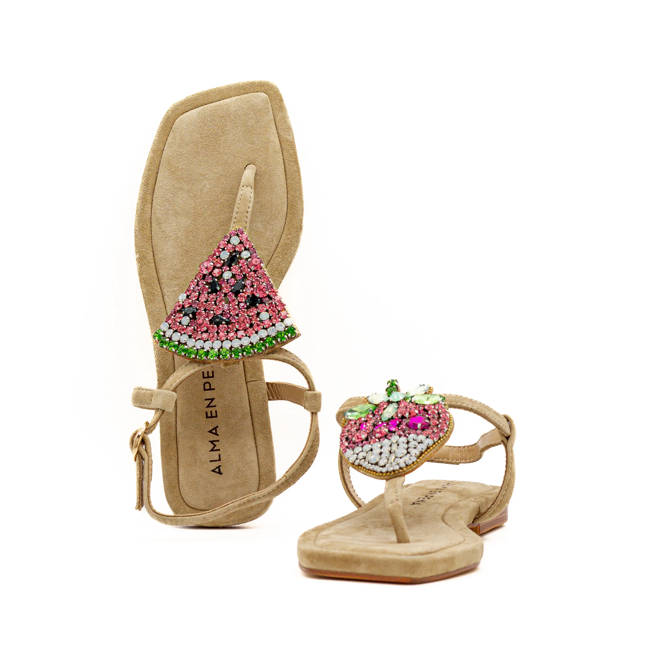 Delicia-te com esta sandália com aplicações em formato de melancia!