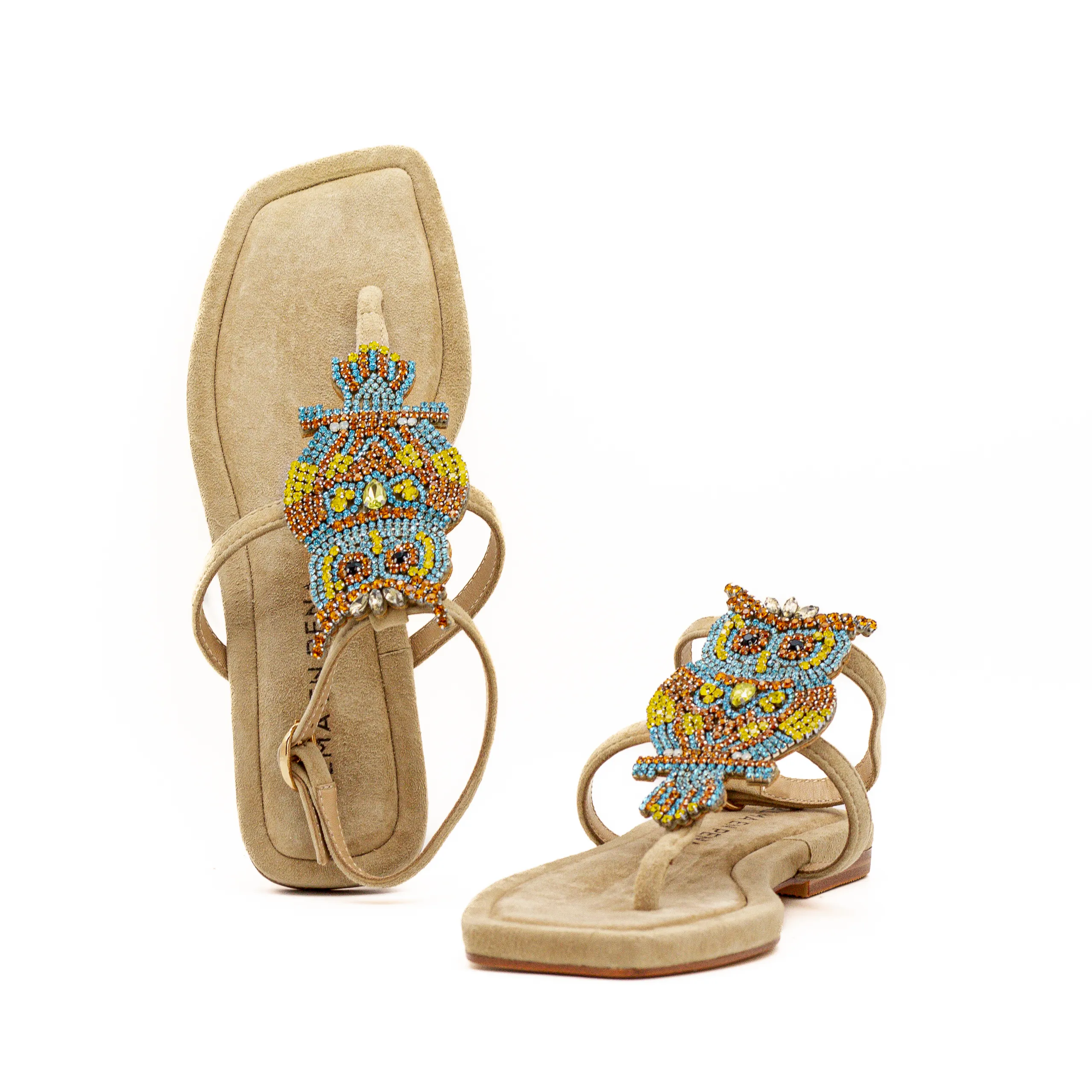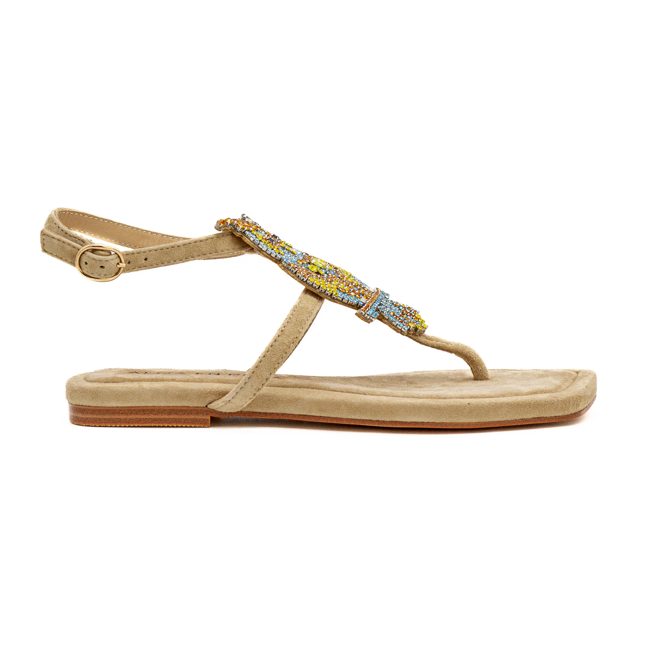 As aplicações conferem uma elegância a esta sandália.