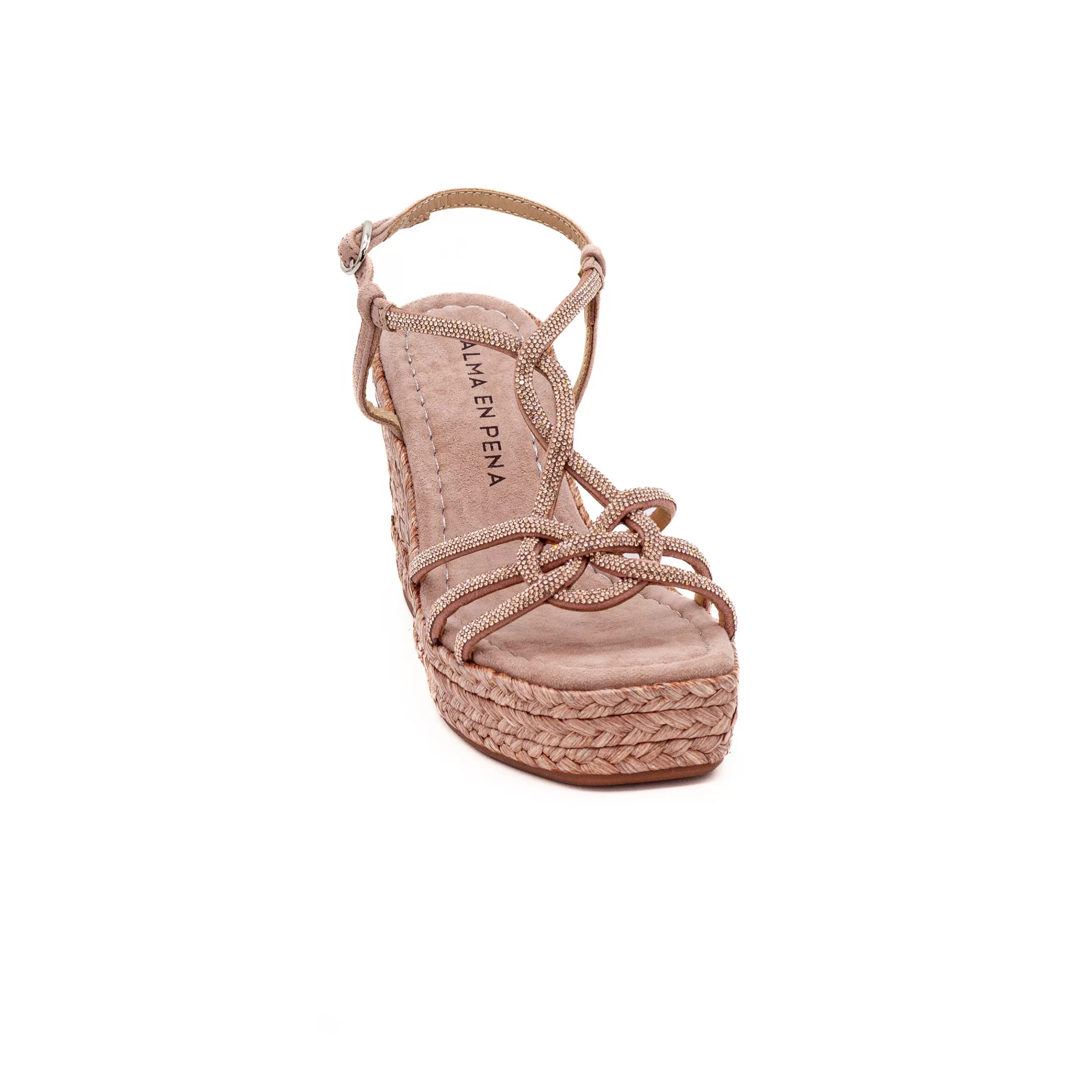 Um salto de cunha elegante, monocromática com tiras cruzadas brilhantes!