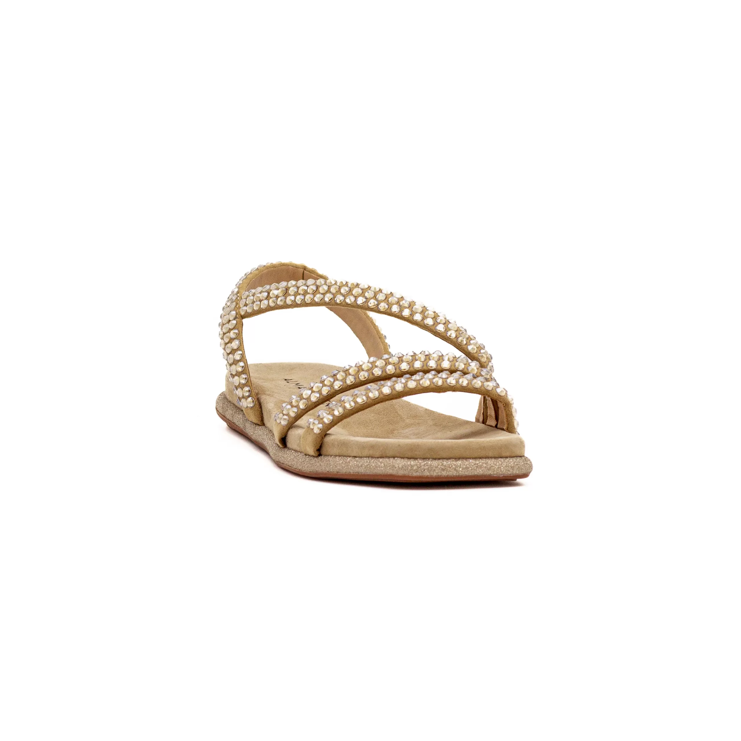 Esta sandália super elegante é feita em pele e complementada com aplicações brilhantes.