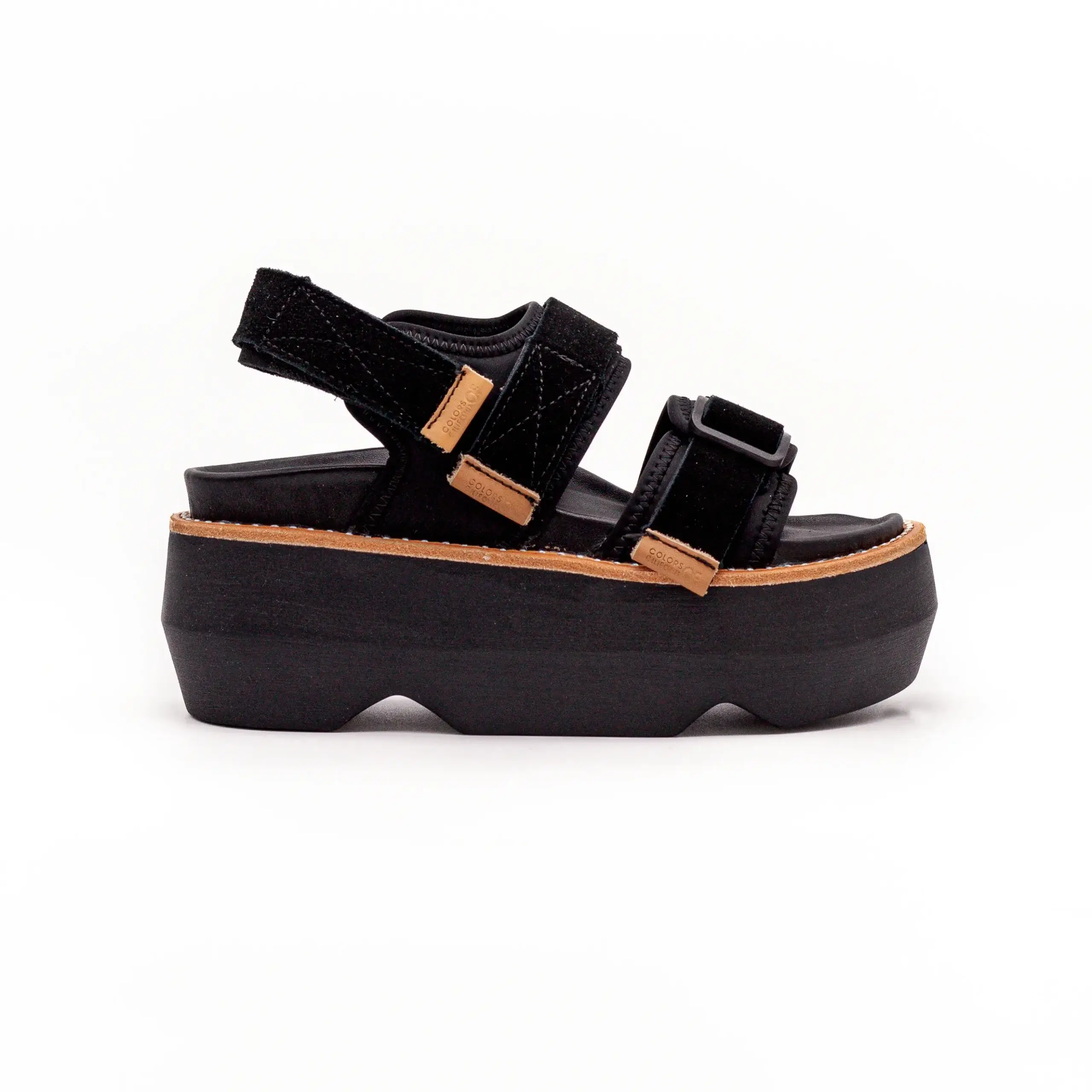 Complementada com um design perfeito, aberta na frente, com tiras largas laterais, que suportam o pé.