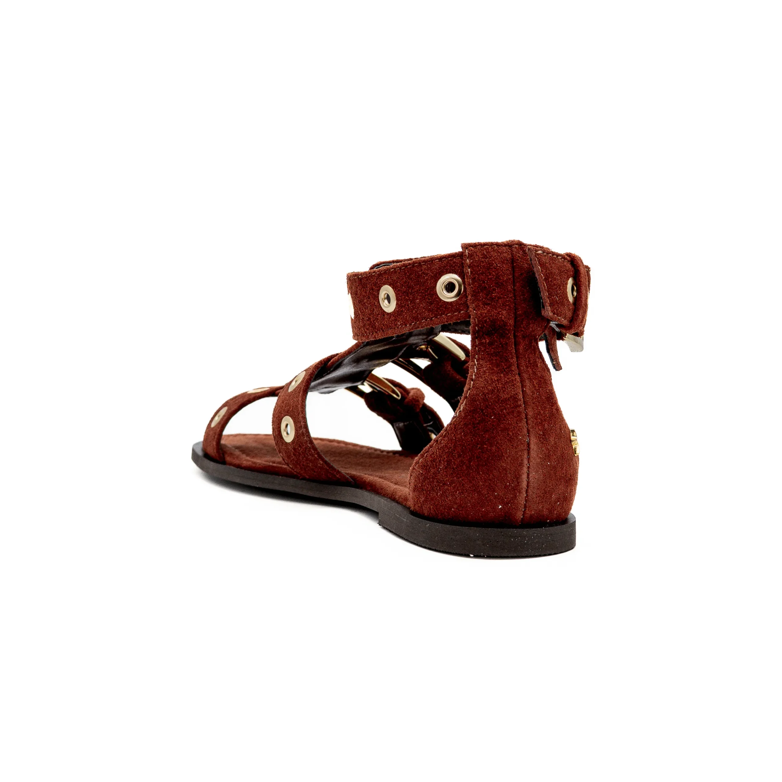 Esta sandália rasa em tom bordeaux destaca-se pelo equilíbrio entre sofisticação e modernidade.