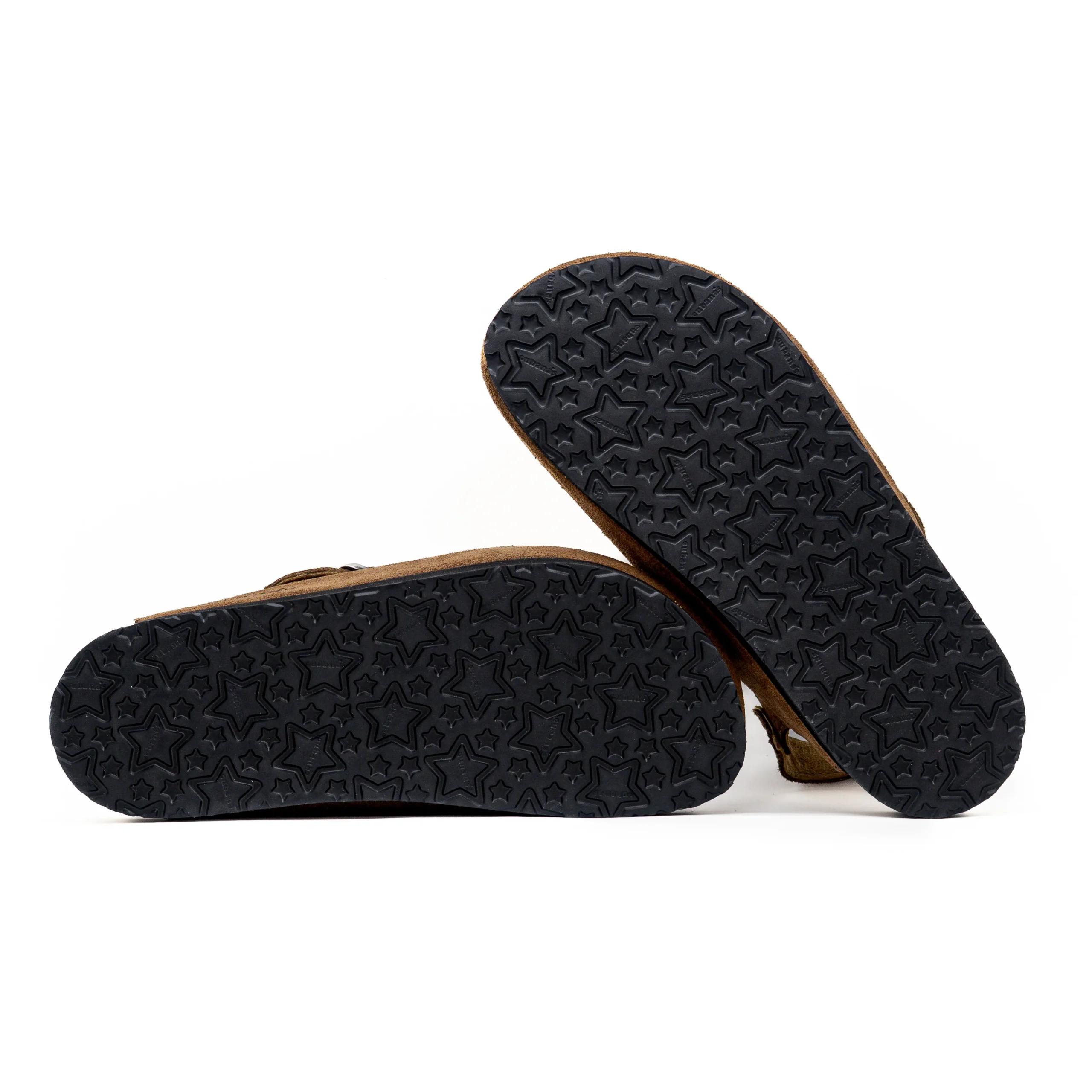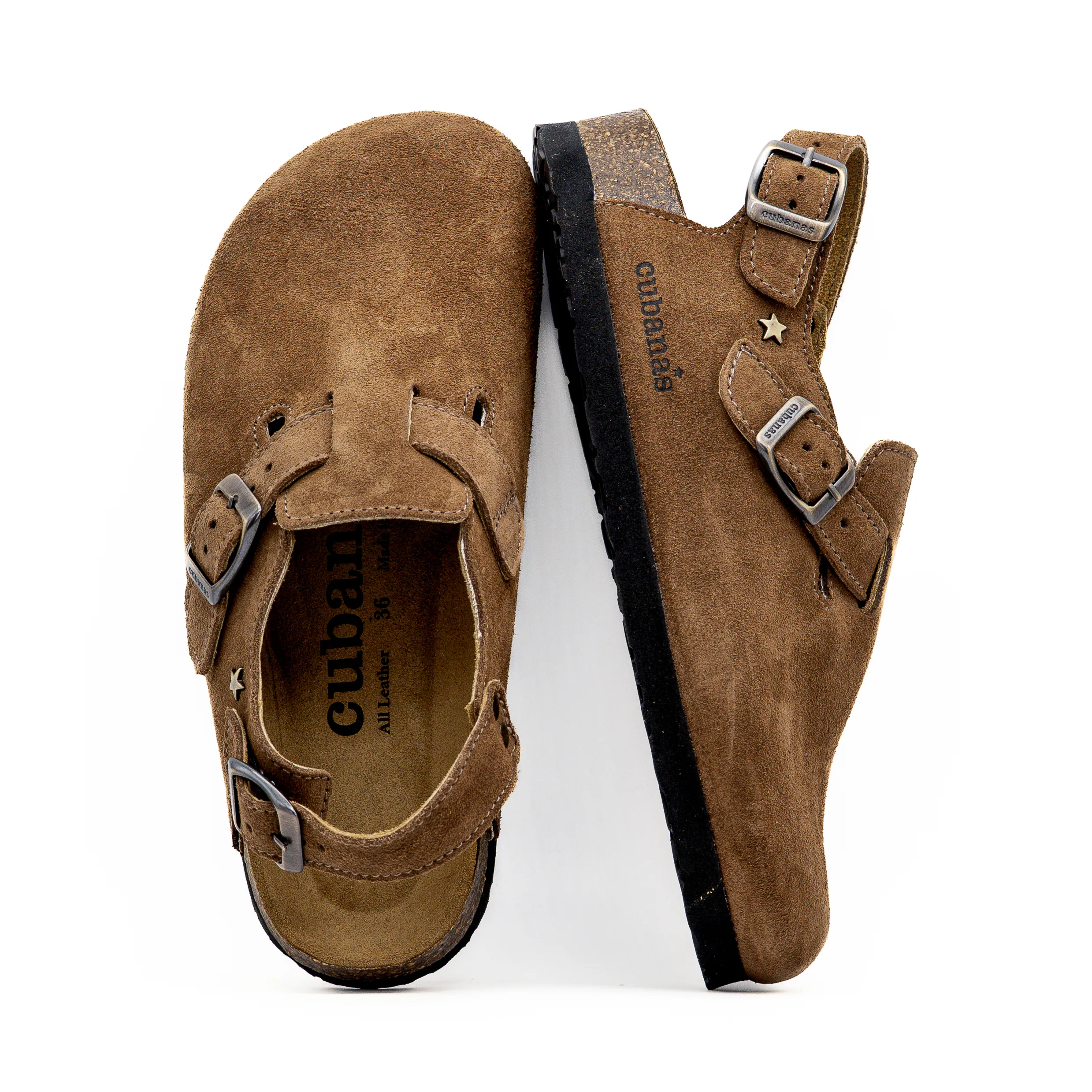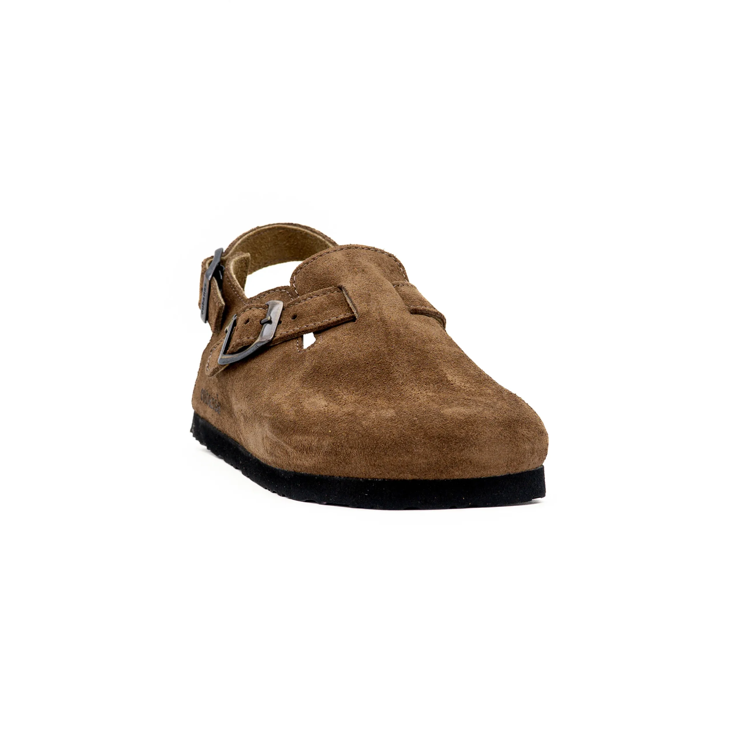 A camurça em tom castanho confere um visual natural e sofisticado, enquanto o acabamento suave do material acrescenta textura e personalidade ao modelo.