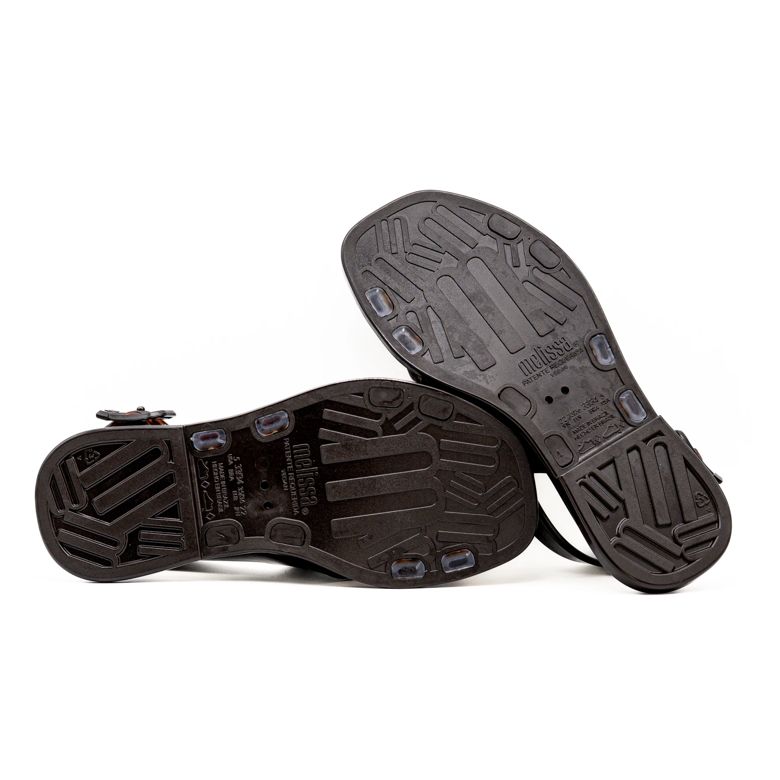 Esta sandália tem um cheirinho delicioso, e é produzida em Melflex (PVC, próprio da Melissa), 100% reciclável e que proporciona mais flexibilidade, resistência e conforto aos pés.