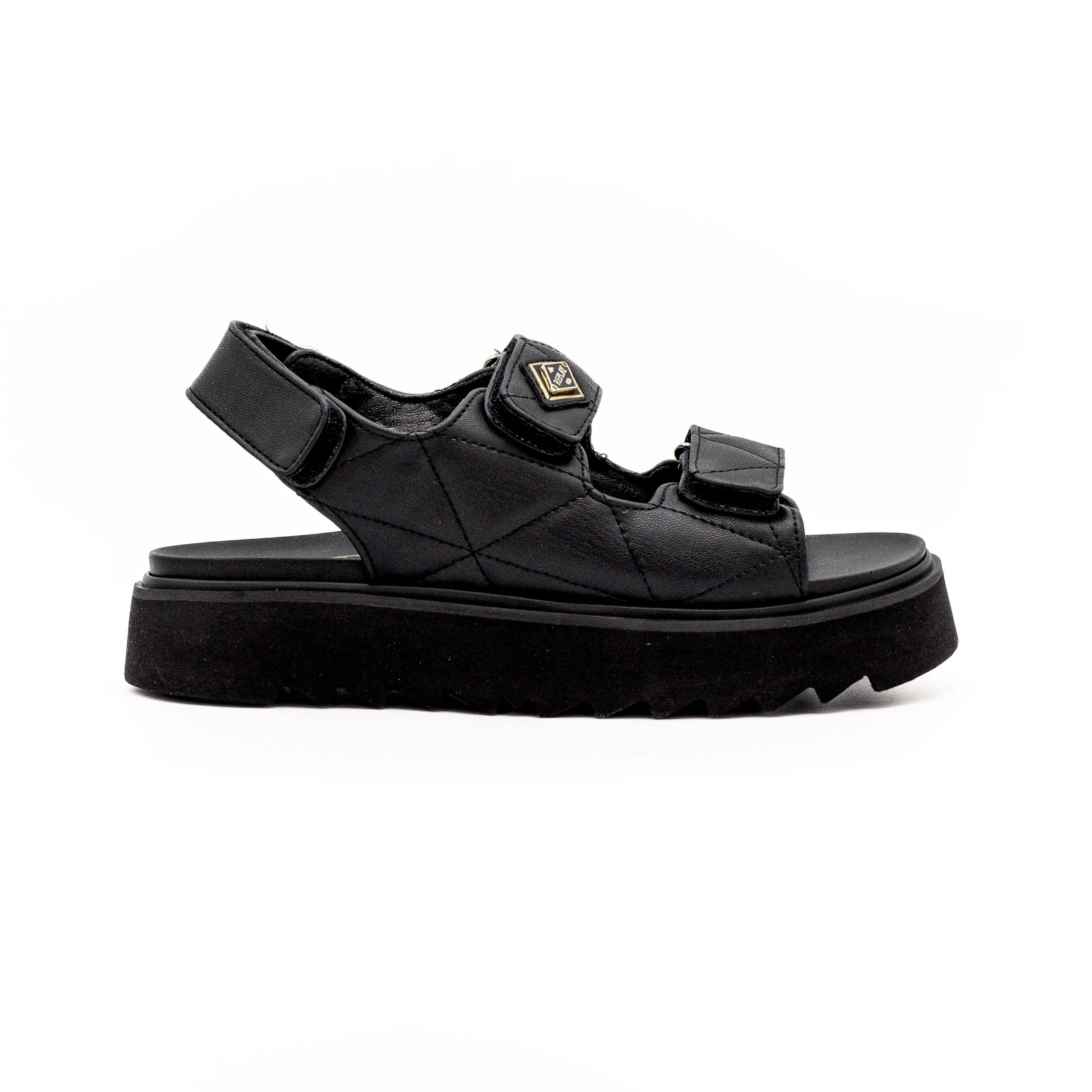 Complementada com um design perfeito, aberta na frente, com tiras largas laterais, que suportam o pé, são unidas com uma tira que abraça o tornozelo e, juntamente com a palmilha em garantem o suporte perfeito do pé, ao caminhar, tornando-se muito prática.