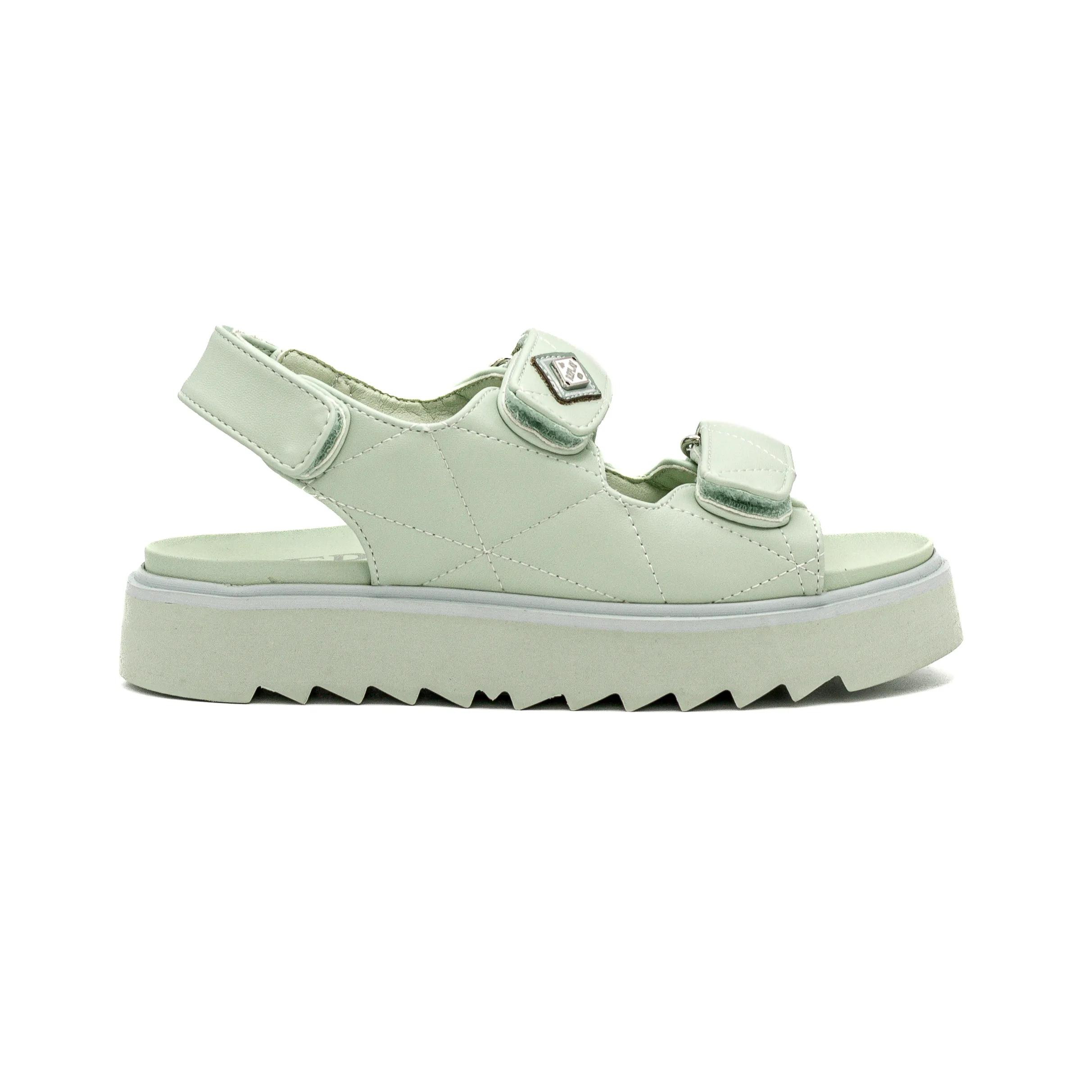 Este modelo tem ajuste em velcro e um solado robusto de 3 cm.