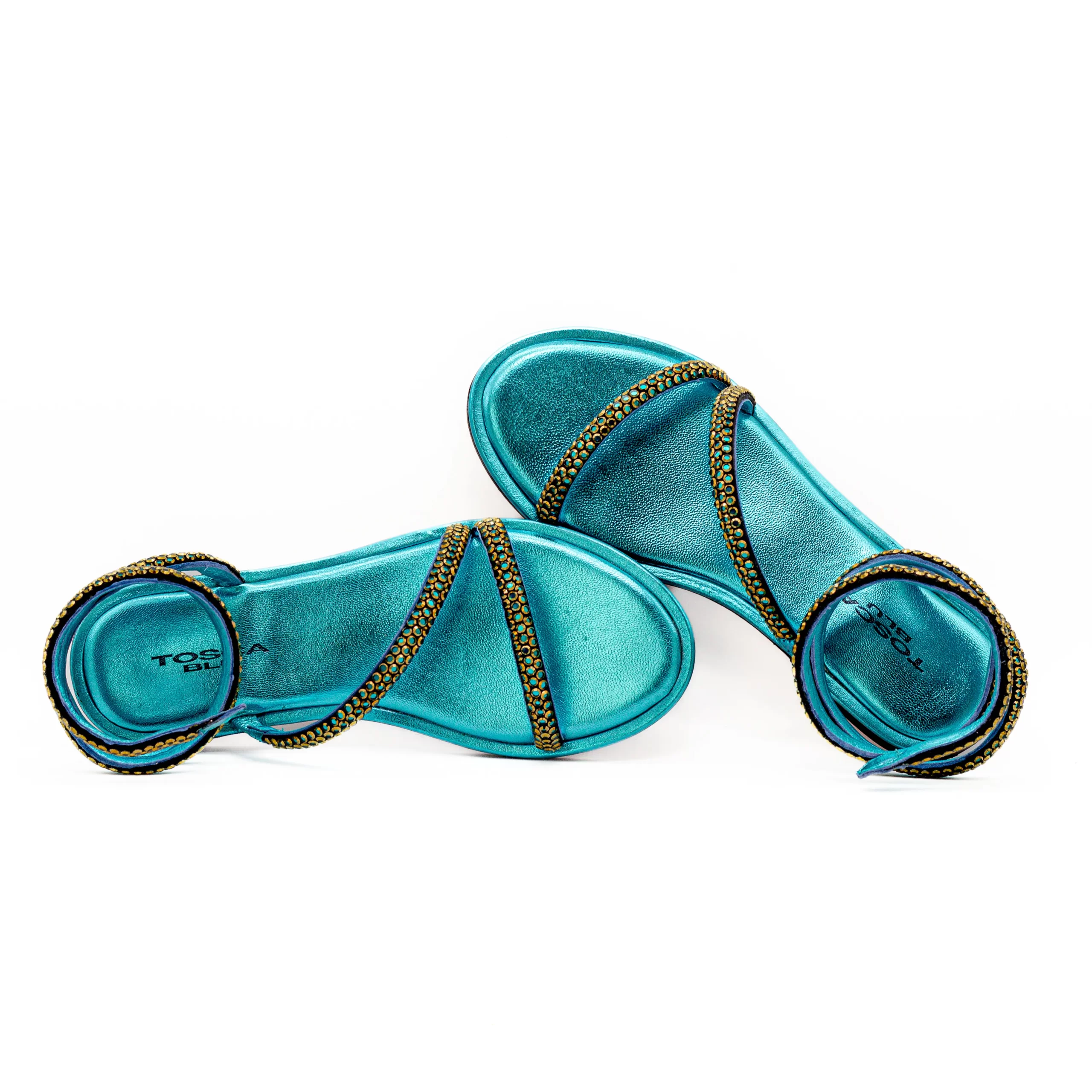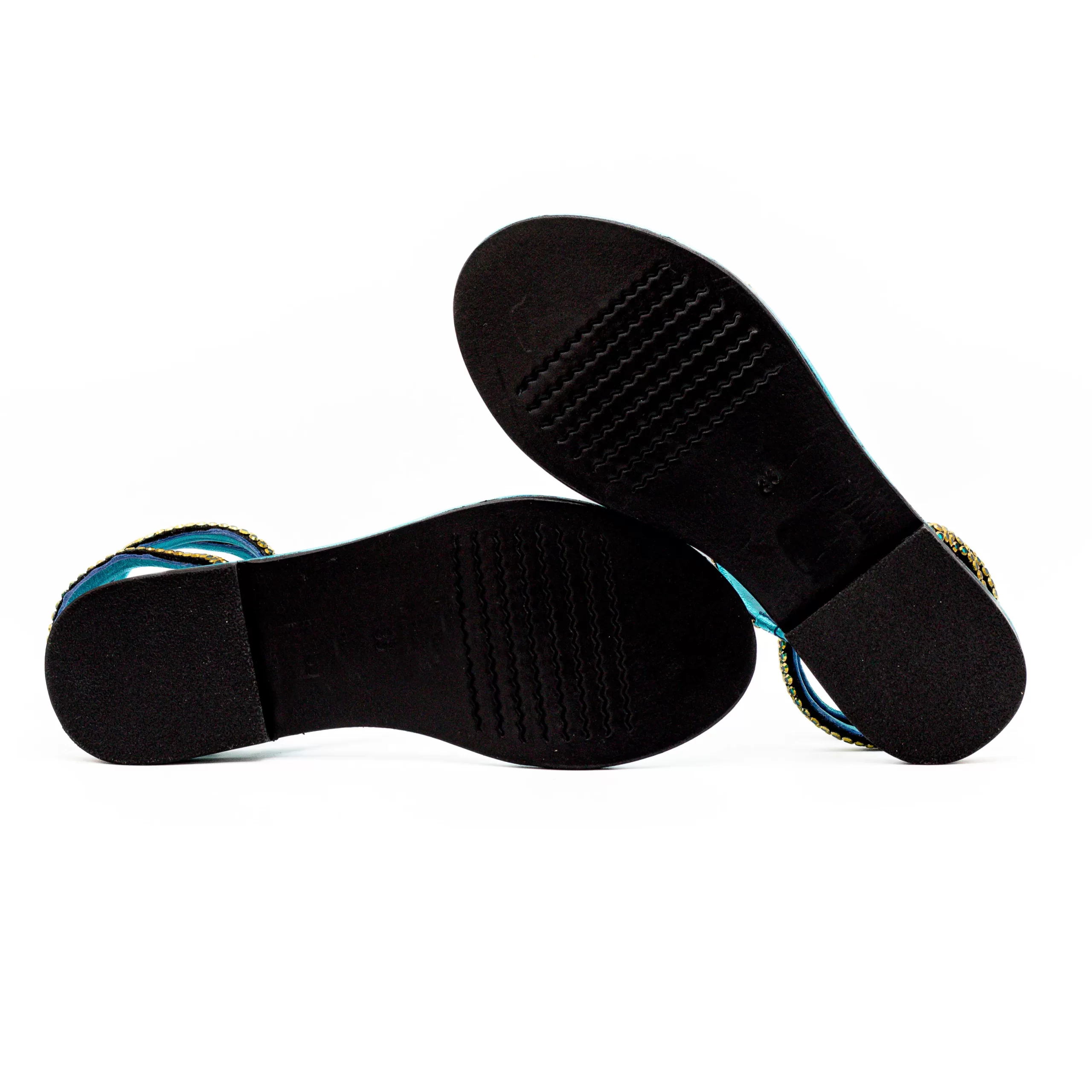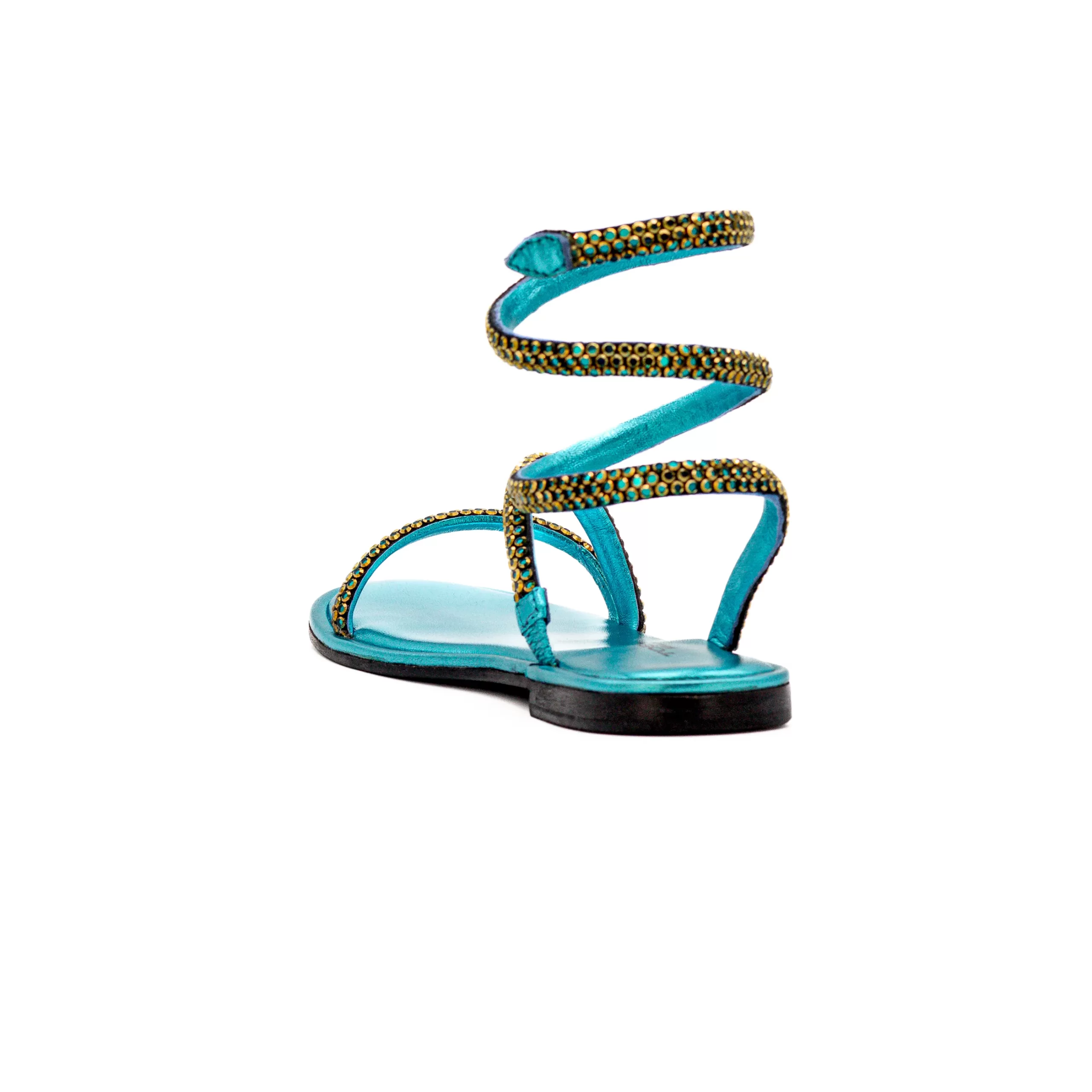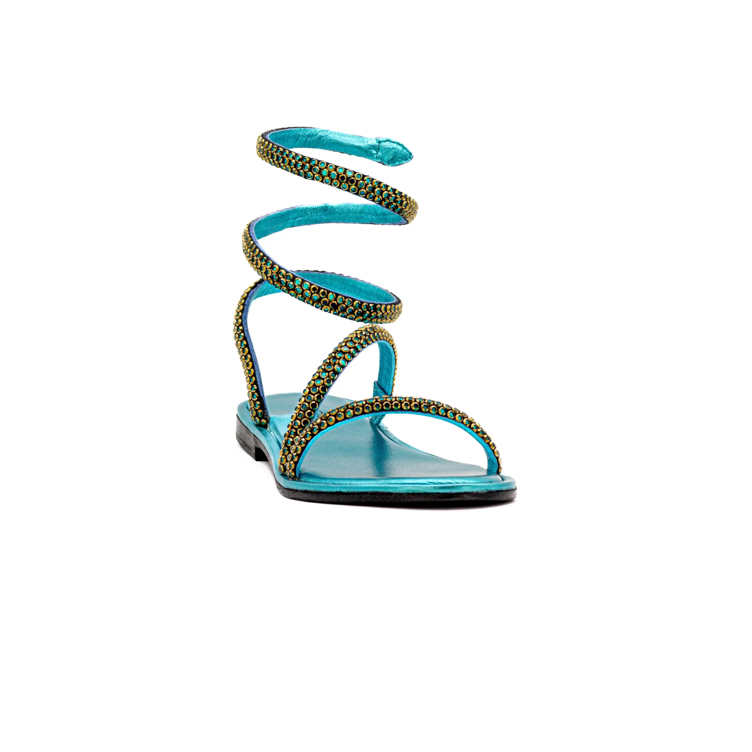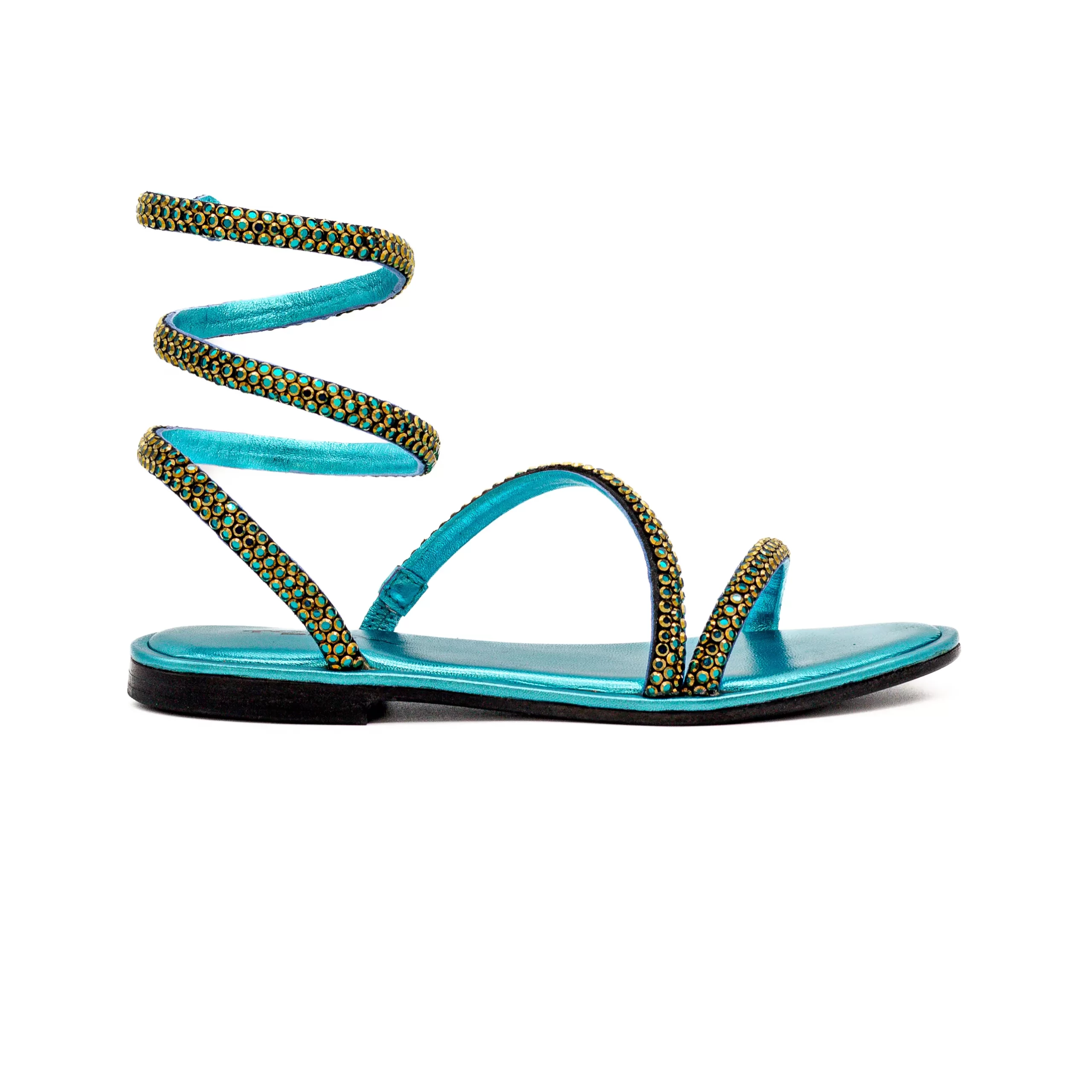 Com sola plana as sandálias envolvem o pé com elegância e um toque de originalidade.
