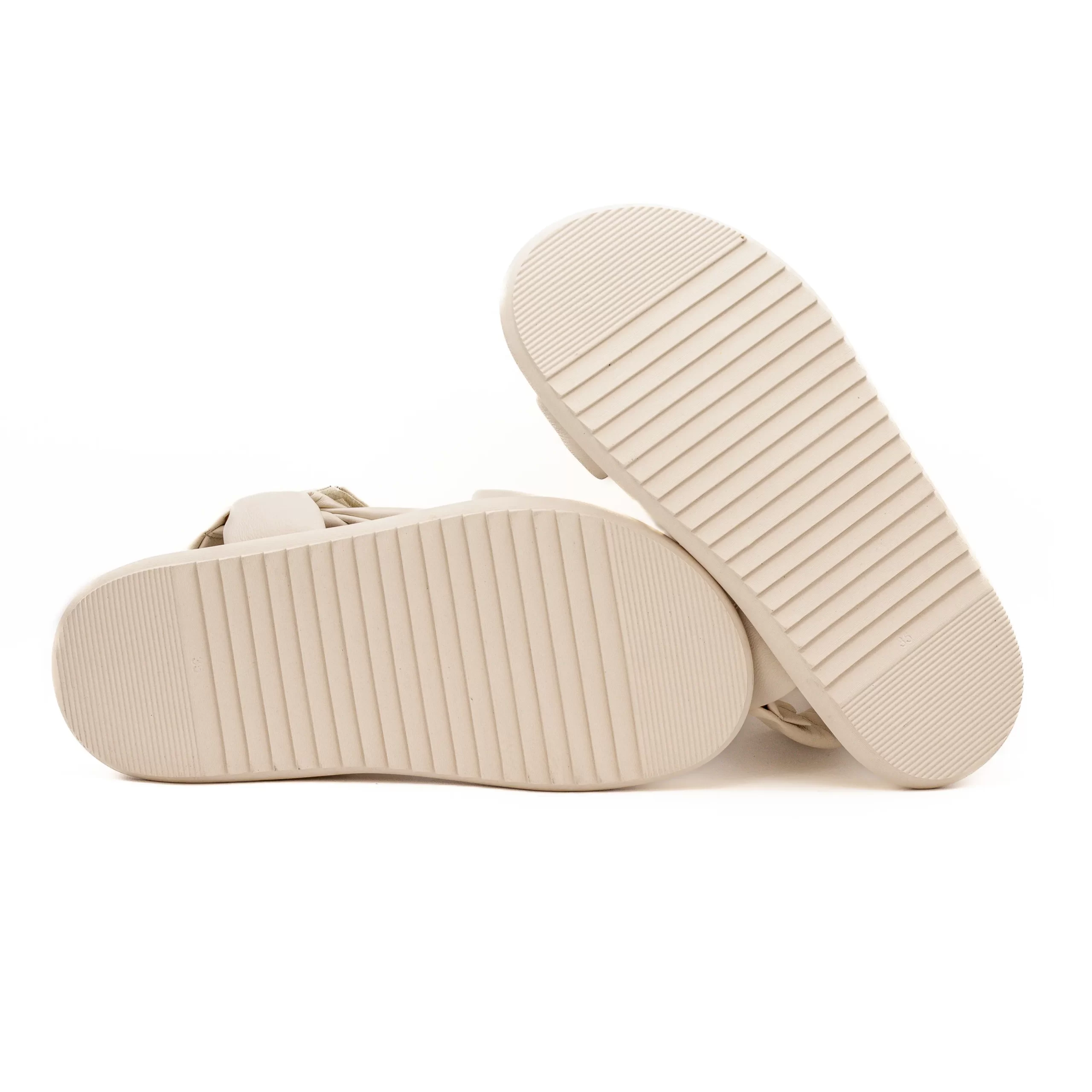 As faixas acolchoadas, cruzadas com um design original, dão um toque de ousadia e modernidade ao modelo.
