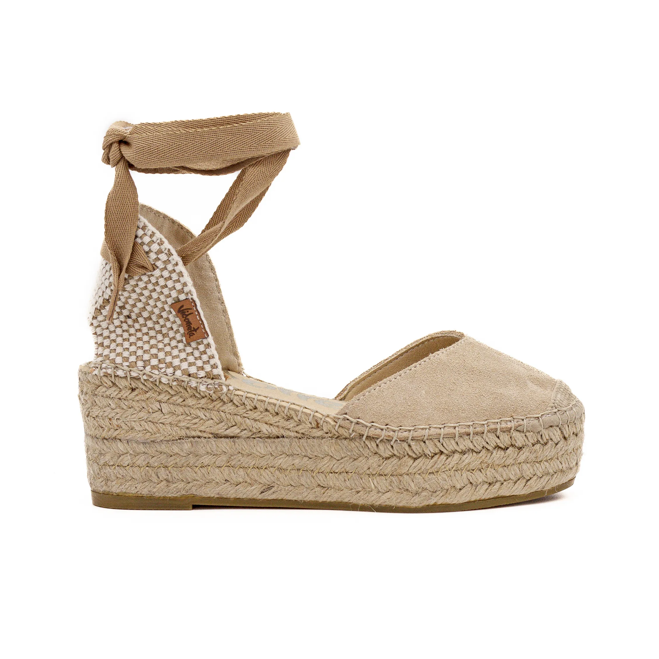 Uma sandália monocromática, com uma cunha elegante e confortável.