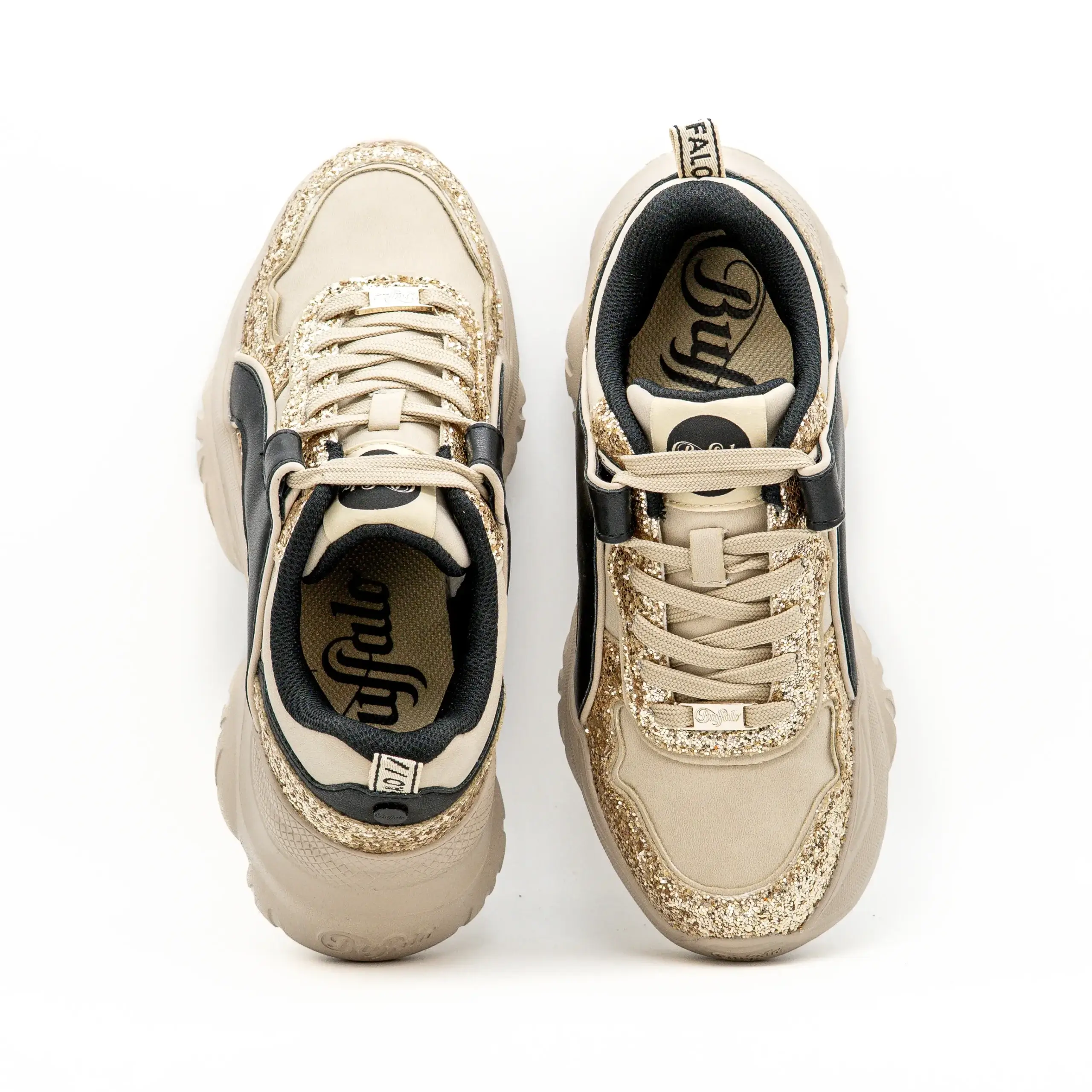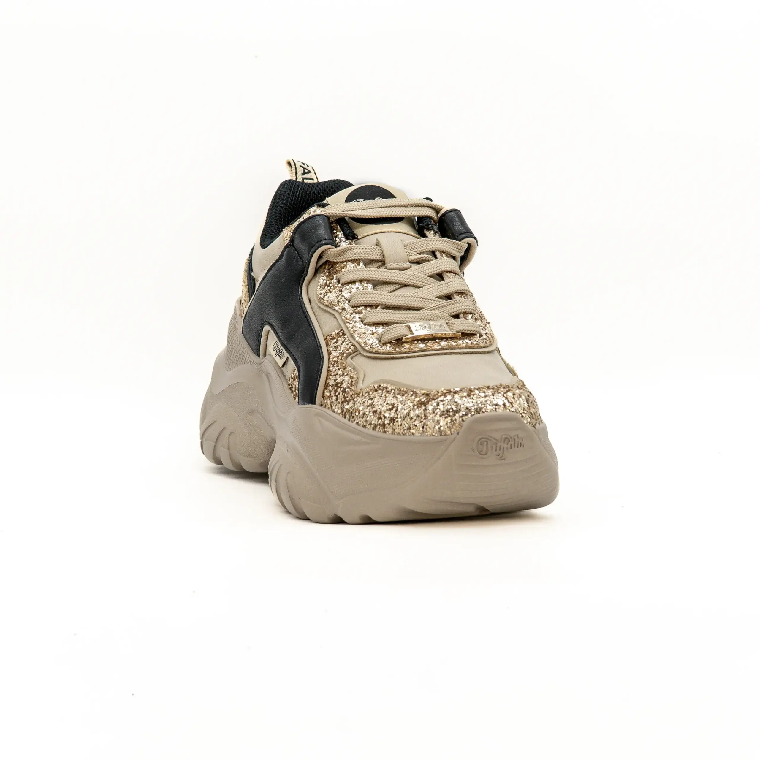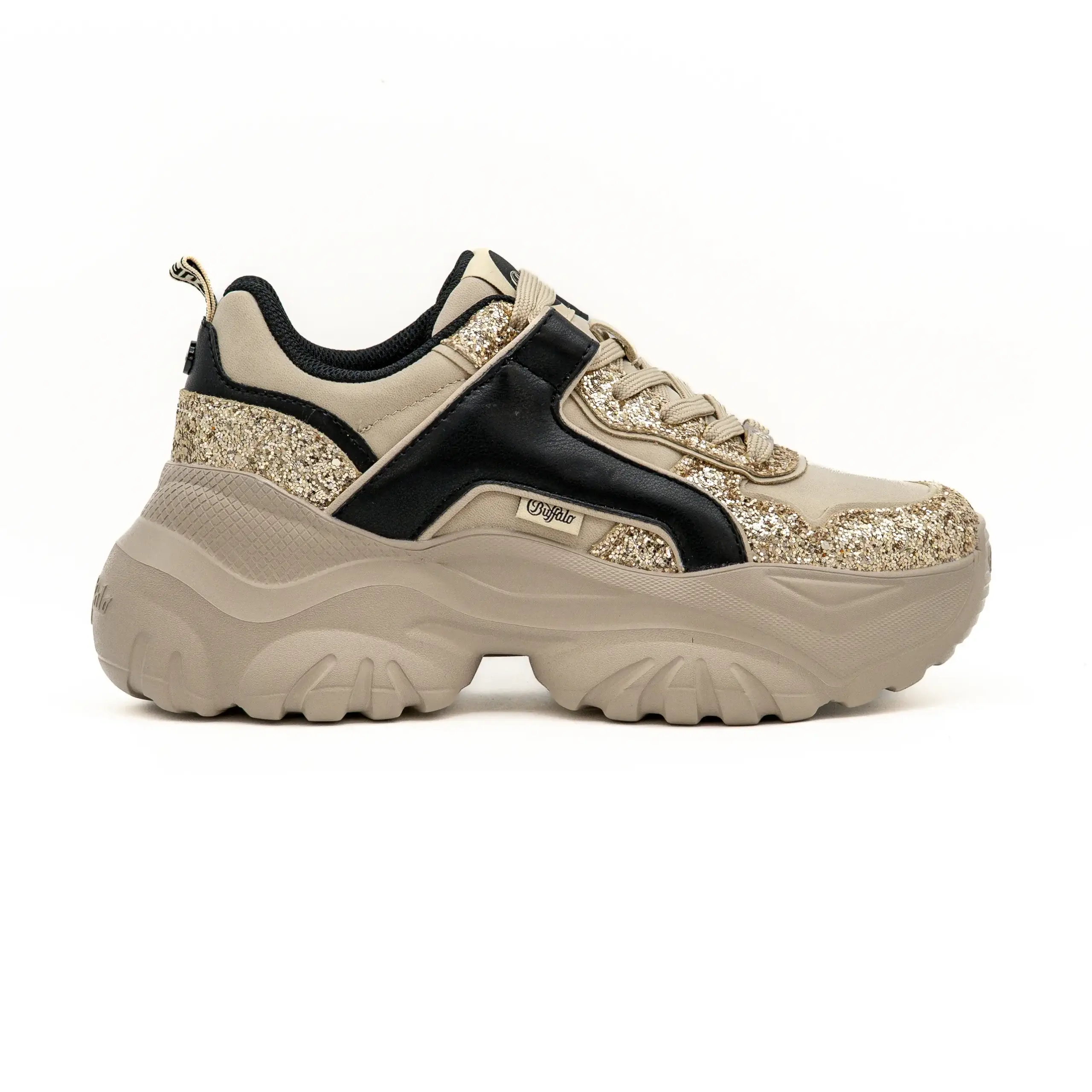 Esta sapatilha não passa despercebida! Com detalhes em glitter dourado é o par perfeito para quem adora misturar conforto com muito estilo.